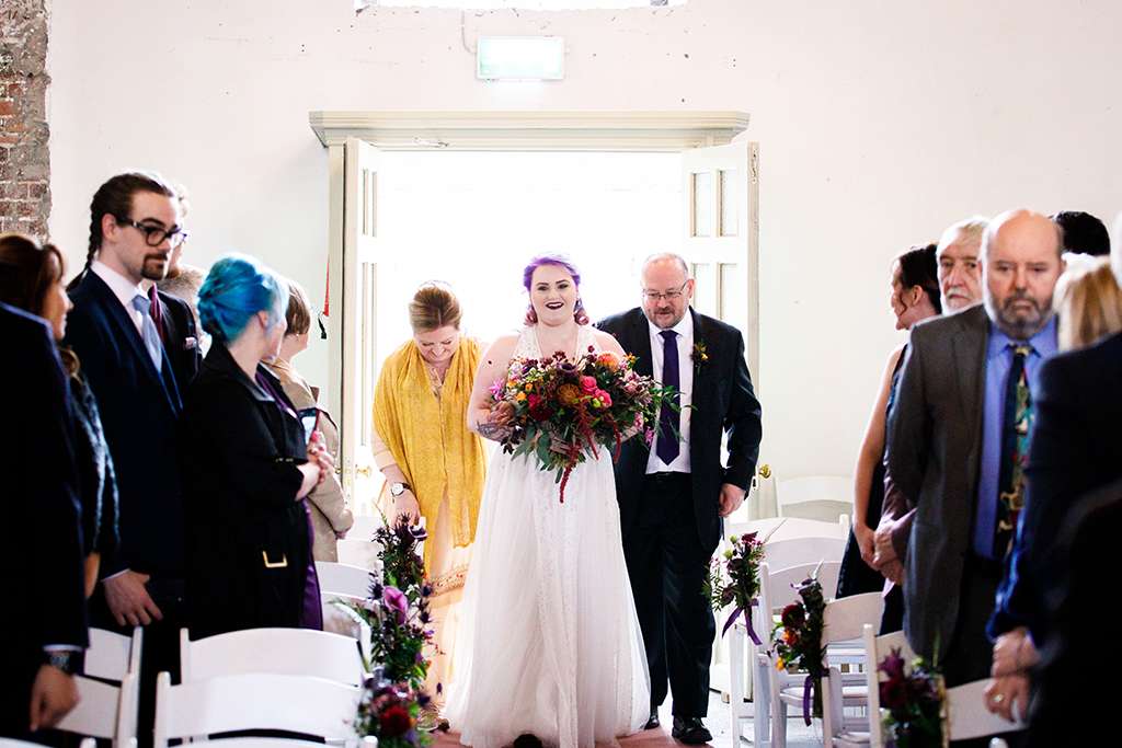 Genevieve and Dean had a spiritualist ceremony, as it allowed them to completely customise it, whilst still allowing the groom to have some religious elements. “I walked down the aisle to Kingdom Heart’s song Dearly Beloved, which I left as a complete surprise to Dean as this is his favourite video game and love story!” the bride said. “Both my parents walked me down the aisle, which was rather fun, albeit a tight squeeze!”