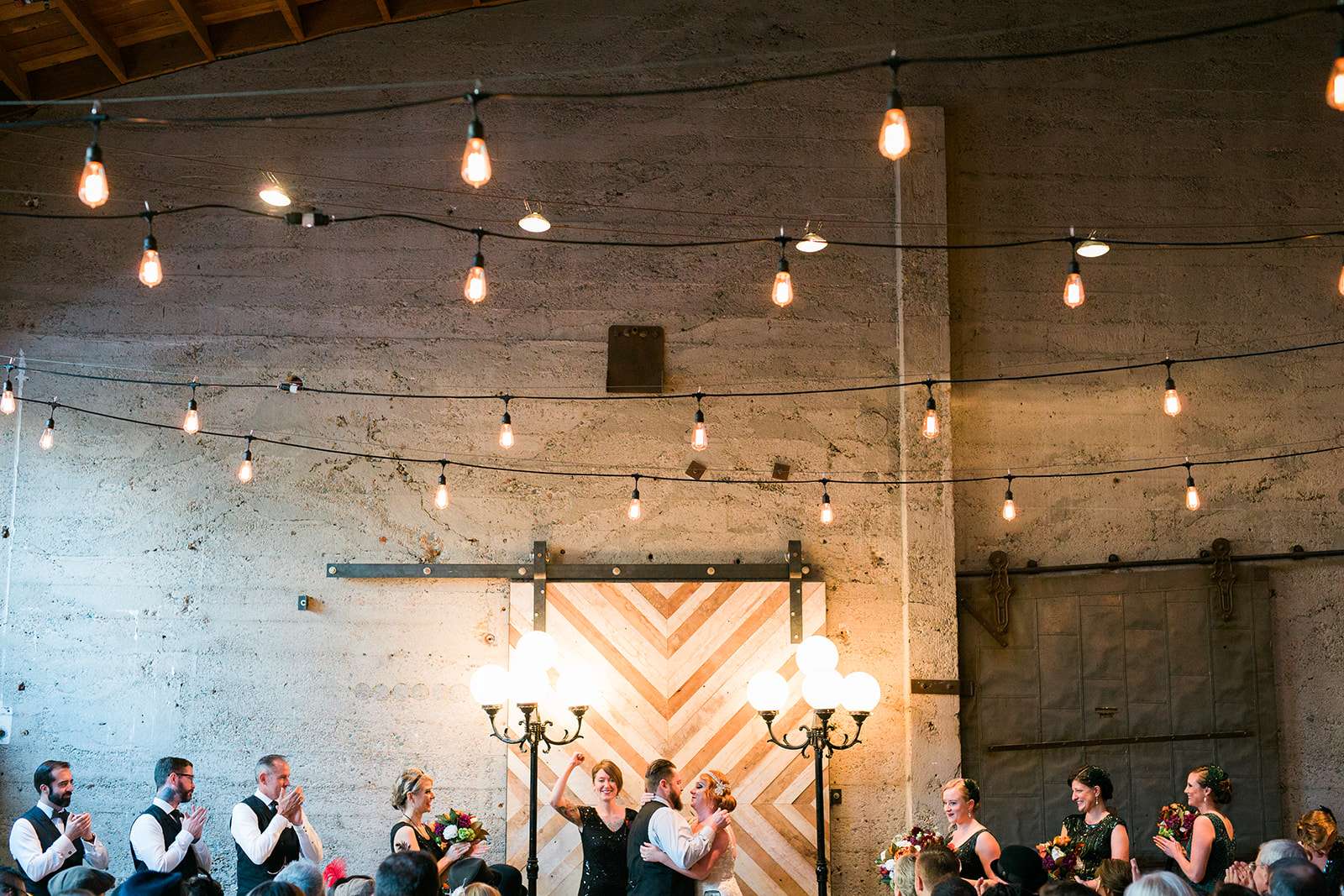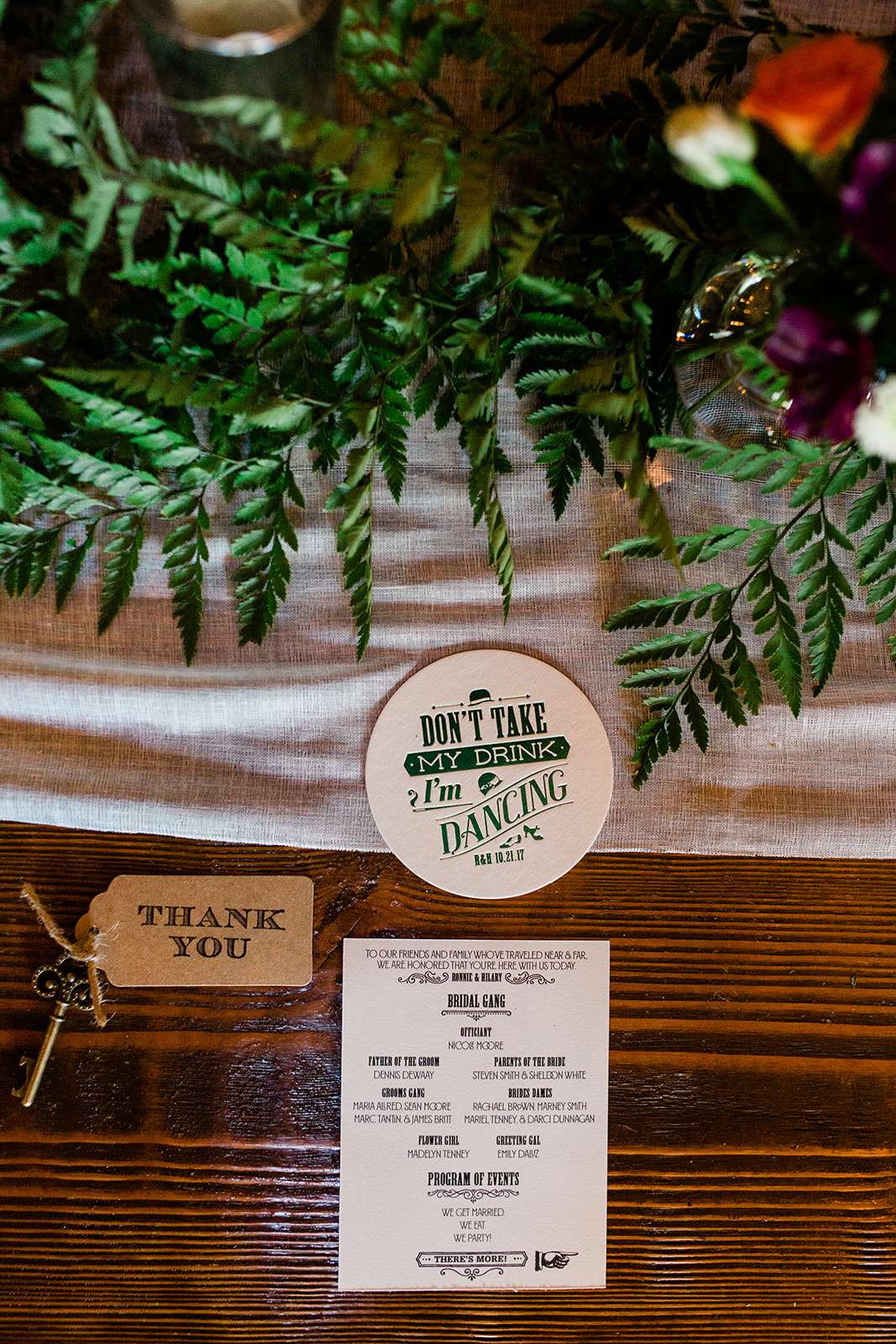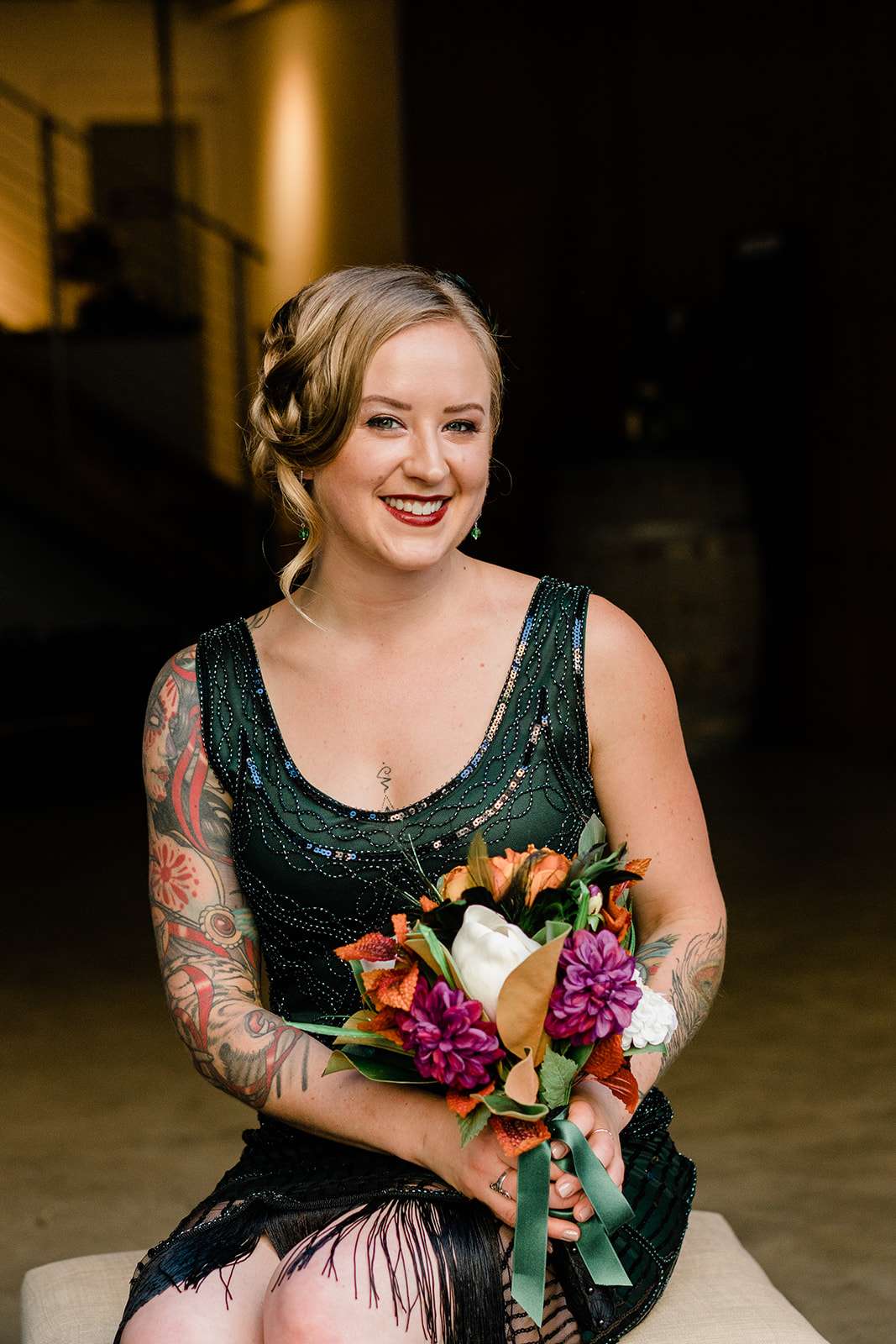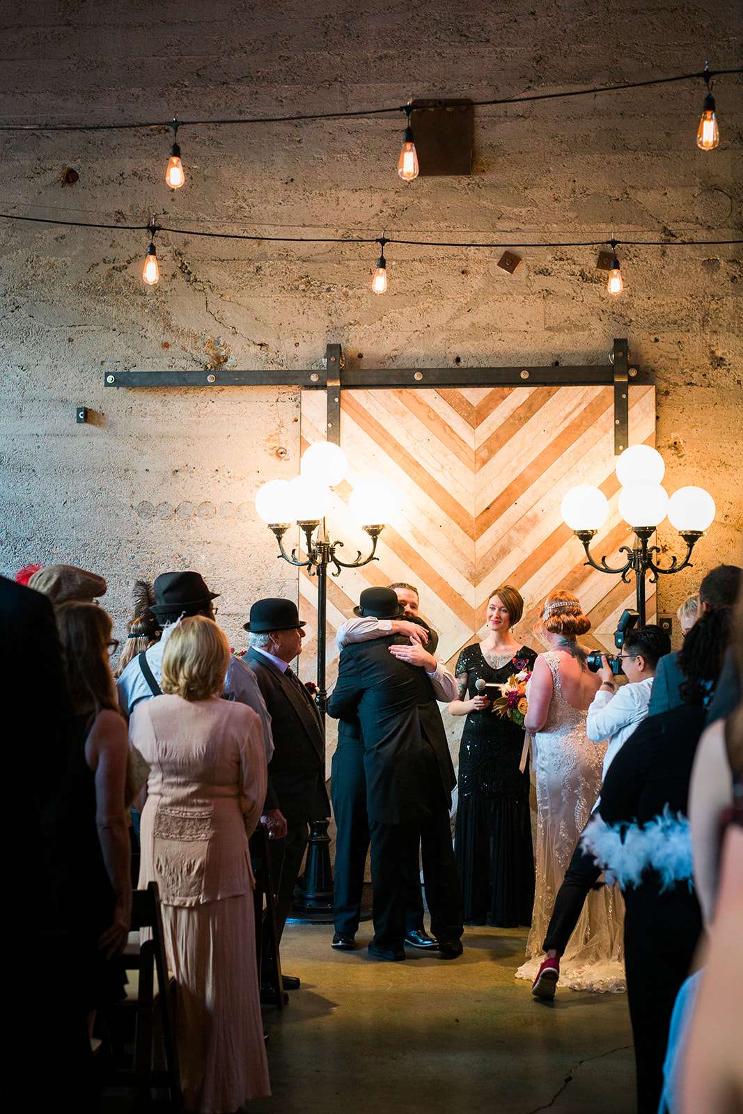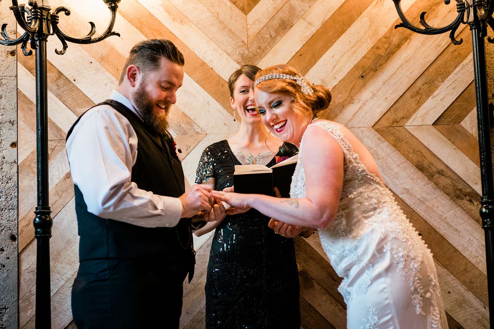As Hilary and Ronnie both work in TV production, it makes perfect sense that their wedding was inspired by one of their favourite shows. “I know 1920s themed weddings are really popular, but we were keen to avoid the ‘Gatsby’ look,” explained Hilary. “I really studied the set design on Peaky Blinders to get a rustic 1920s vintage look with the over the top glitz. We also really wanted our guests to have fun with costumes since we were getting married so close to Halloween, which is our favourite holiday.”