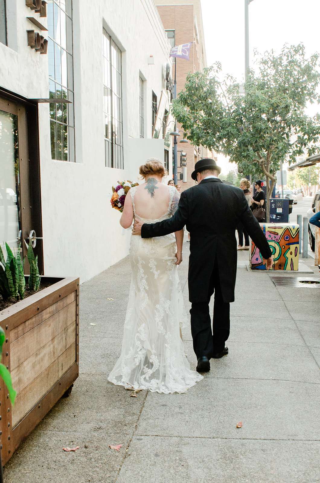 They kept things in the family, so to speak, even further, with their good friend writing their vows and performing their ceremony. “She incorporated some quotes from The Princess Bride, which is one of our favourite movies, which was such a delightful surprise. The ceremony was the part we were most nervous about (we just wanted to get to the party), so we were happy for some happy tears and some laughs, and for it to go smoothly!”