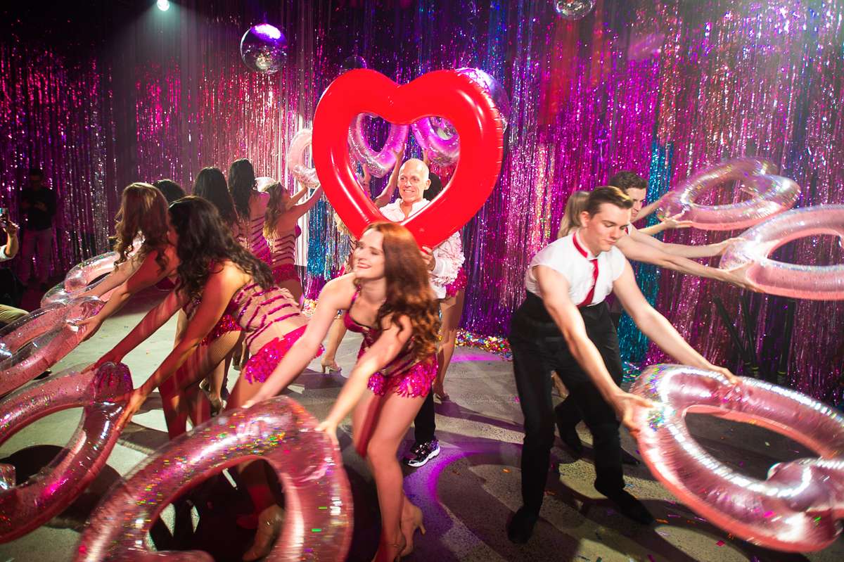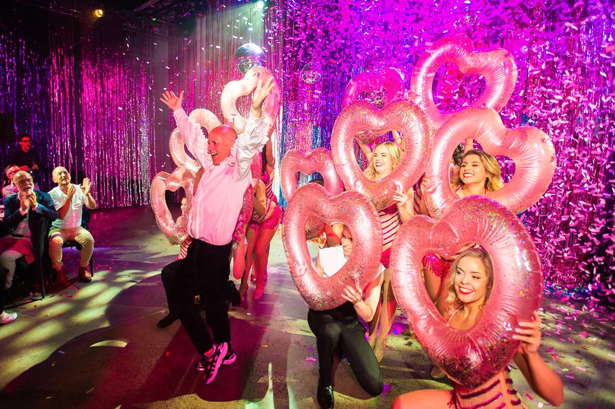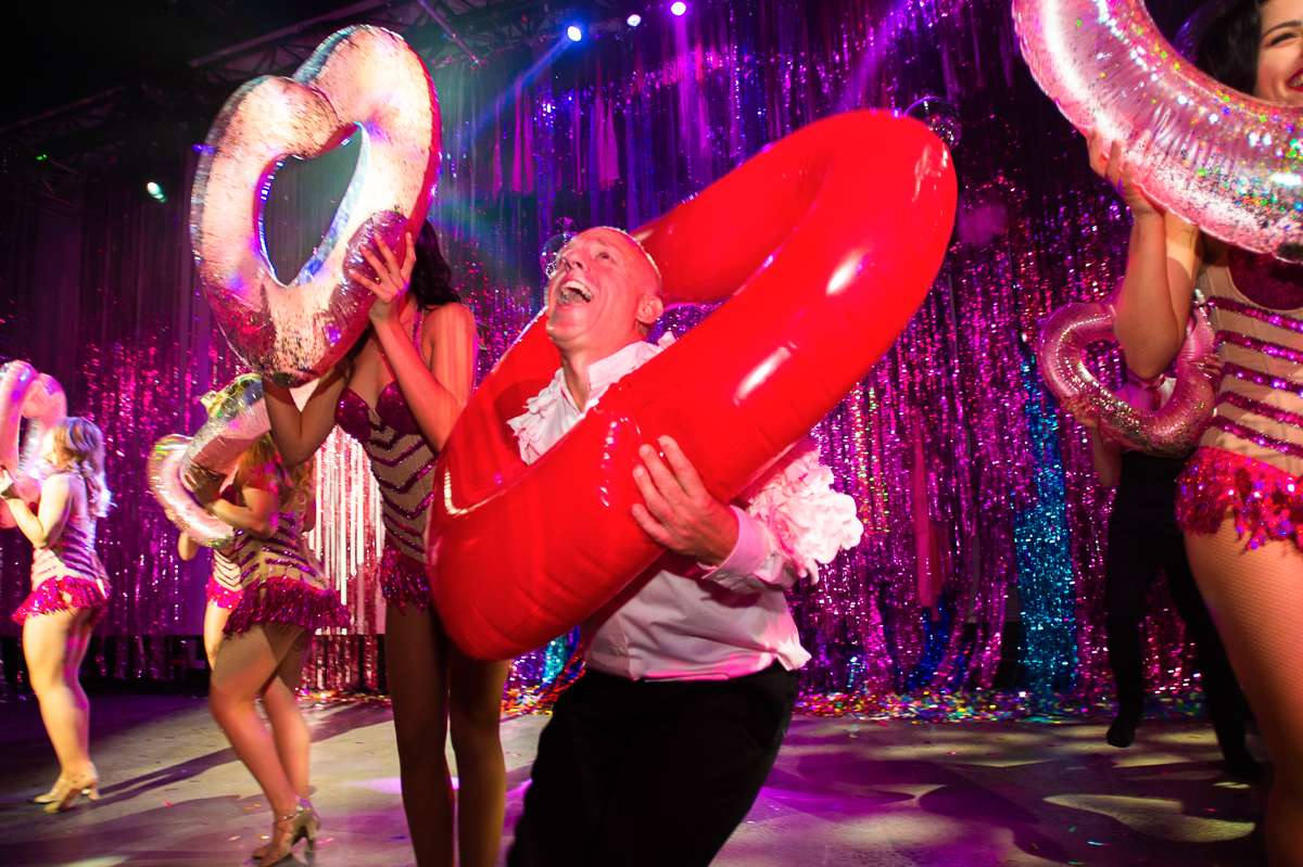 The entertainment at the end of the night was wild and such a lot of fun! As a complete surprise to Matt, Sean and some of the guests organised a performance of I Should be so Lucky. Sean lip-synced complete with 12 back up dancers, huge inflatable hearts and glitter canons! They then had drag queen Minnie Cooper singing Singing In The Rain (live!) with her dancers in raincoats and rainbow umbrellas. Then, Decoda Secret did a performance of On A Night Like This by Kylie with lasers and fireworks!