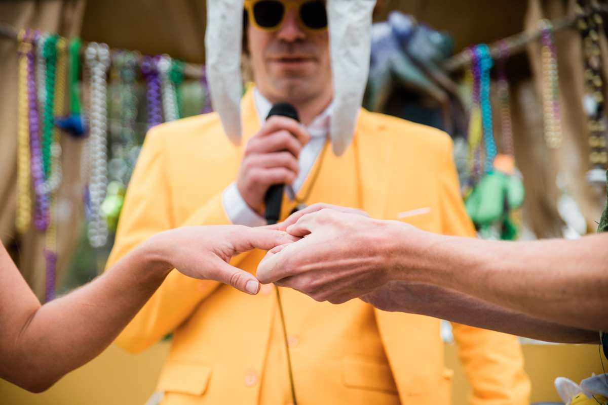 “We also had five days of Mardi Gras events leading up to the official ceremony! Most of which were self-catered and DIY. We loved that we were able to have a multiple day extravaganza with friends and family for a similar price of a traditional wedding.”