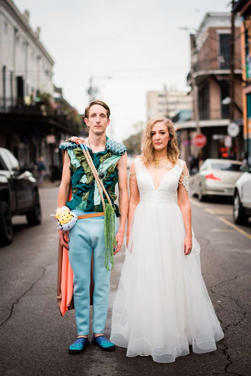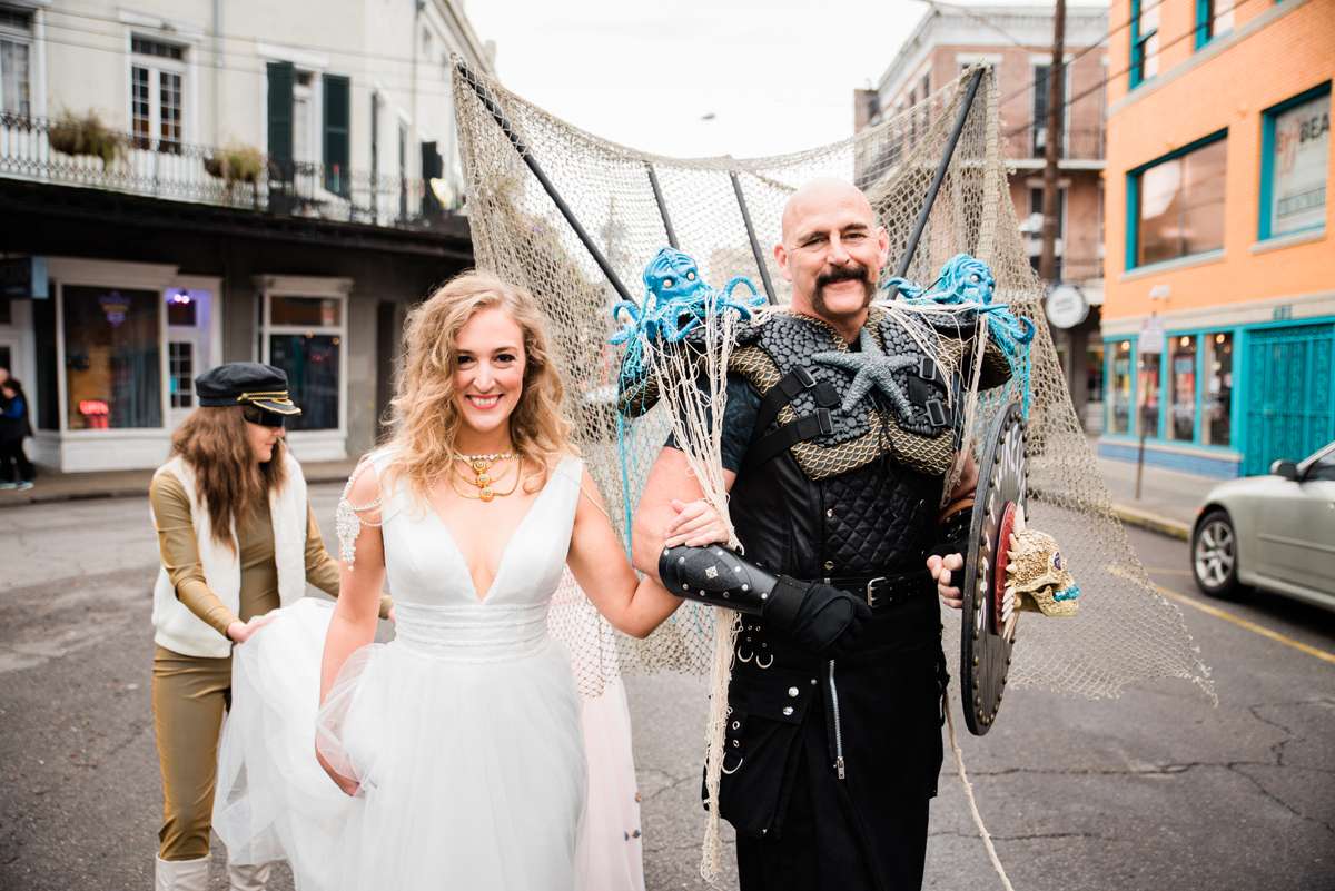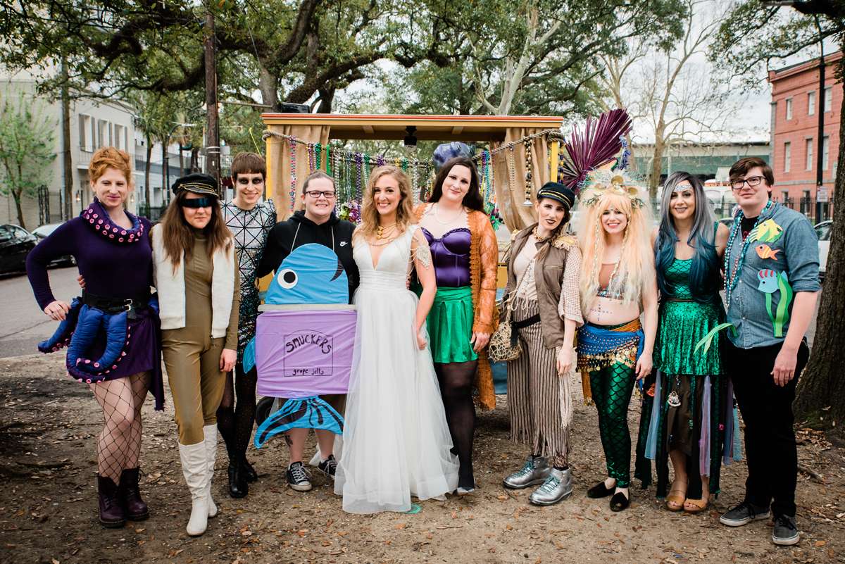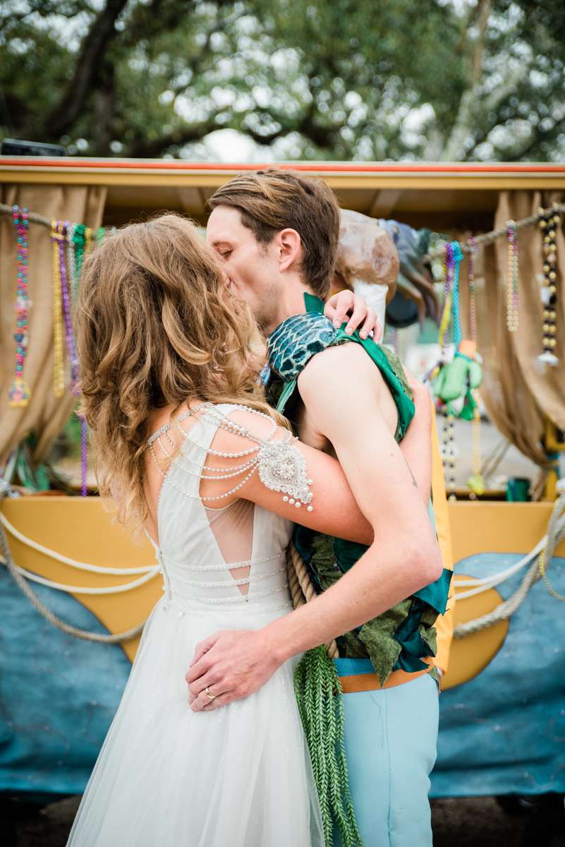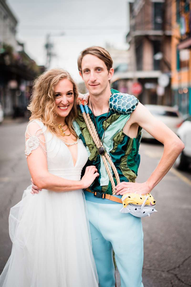 Every year the couple make their own Mardi Gras costumes related to ‘The End Times’ and for this year’s part they decided their theme would be is WaterWorld… They loved the theme idea so much that they then decided it would be the perfect setting for a wedding ceremony too. They couldn’t imagine a better way for them to ‘tie the knot’ (boom boom!) than enjoying Mardi Gras with all the people they love.