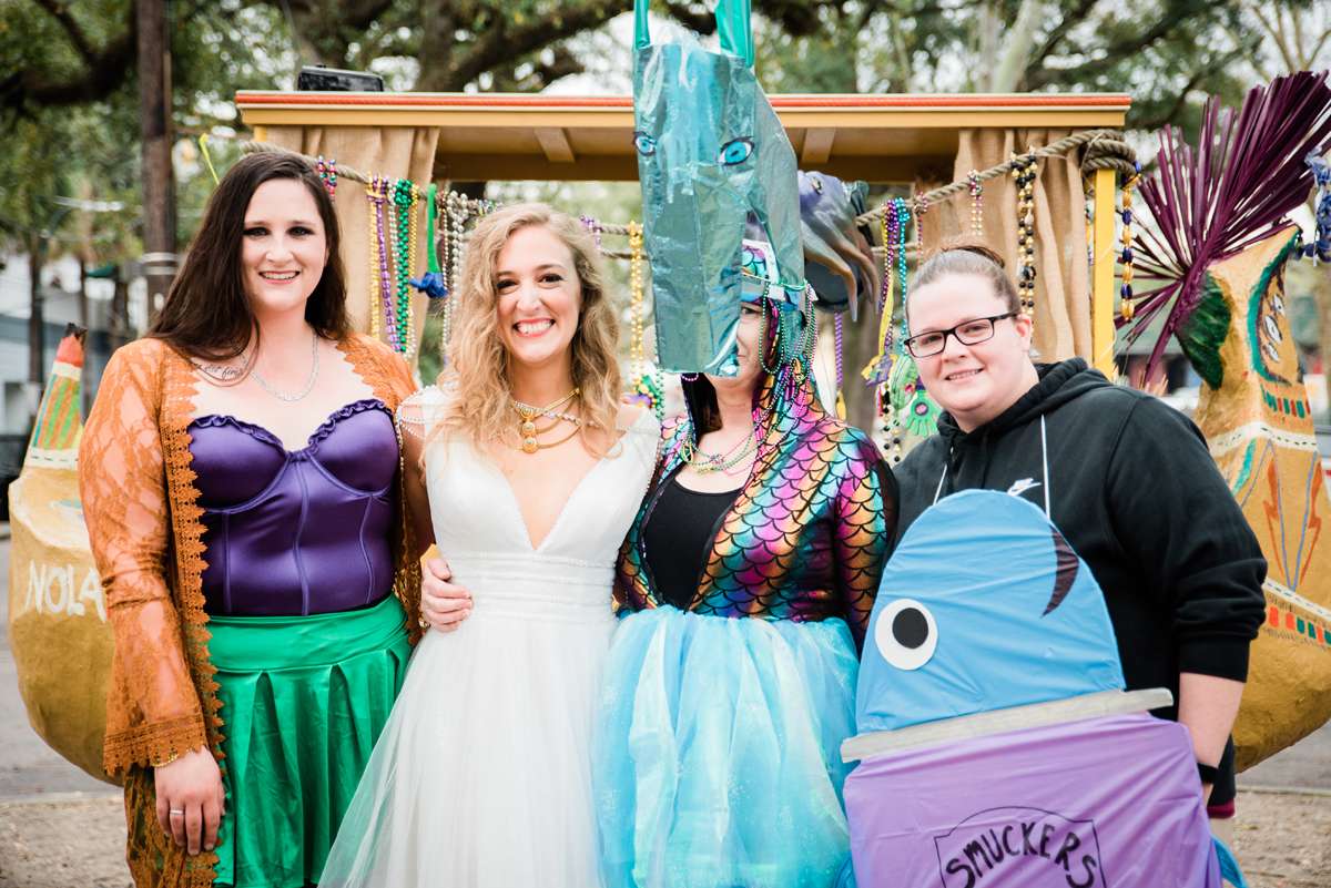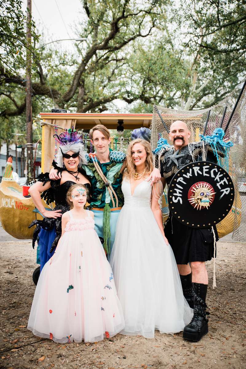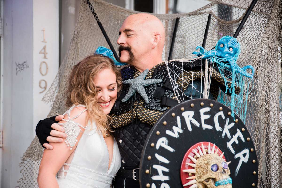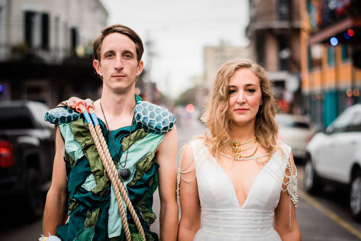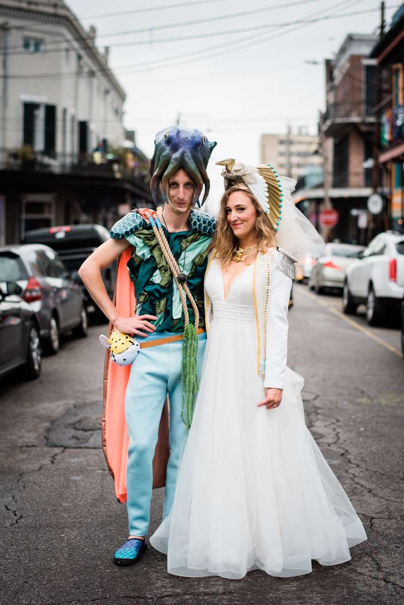 Every year the couple make their own Mardi Gras costumes related to ‘The End Times’ and for this year’s part they decided their theme would be is WaterWorld… They loved the theme idea so much that they then decided it would be the perfect setting for a wedding ceremony too. They couldn’t imagine a better way for them to ‘tie the knot’ (boom boom!) than enjoying Mardi Gras with all the people they love.