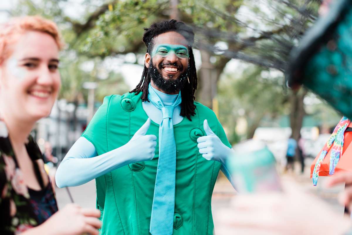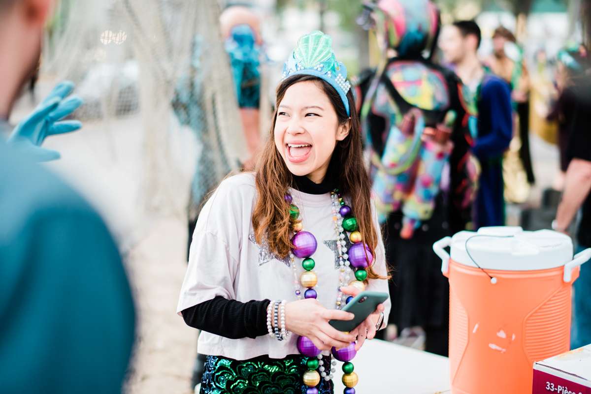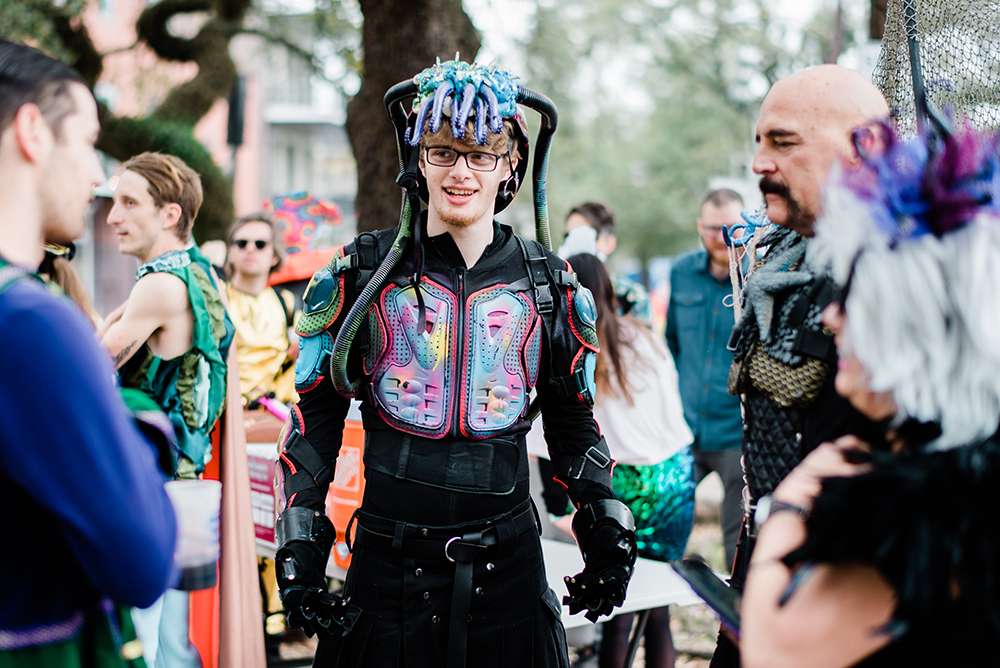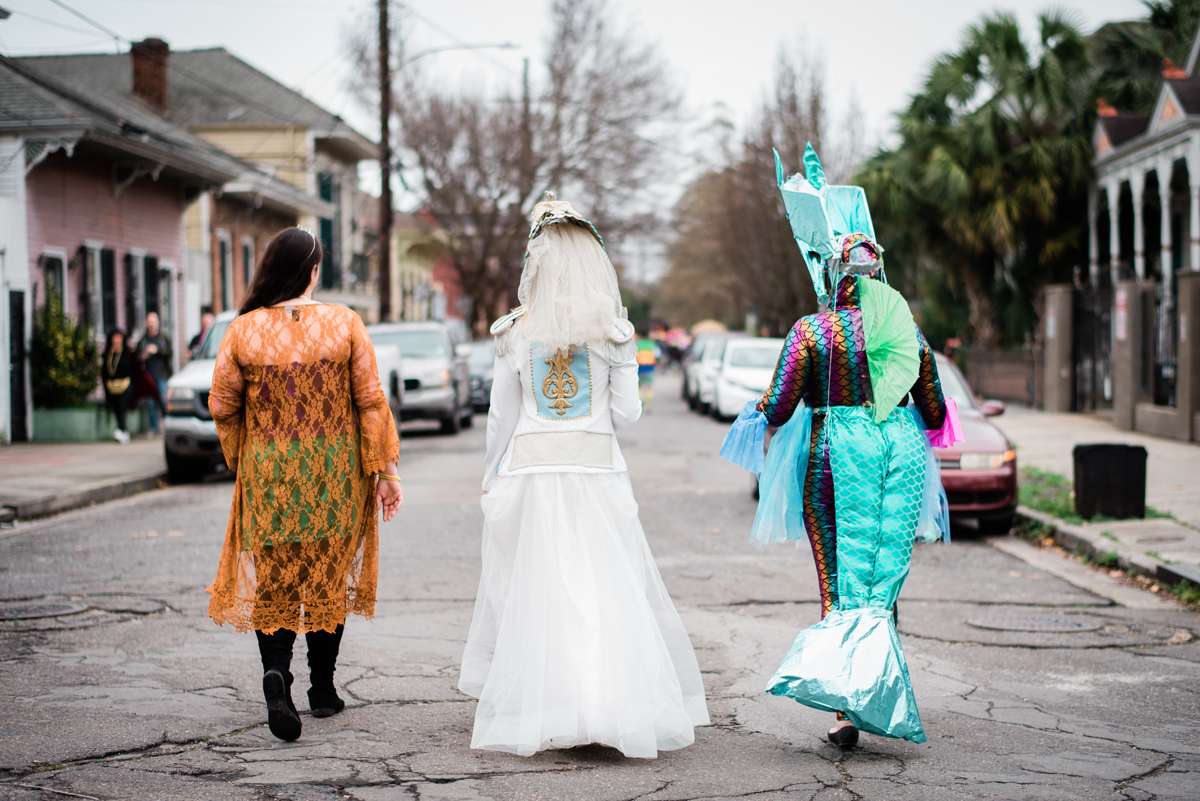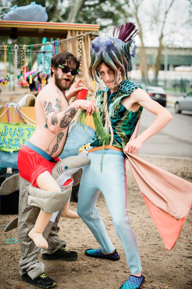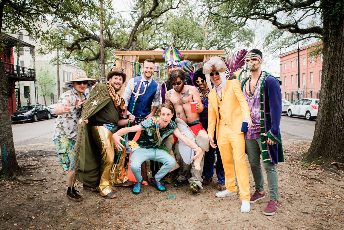 Every year the couple make their own Mardi Gras costumes related to ‘The End Times’ and for this year’s part they decided their theme would be is WaterWorld… They loved the theme idea so much that they then decided it would be the perfect setting for a wedding ceremony too. They couldn’t imagine a better way for them to ‘tie the knot’ (boom boom!) than enjoying Mardi Gras with all the people they love.