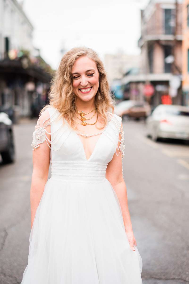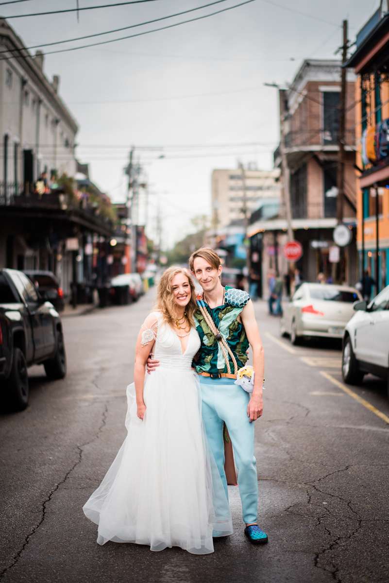 Mason explains, “We planned the ceremony ourselves and got married in the street on Mardi Gras morning. We didn’t have an actual location picked out for our wedding ceremony that morning!”