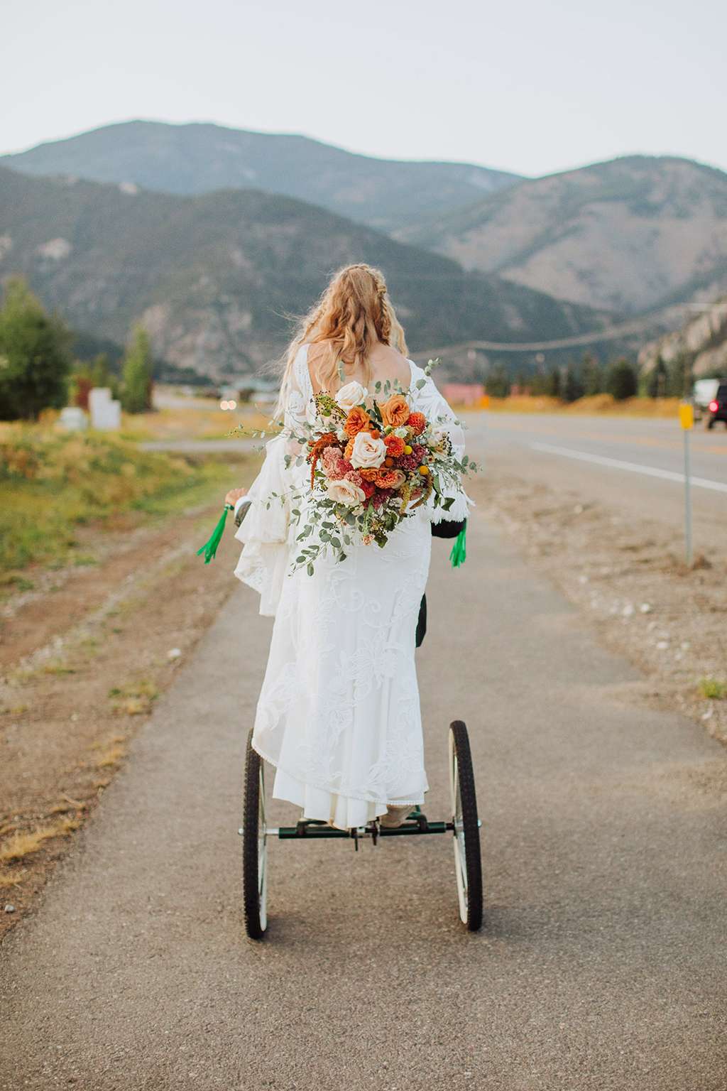“I wanted good food, and we got it! We had elk steaks, rancher potatoes, house-cured bacon on the charcuterie, the list goes on! The dessert table was awesome too!” Katalin Green provided lush floral arrangements which trailed down banquet style tables and across ceilings, as well as the gorgeous bouquet and ceremony backdrop. The trike provided hours of spontaneous entertainment for their guests, and Western Cider helped get the party started. “I just loved throwing a big party!” Adri said.