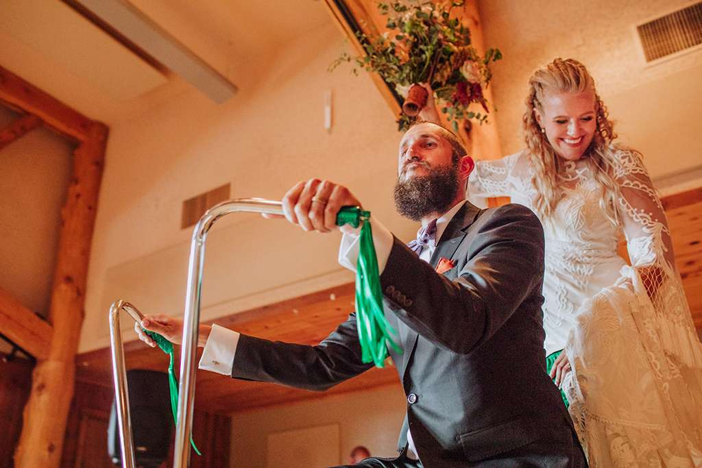 Adri and Matt arrived to their reception in style – on Adri’s trike! It was held at Buck’s T-4 Lodge, as with Montana’s crazy weather they didn’t know if it would be a hot day, or snowing! The lodge took care of all the catering, booze and lodging for their guests, which made it the couple’s biggest expense in their $30,000, but one that they don’t regret for one minute.