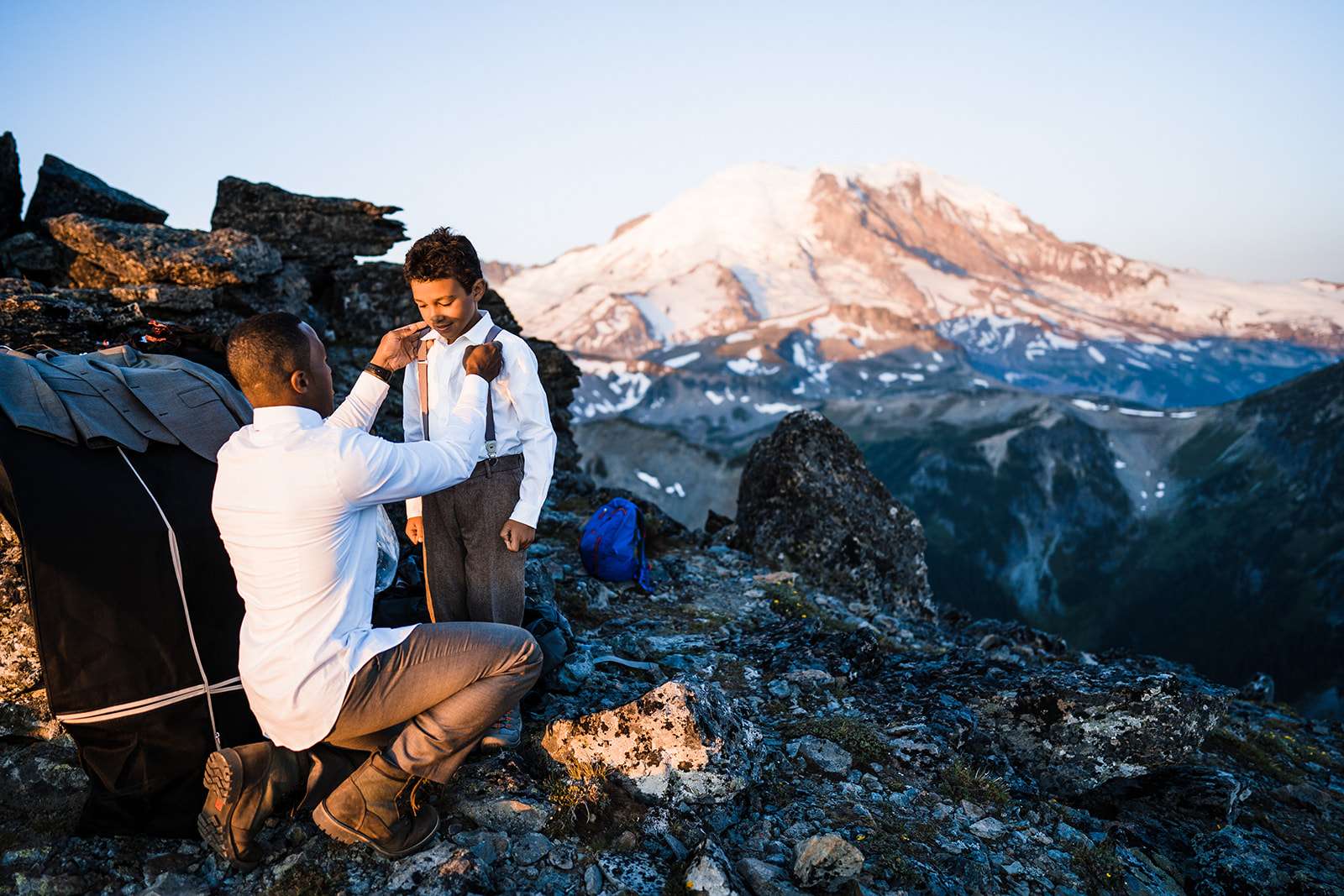 “We both have children from previous relationships and it was important to us that they were included in our day, too. We chose Mt. Fremont Lookout at Mount Rainier because of its expansive views, it’s one of our favourite hikes and we knew the kids could easily hike it.”