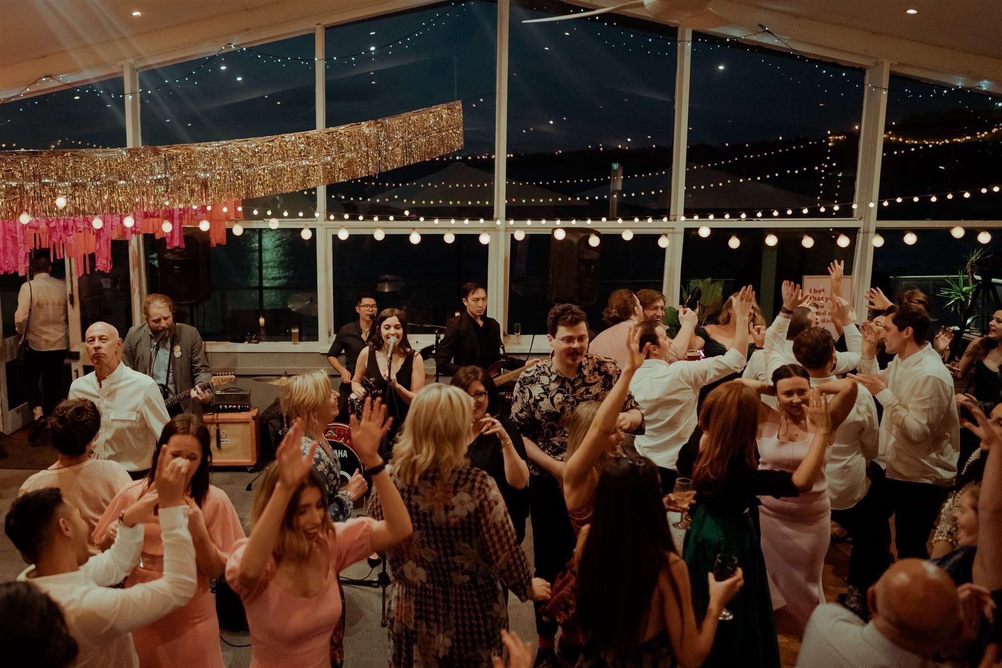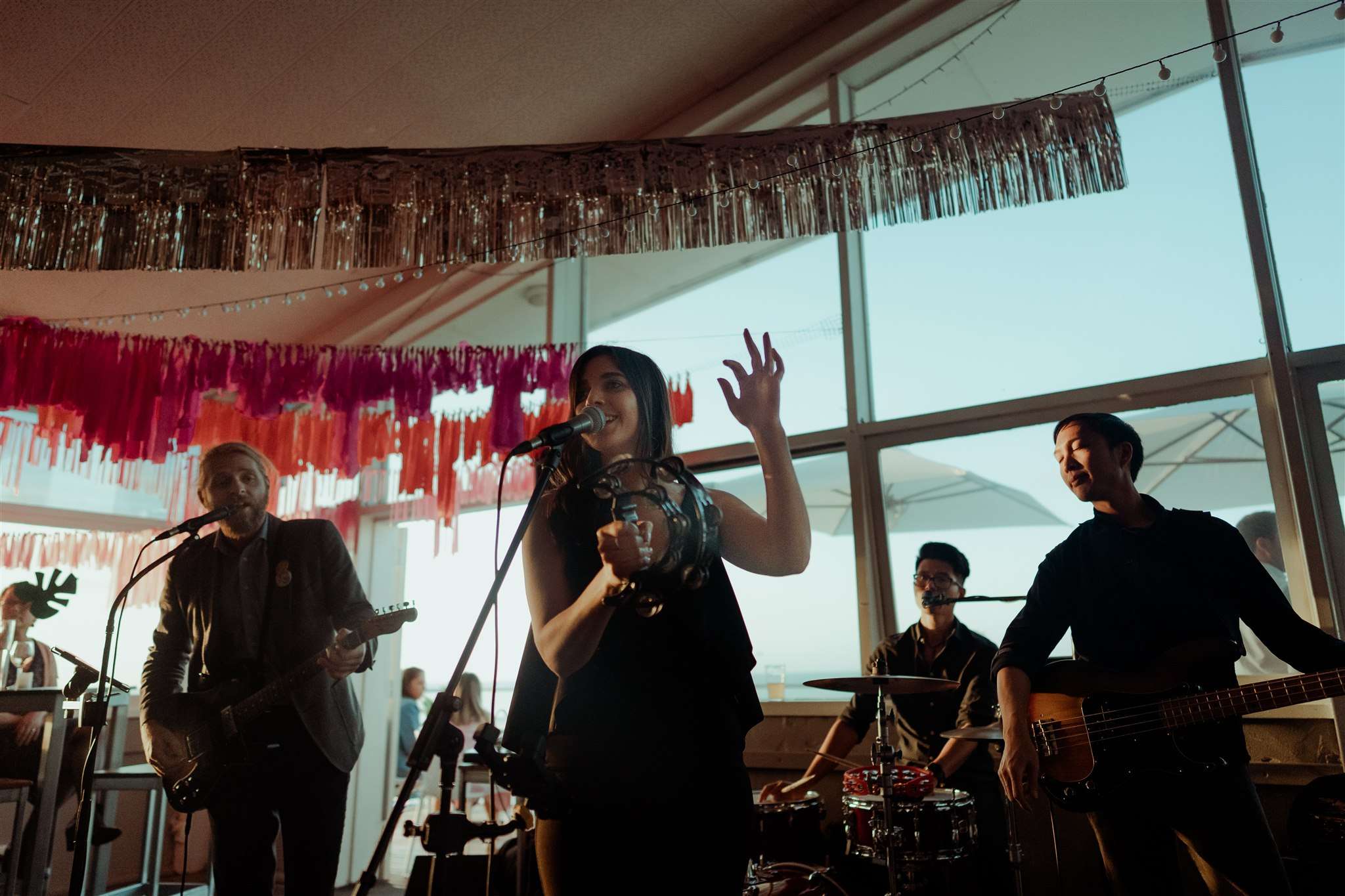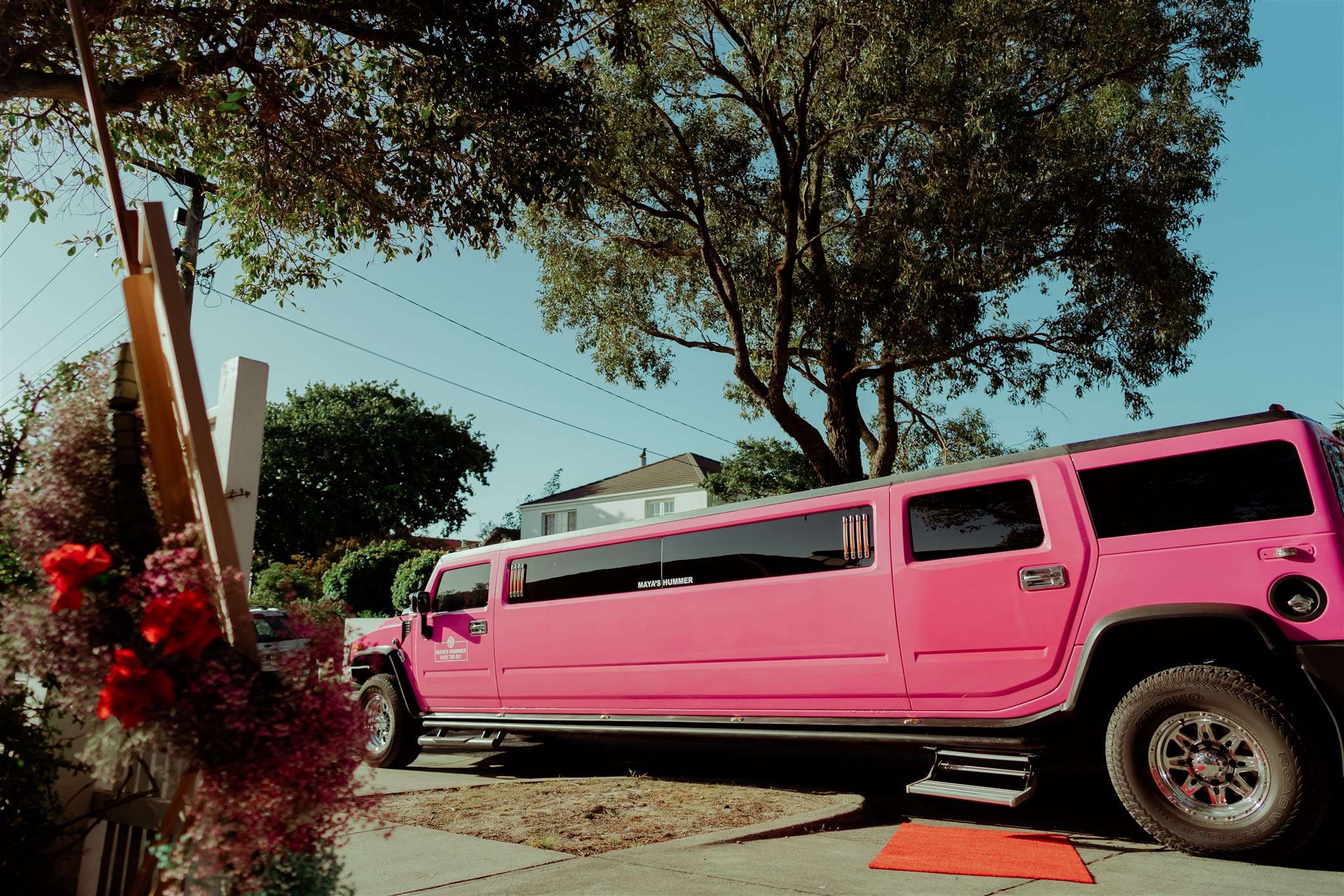 After their ceremony they served pizza, tacos and, of course, plenty of drinks to their loved ones. The bridal party snuck off for photos in a bright pink limo, and then everyone reconvened at Black Rock Yacht Club for a more drinks and dancing! At this point the bride also changed out of her Karen Willis Holmes dress into something more suitable for a party.