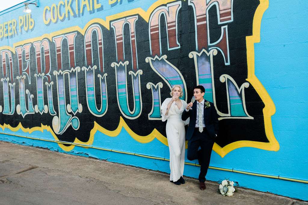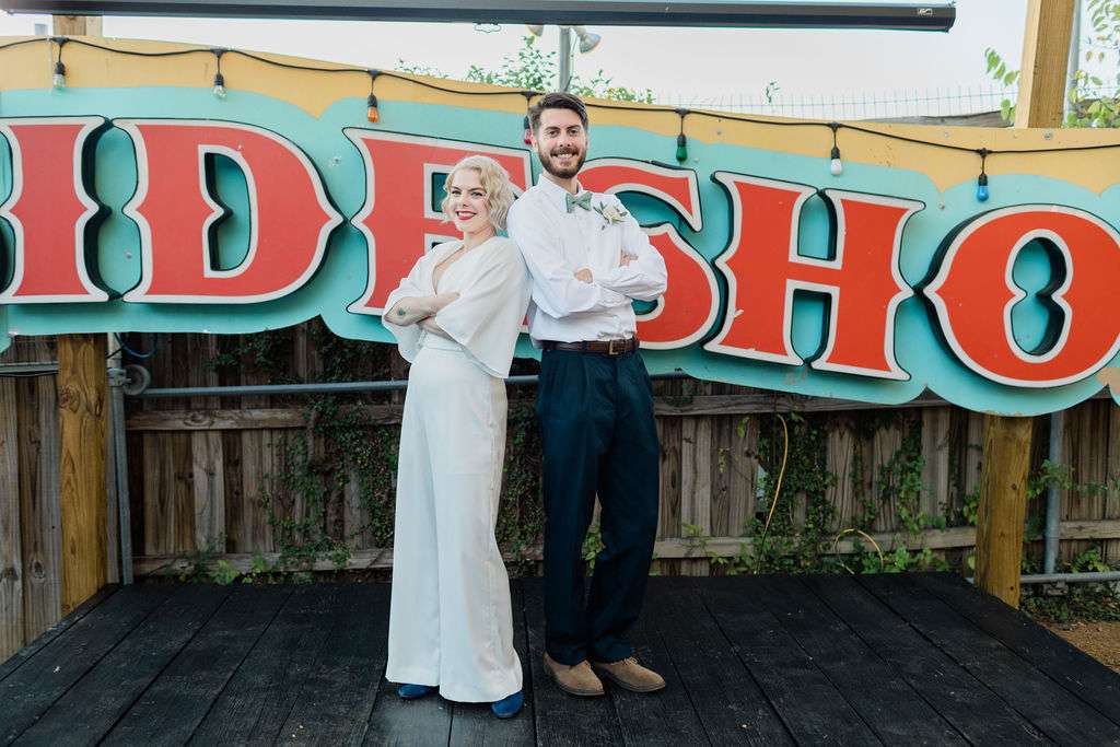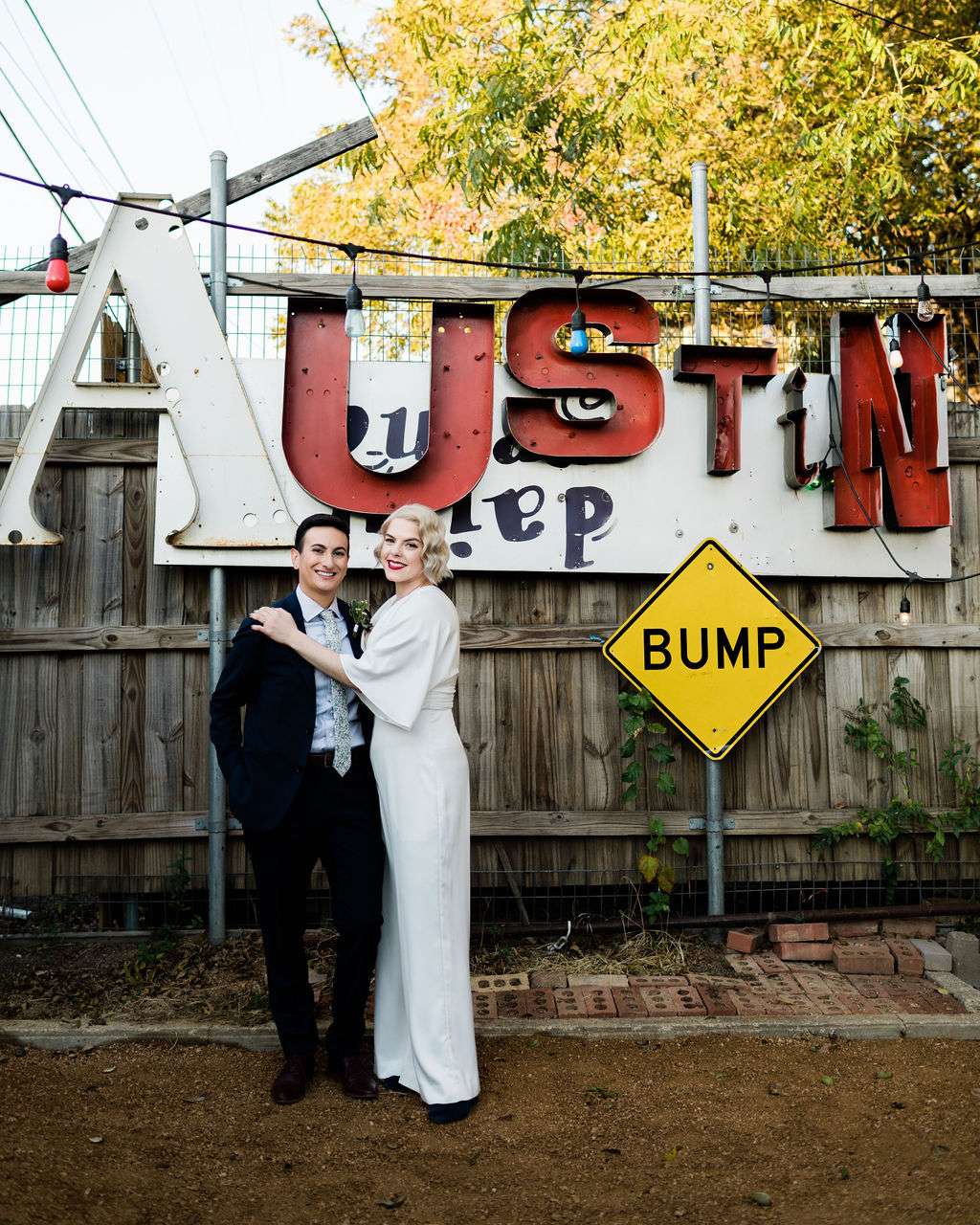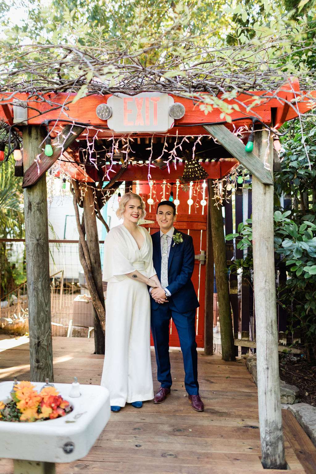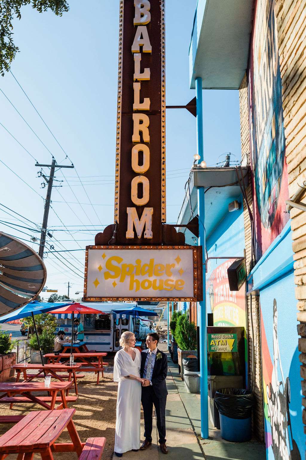 For their November 2019 wedding, they wanted to hold it an an inexpensive, all-in-one venue that was casual, fit their personalities and had some sentimental value to the both of them. They found this in The Ballroom at the Spiderhouse Cafe in Austin, Texas, a mid-century café and event space with tonnes of rock ’n roll history!