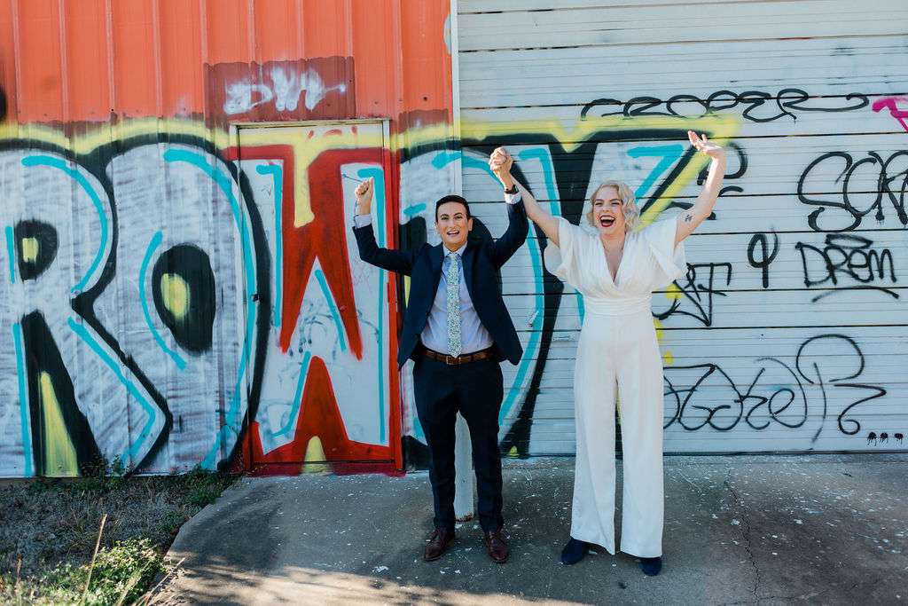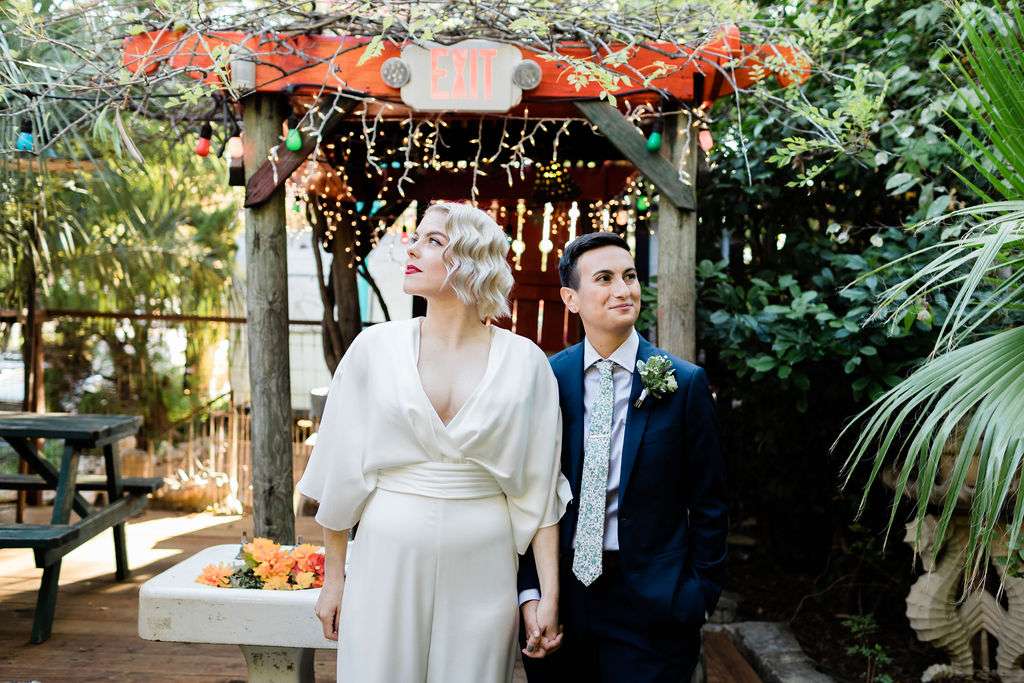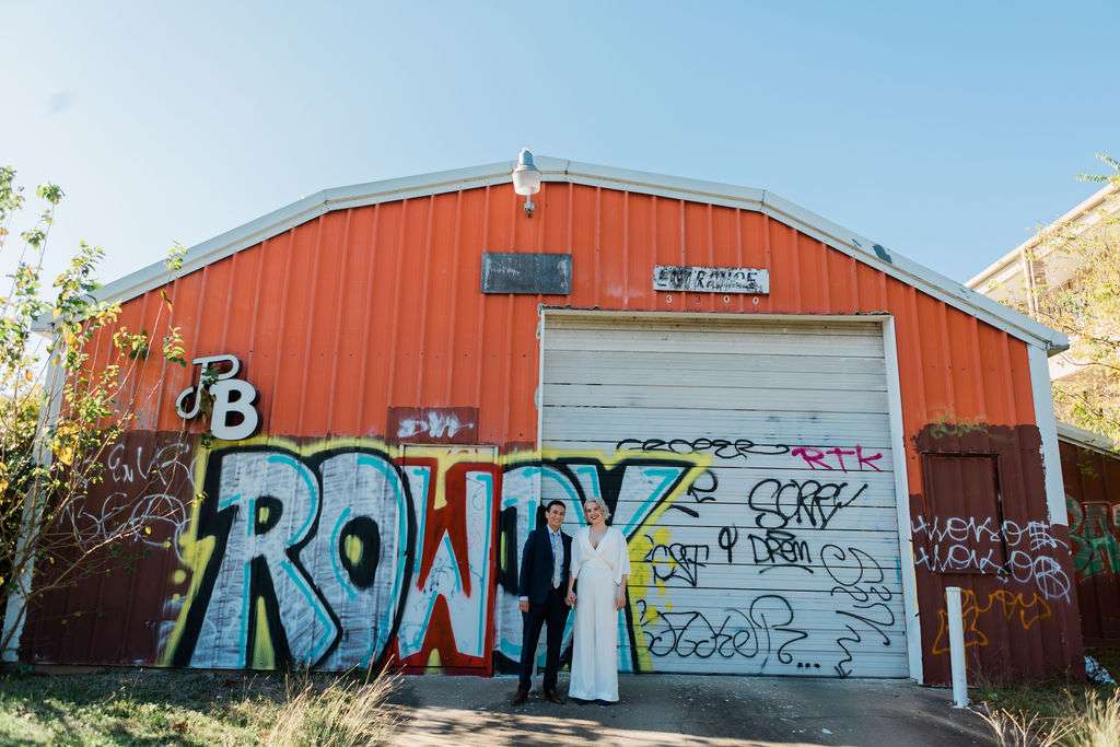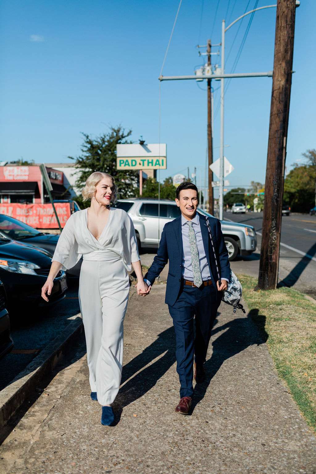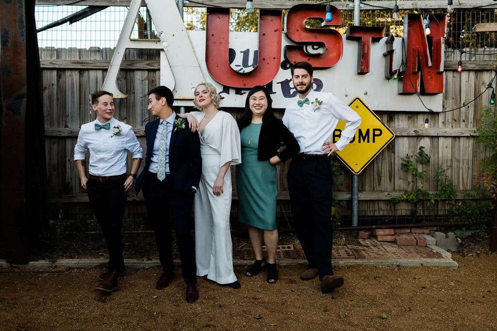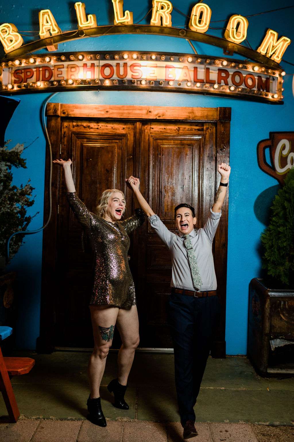 For their November 2019 wedding, they wanted to hold it an an inexpensive, all-in-one venue that was casual, fit their personalities and had some sentimental value to the both of them. They found this in The Ballroom at the Spiderhouse Cafe in Austin, Texas, a mid-century café and event space with tonnes of rock ’n roll history!