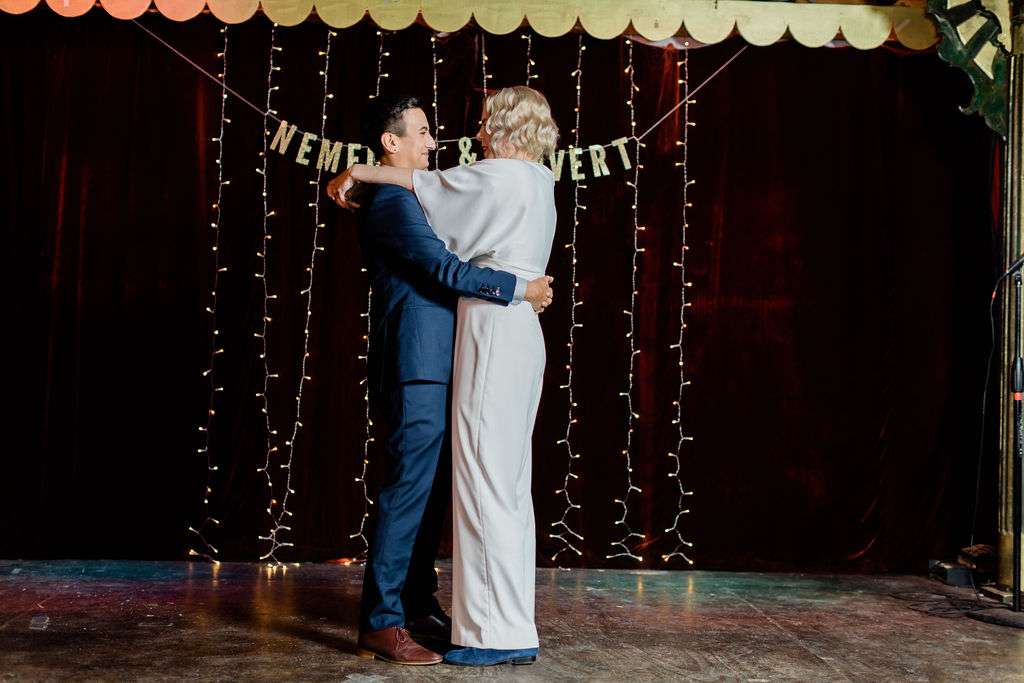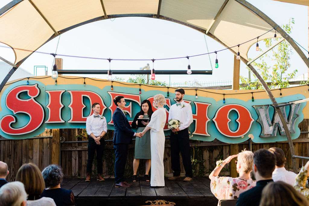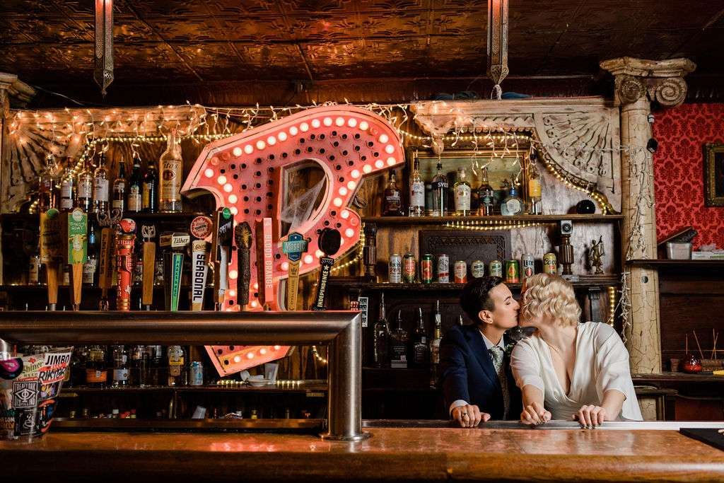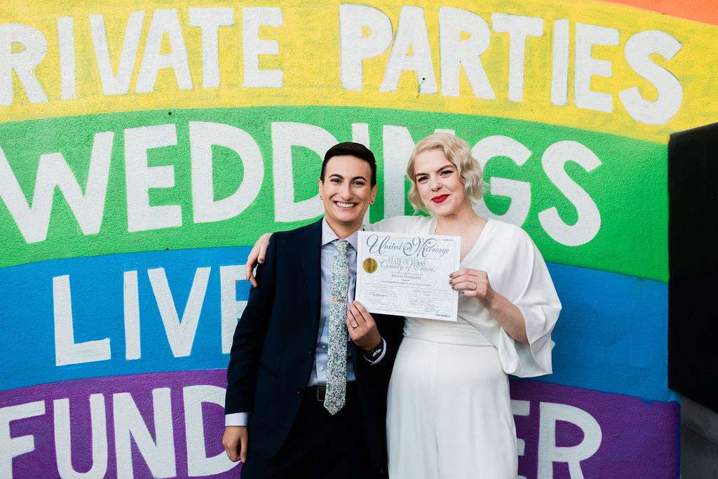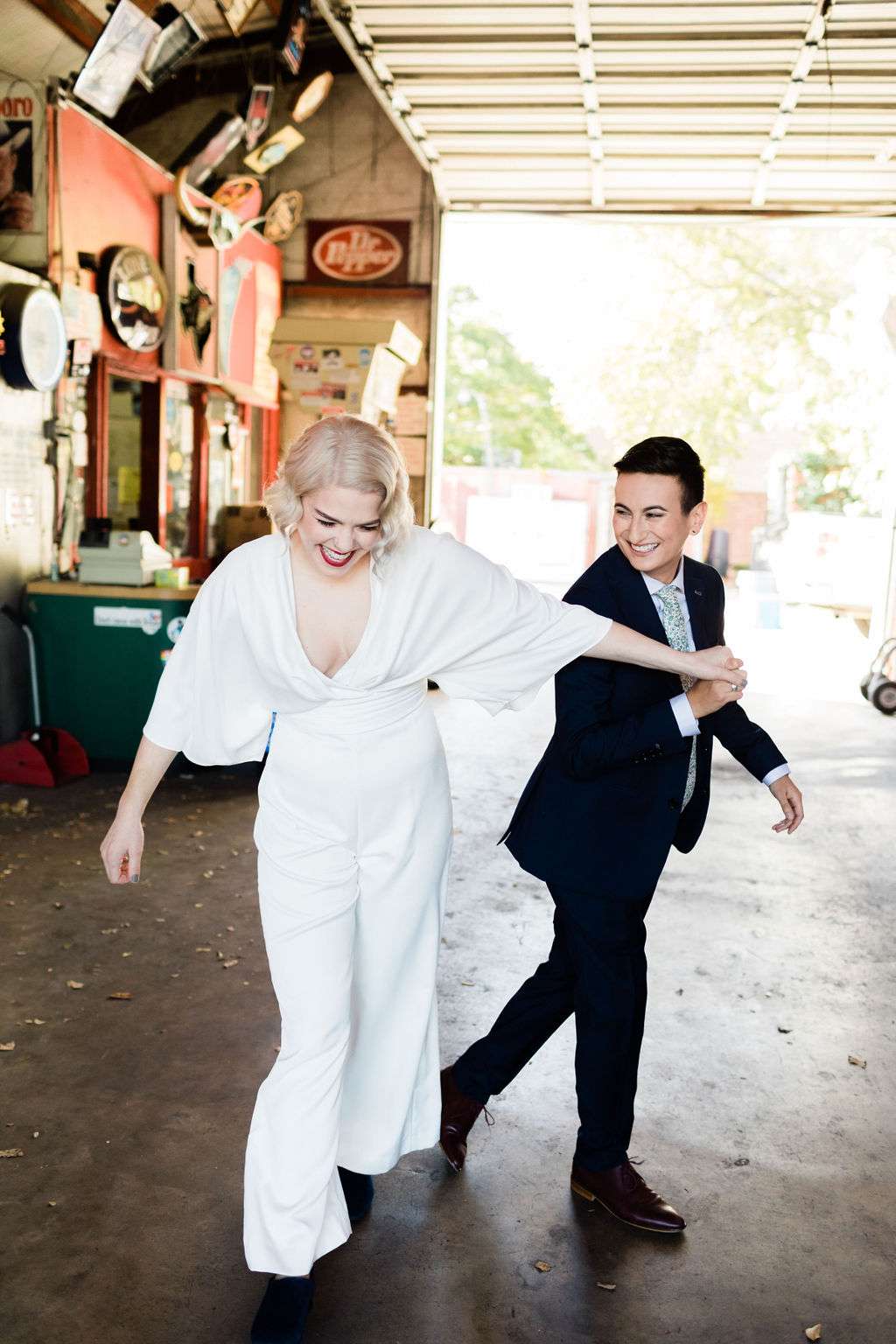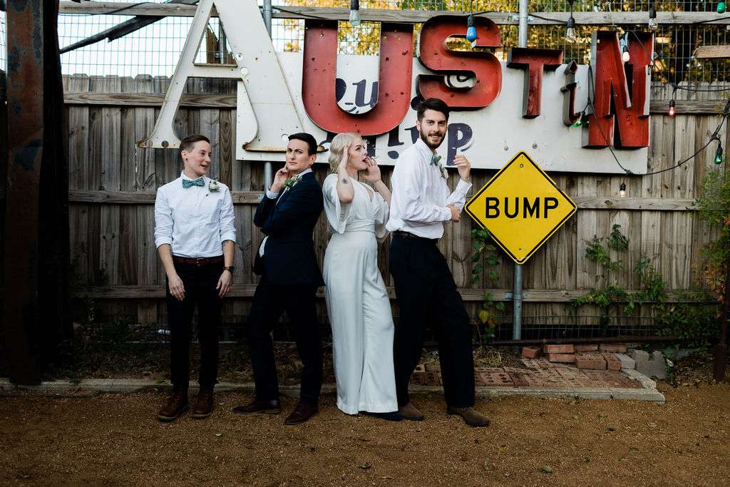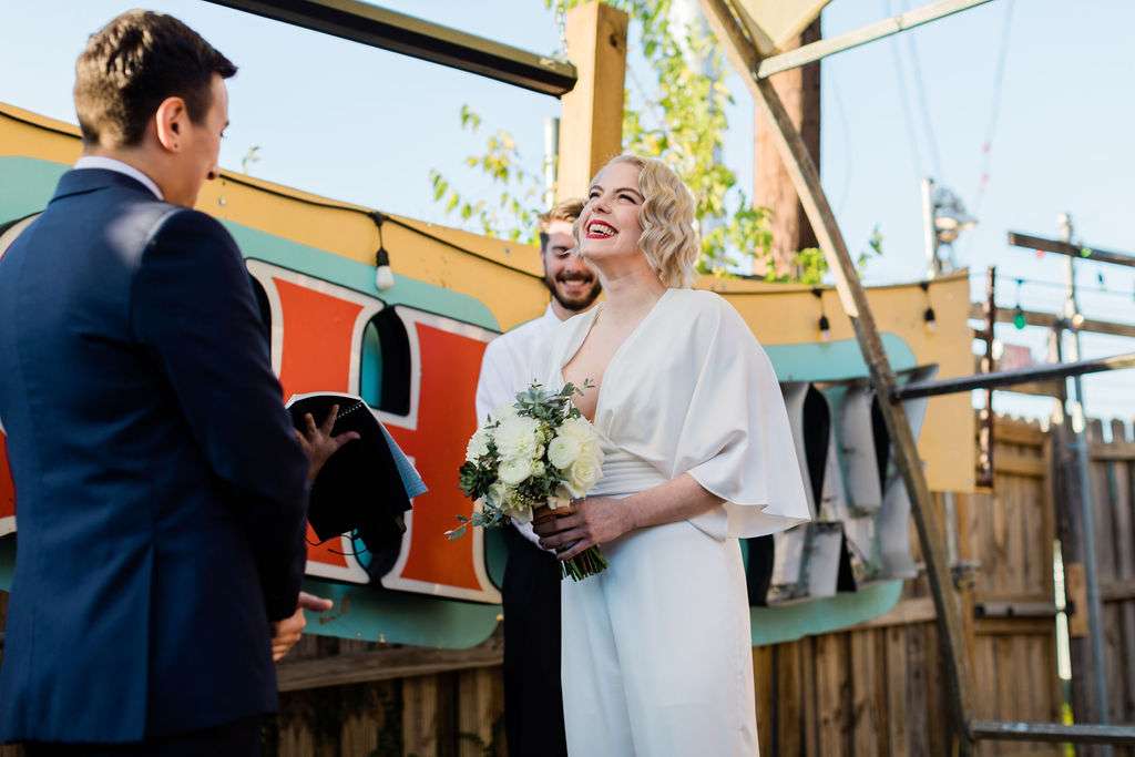 For their November 2019 wedding, they wanted to hold it an an inexpensive, all-in-one venue that was casual, fit their personalities and had some sentimental value to the both of them. They found this in The Ballroom at the Spiderhouse Cafe in Austin, Texas, a mid-century café and event space with tonnes of rock ’n roll history!