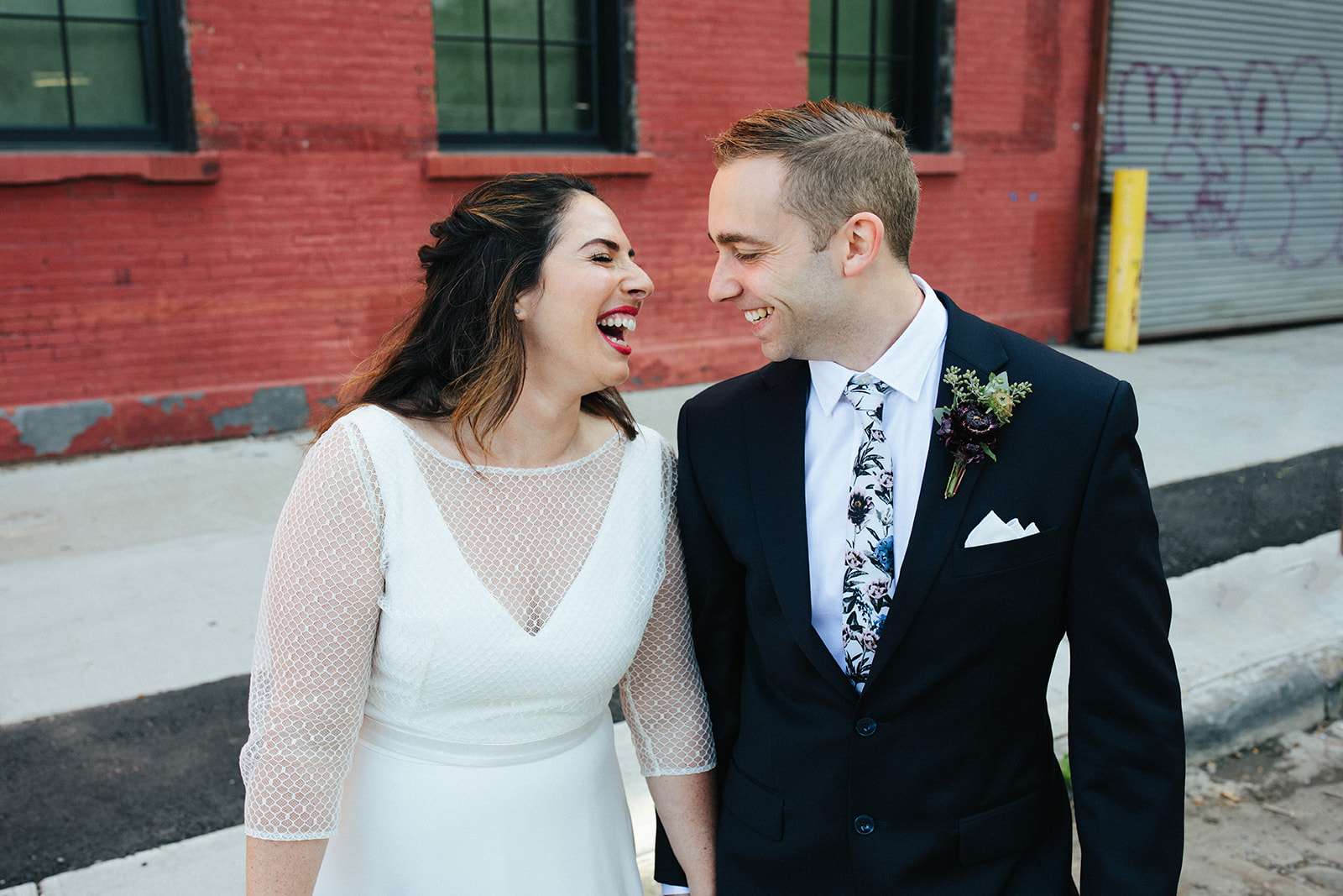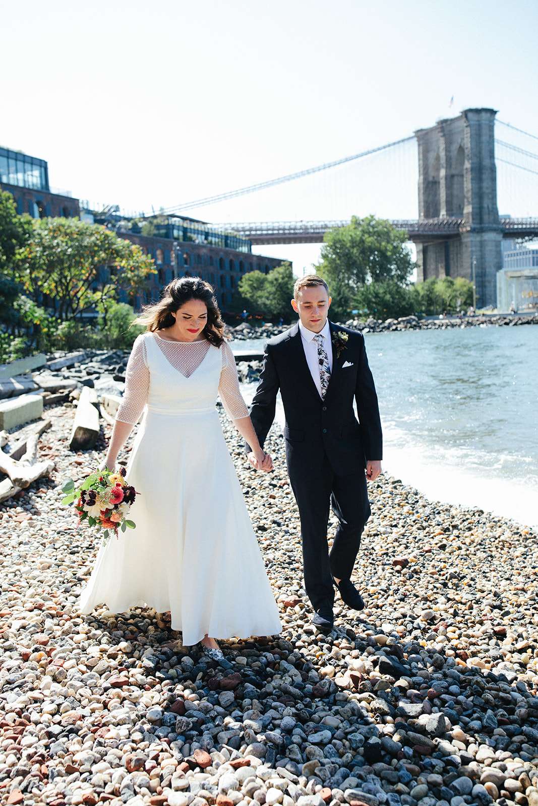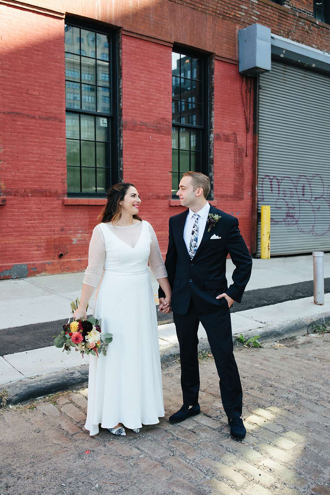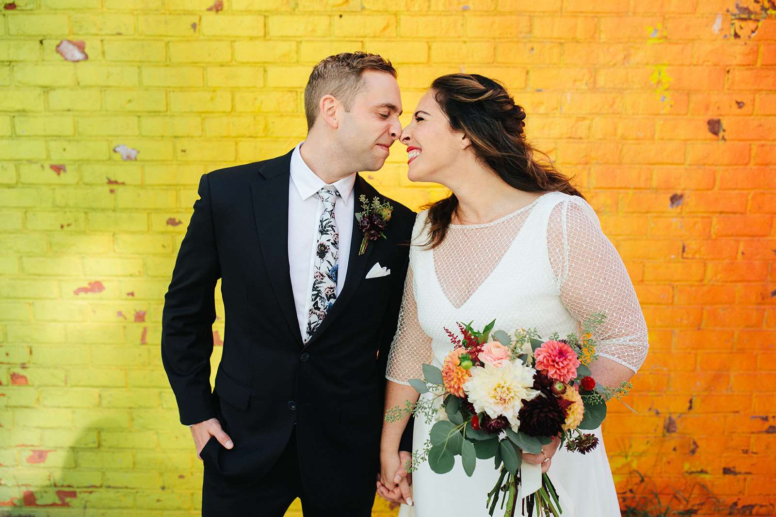 When American Lara and British Kevin got married at NYC city hall last September, they essentially planned their pre-ceremony photo shoot around the incredible rainbow wall in DUMBO, Brooklyn. Lara has a popular Instagram account where she bakes, tastes and photographs rainbow food and baked goods so having a rainbow element to their day was a non-negotiable!
