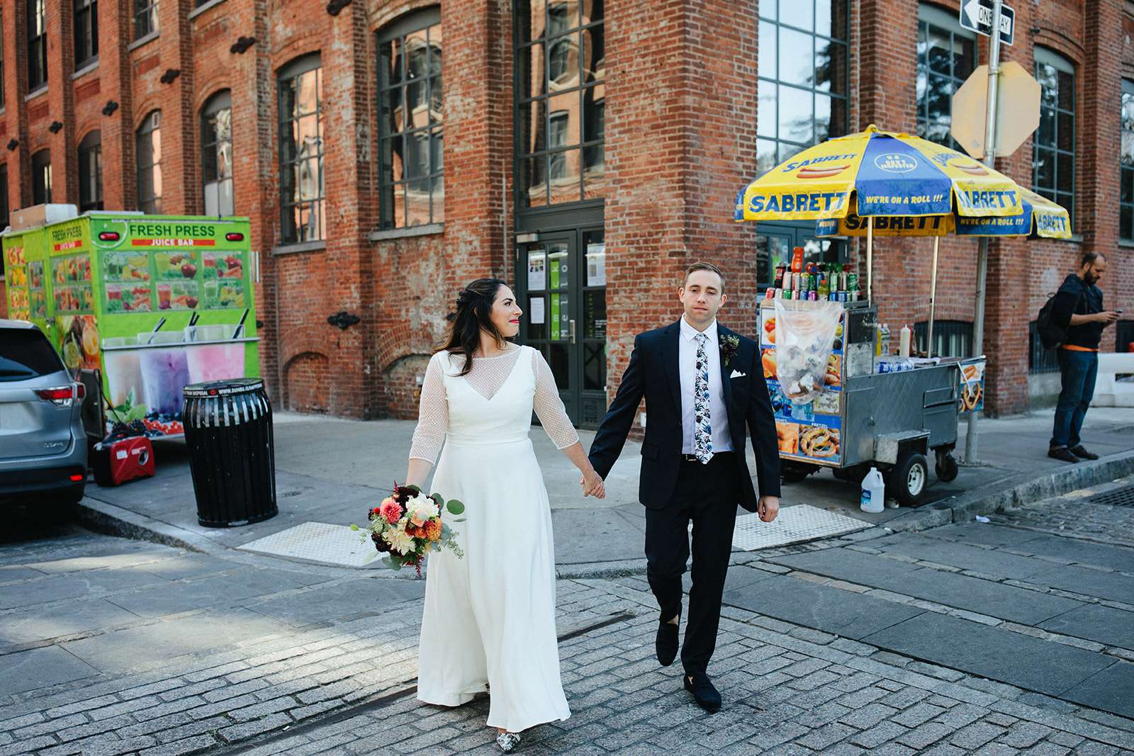 The couple met on OKCupid and talked for months before they ever met in person. However when they did it was love at first sight and Kevin stared the visa process to move over to the US almost immediately! He was finally able to move over to New York a month before they got married. Having a city hall wedding was the perfect option for them, it also meant they had plenty of time for photos with their photographer, Sylvie at some of Lara’s favourite spots.