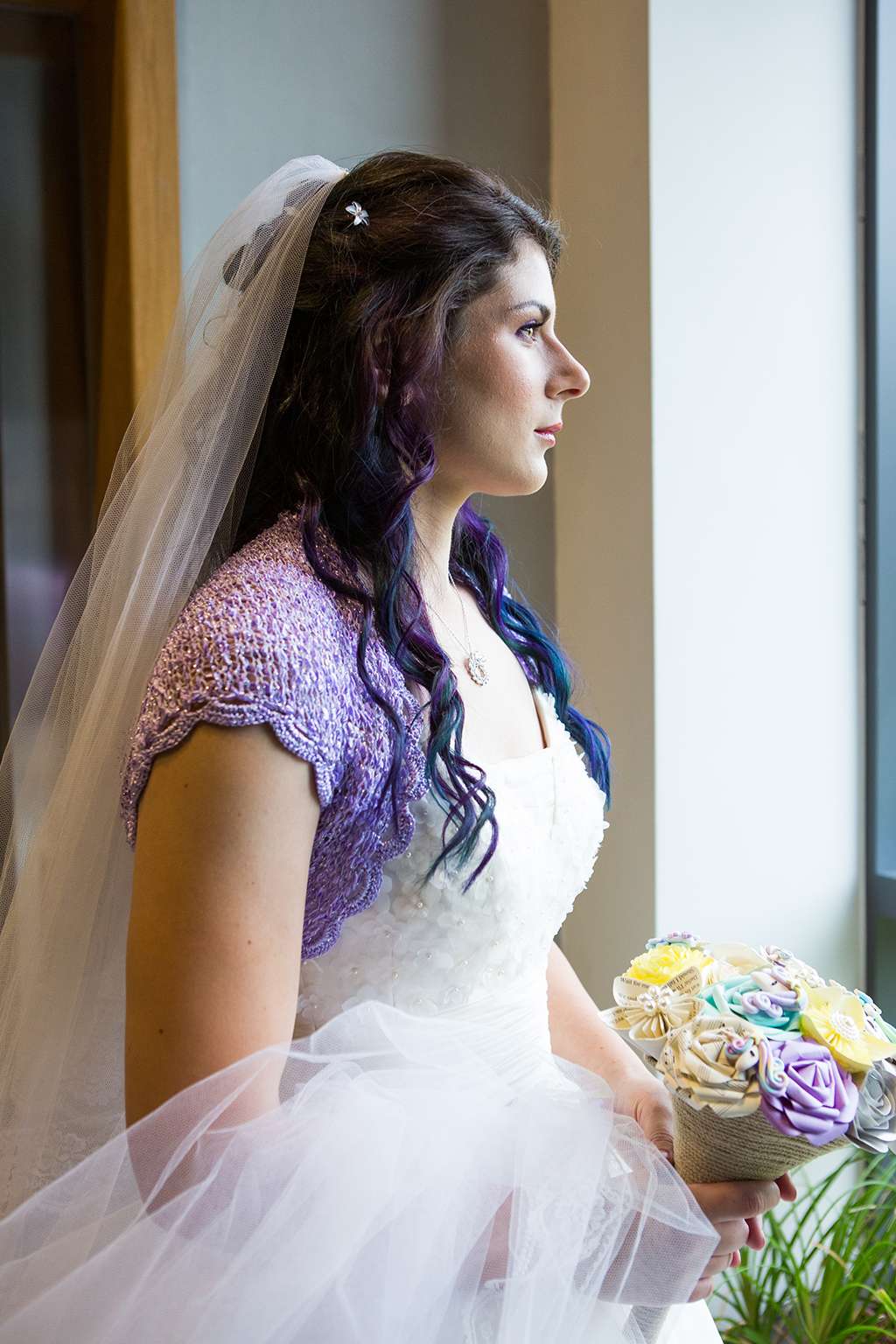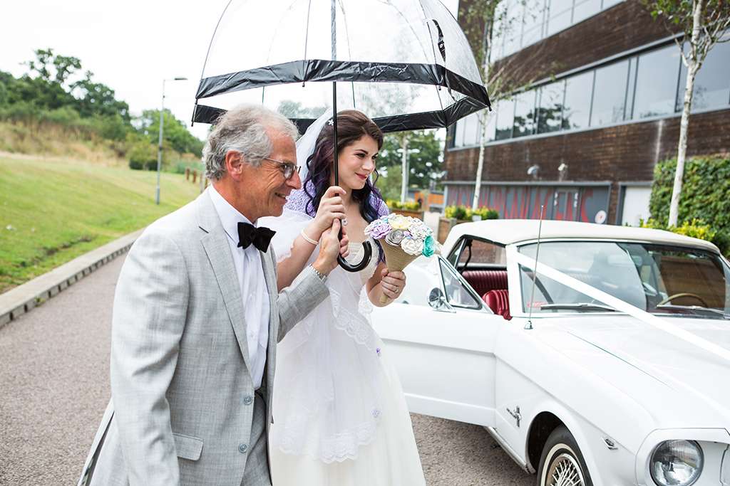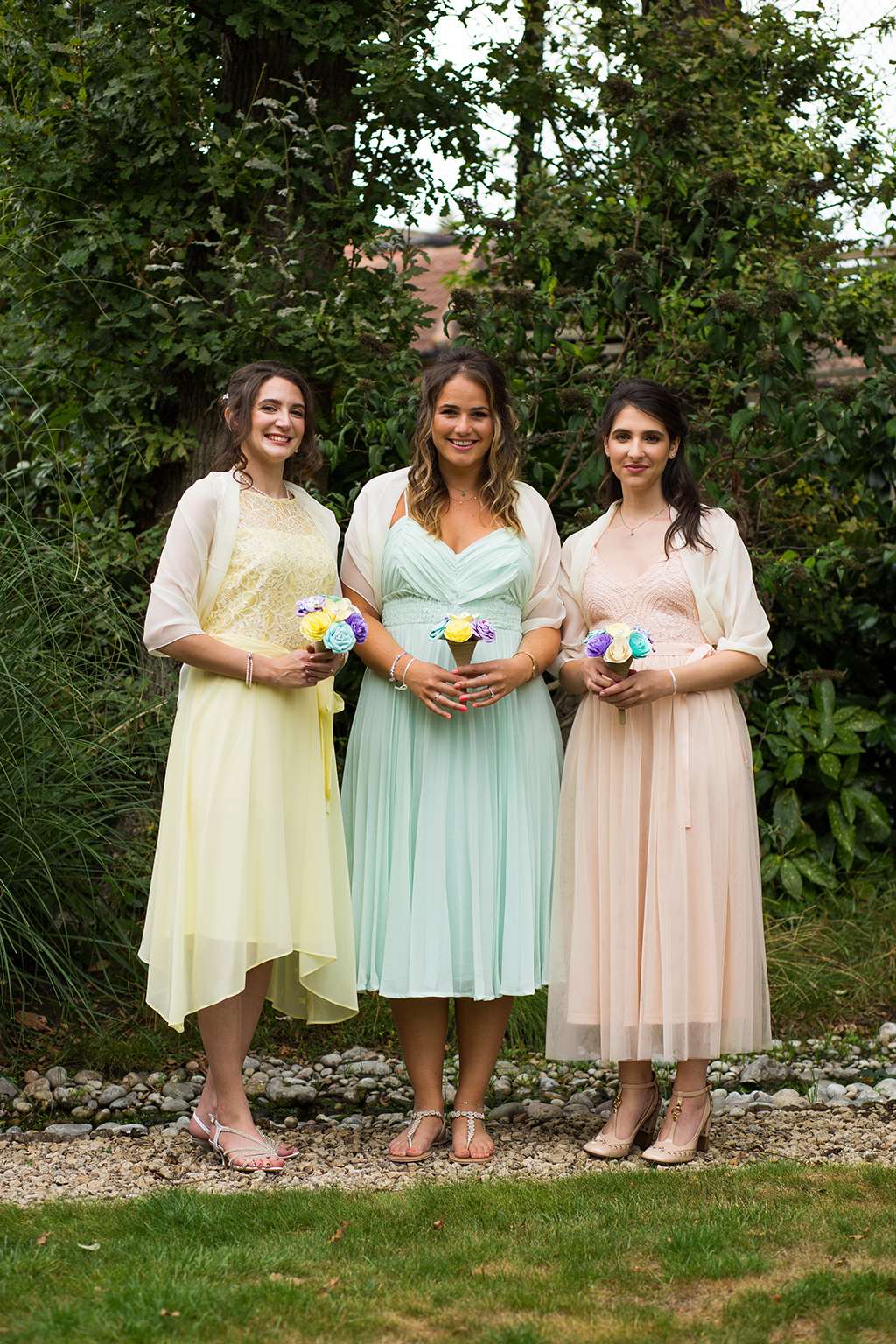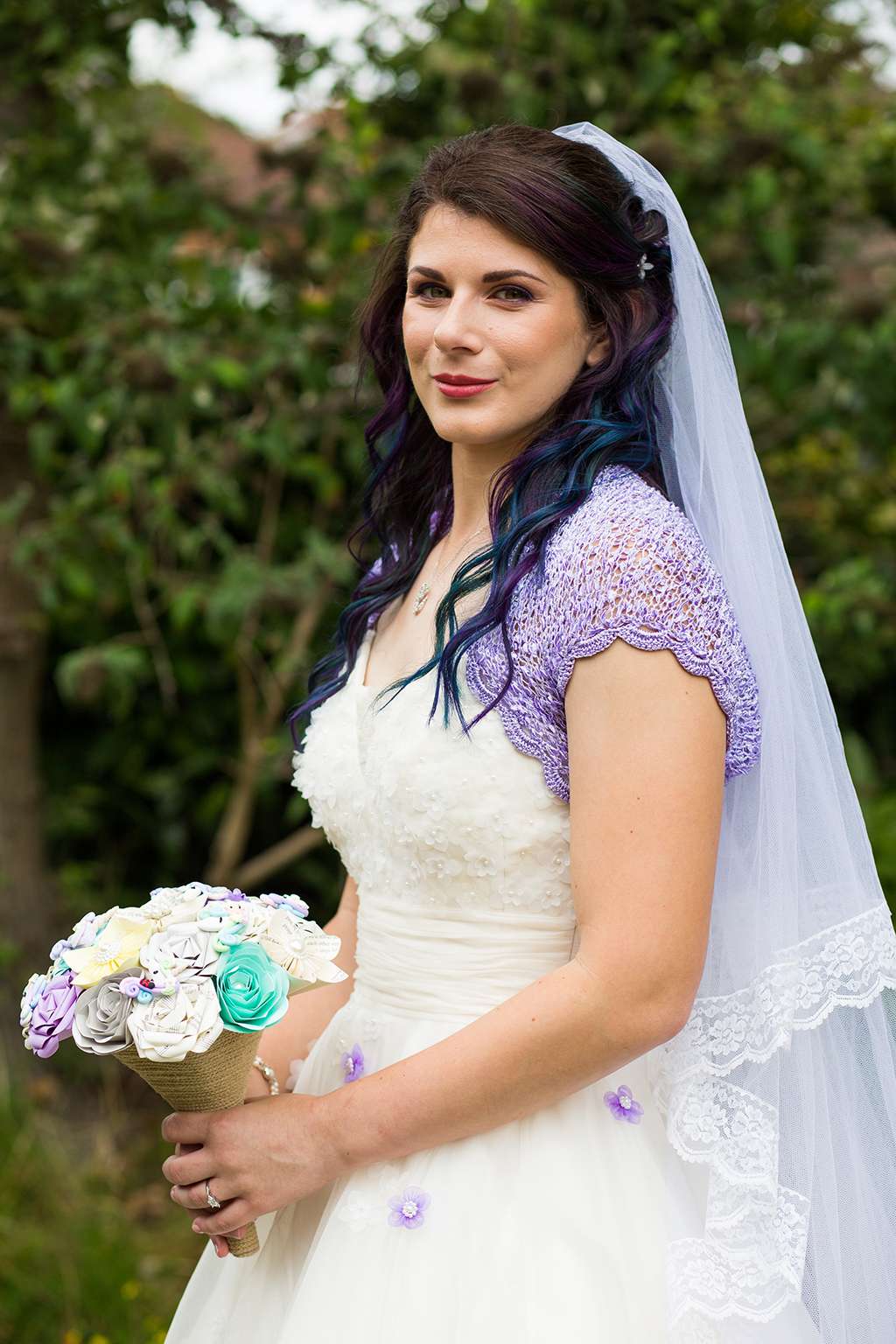 Emma chose a Fairy Goth Mother tea length dress, which she paired with Dolls Kill shoes for the ceremony, and Irregular Choice for the reception. She also wore her mum’s veil from her wedding in 1982, which was a personal touch. The bridesmaids wore a rainbow of pastel dresses from ASOS and she had her hair coloured especially for the day at Not Another Salon.