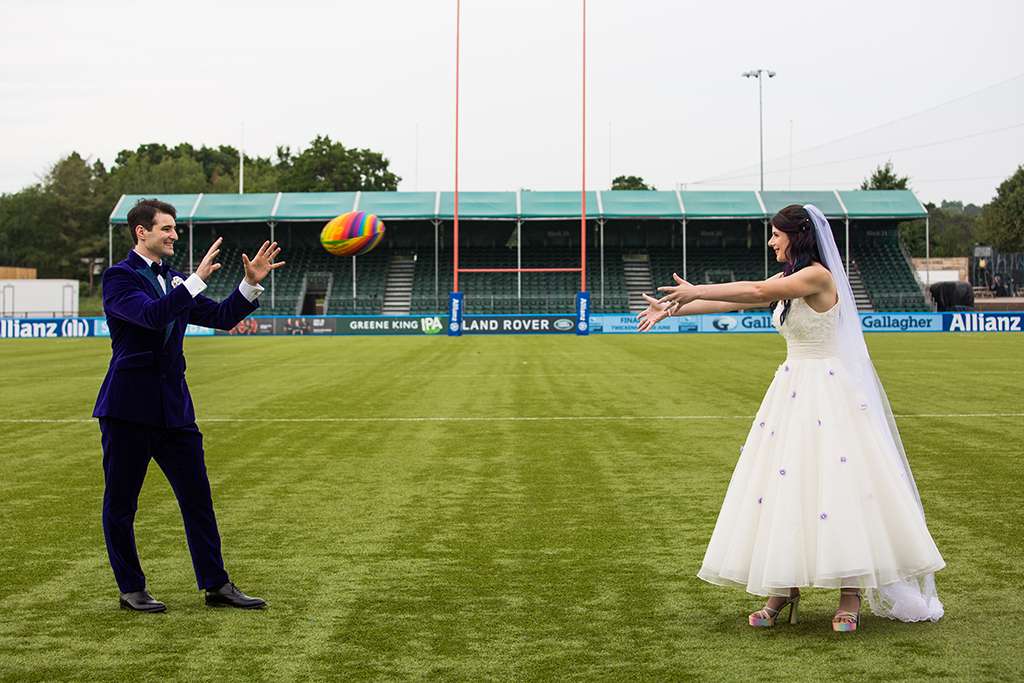 “Having my rainbow rugby ball with me for the photos on the pitch was a moment of pride for me, representing that I’m proudly LGBT+ and a challenge to those who erase Bi+ identities on the basis of a partner’s gender. Sela and I are proud of who we are and that we chose each other for the rest of our lives.”