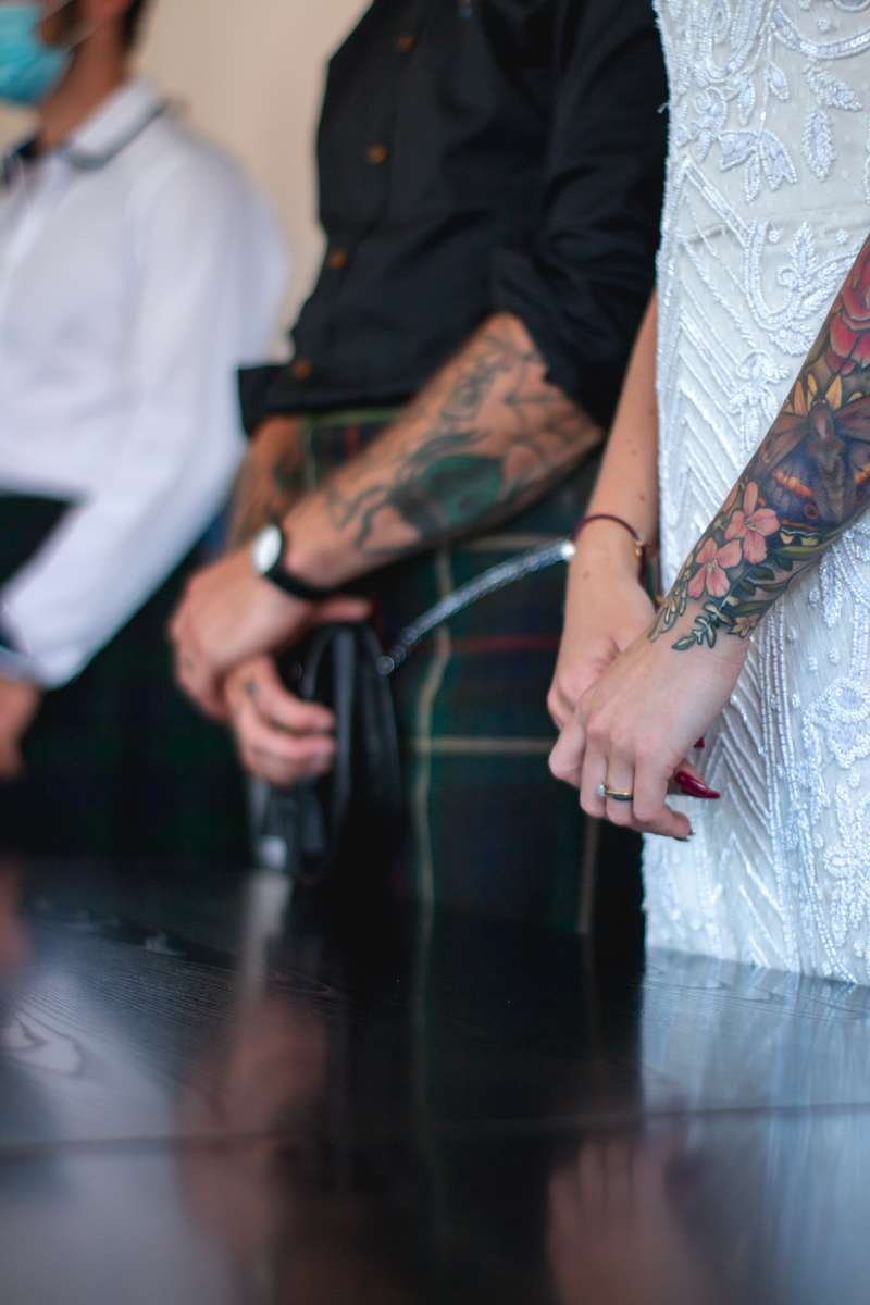 Even though they had a budget of only €3,500 and a pandemic to contend with, Demi and Eddie pulled out all the creative stops to make their July wedding the punk rock party of their dreams! Both working in the entertainment industry meant they were able to call in favours for a lot of things, their friend who owned the venue they chose gave them a great deal and the photos and video were also gifted by friends.