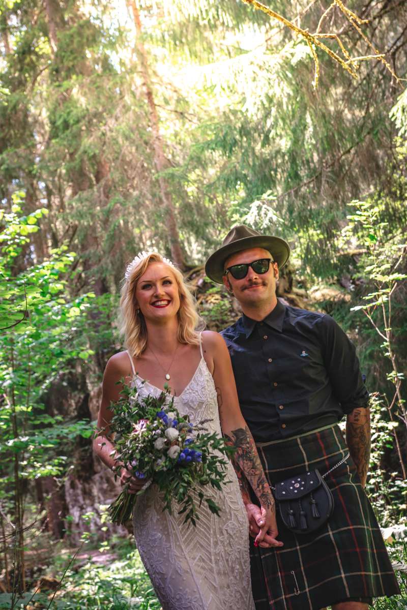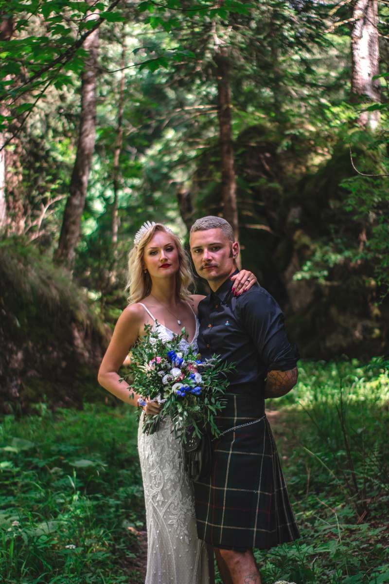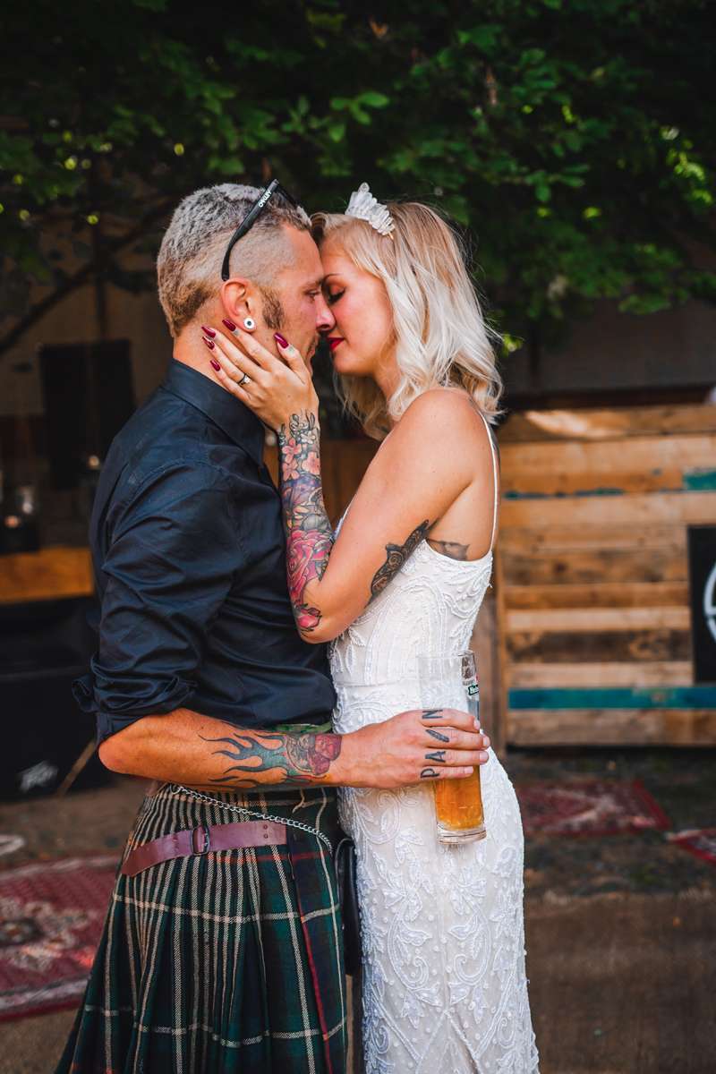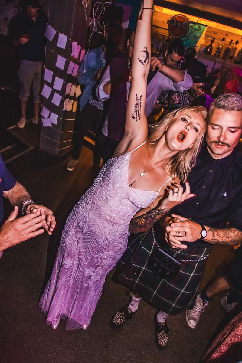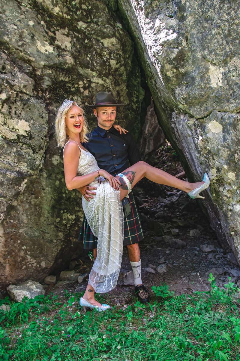 “We have known each other for 14 years and have been together for three”, Demi told us. “We share a passion for climbing, outdoor sports and all things punk so we wanted to bring these things into our day. Eddie proposed to me during a punk festival and we had our very own local punk band play us into the night.”