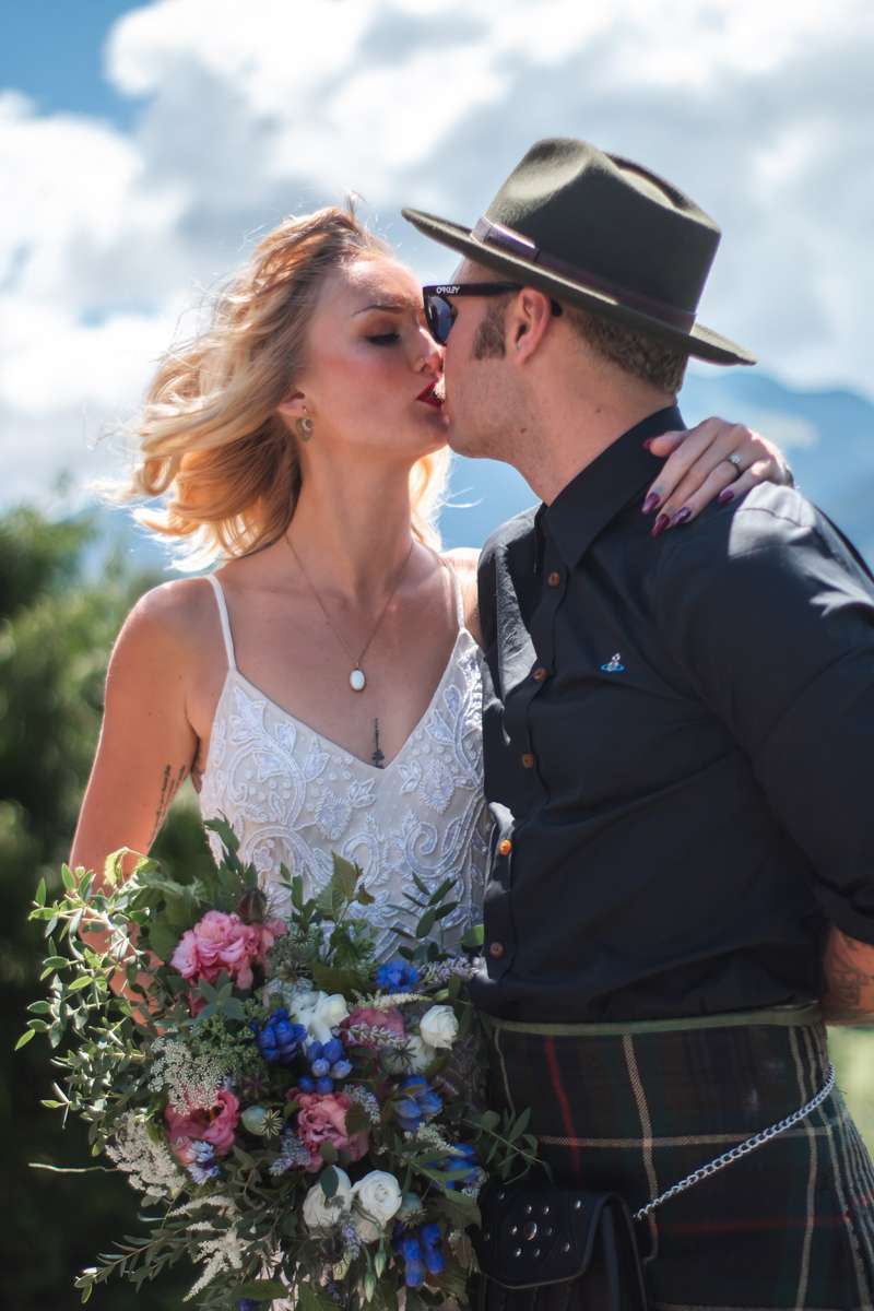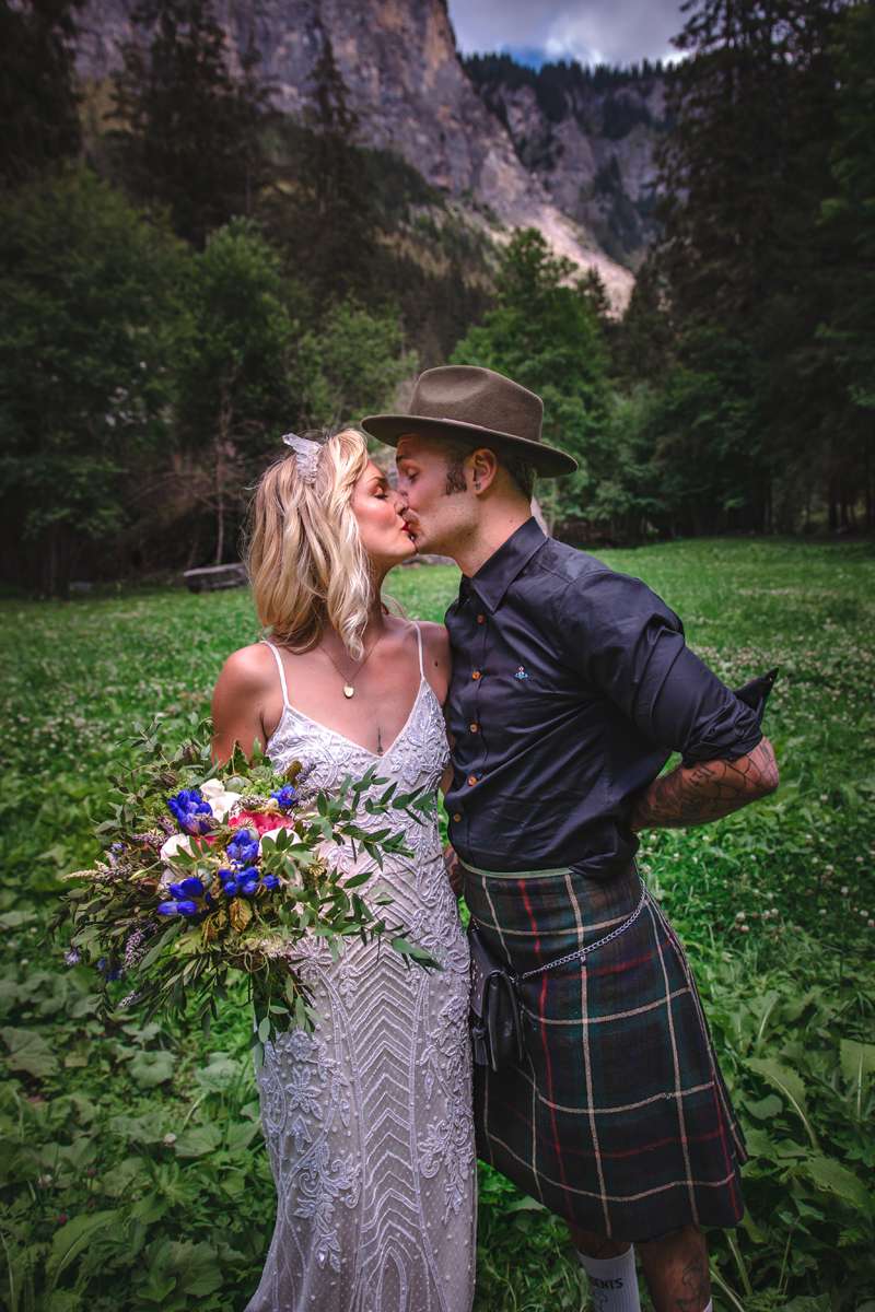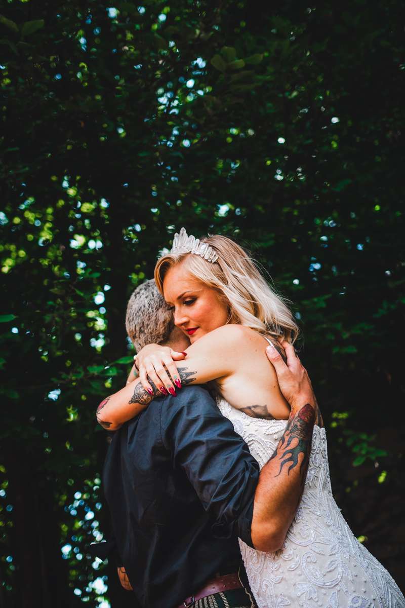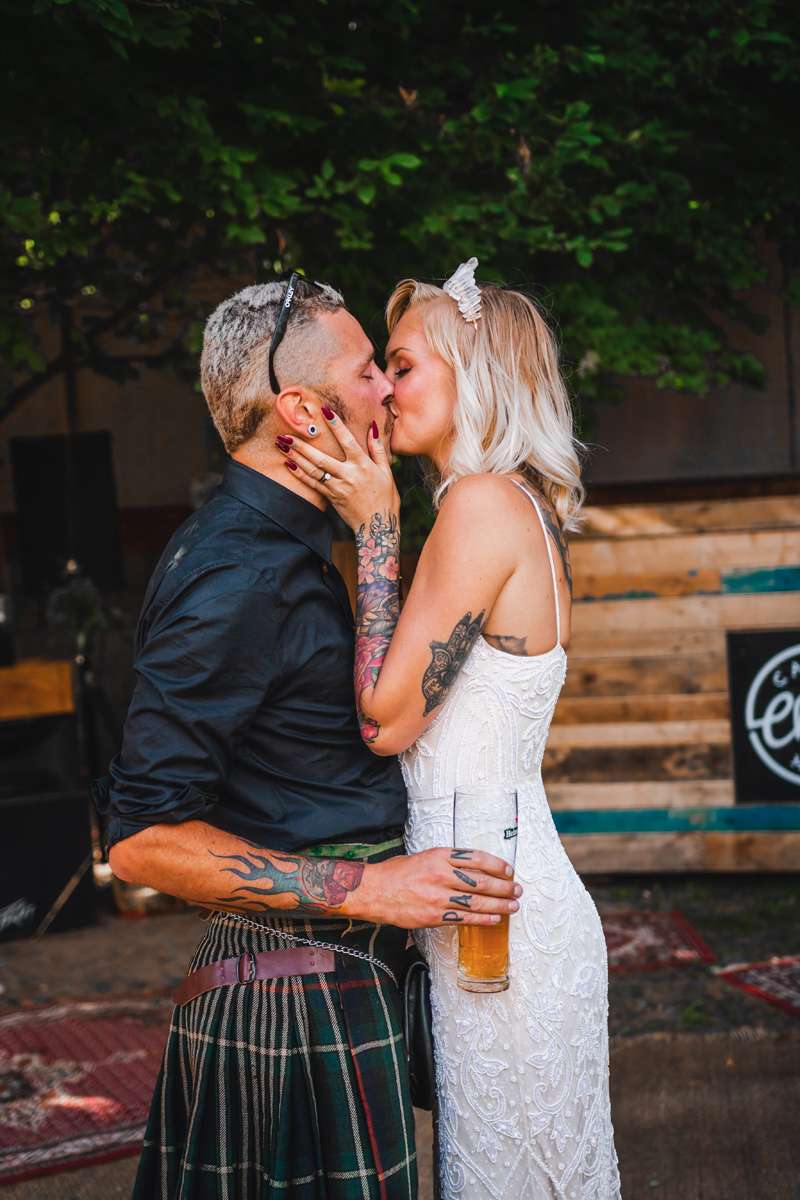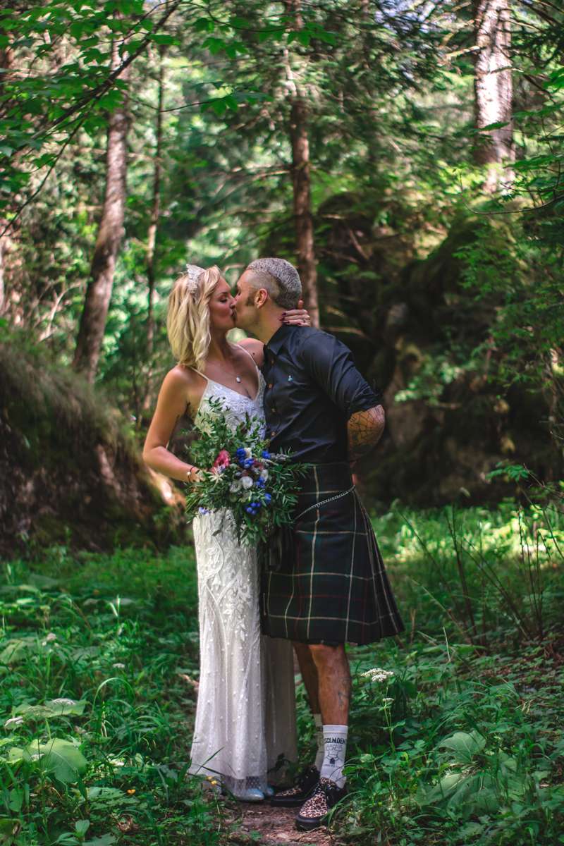“We have known each other for 14 years and have been together for three”, Demi told us. “We share a passion for climbing, outdoor sports and all things punk so we wanted to bring these things into our day. Eddie proposed to me during a punk festival and we had our very own local punk band play us into the night.”