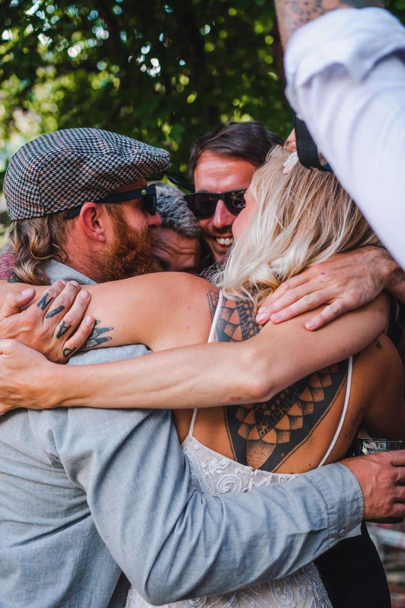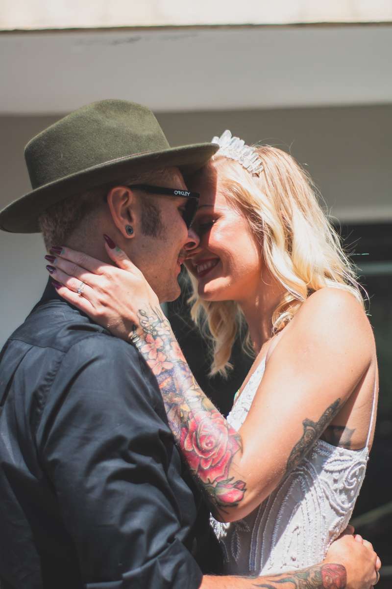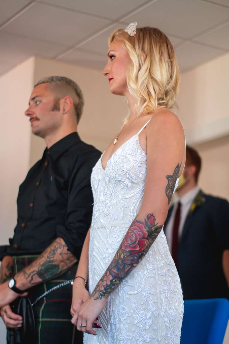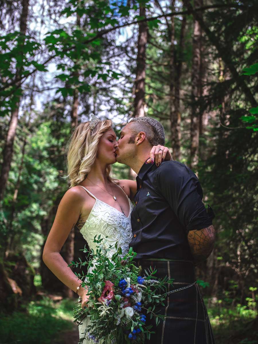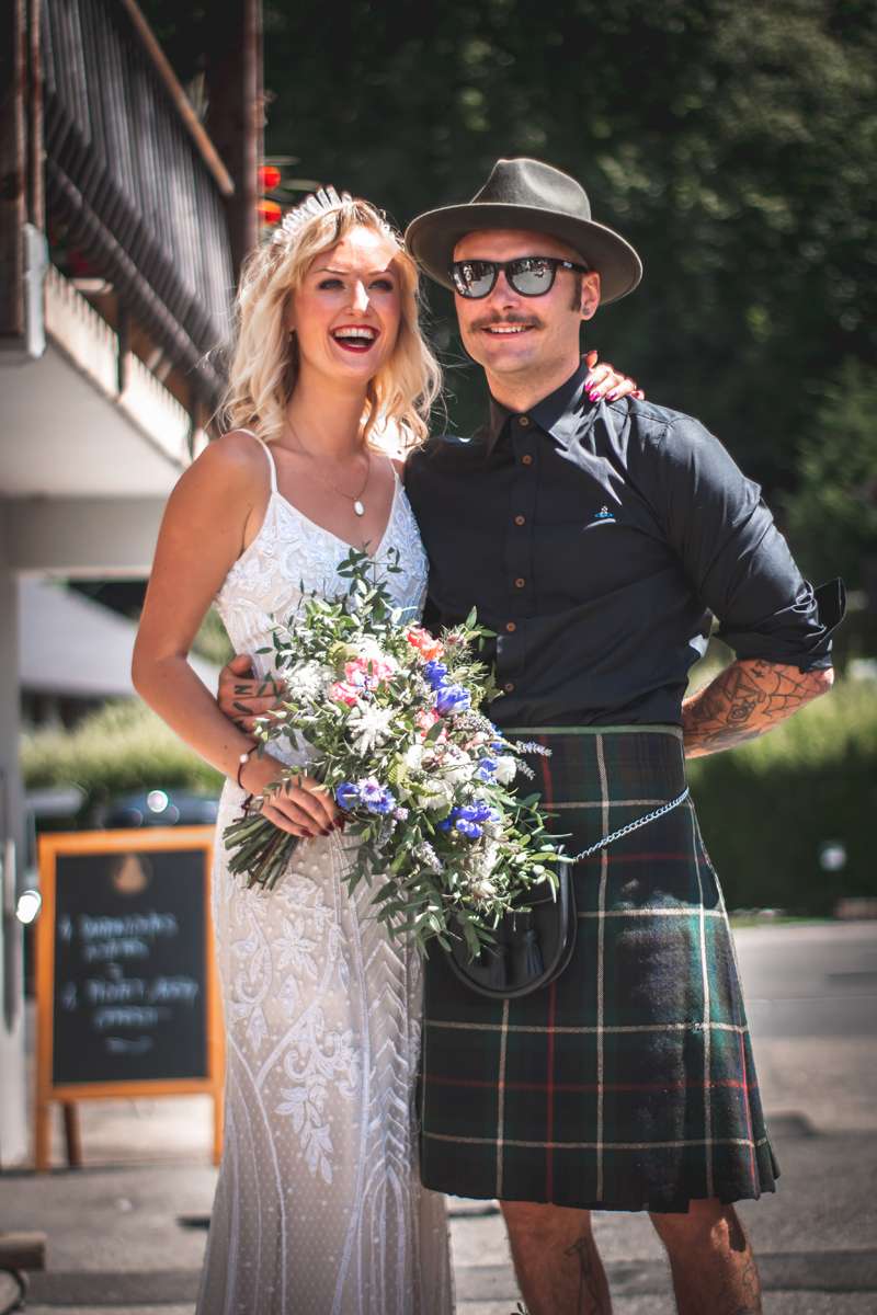“We have known each other for 14 years and have been together for three”, Demi told us. “We share a passion for climbing, outdoor sports and all things punk so we wanted to bring these things into our day. Eddie proposed to me during a punk festival and we had our very own local punk band play us into the night.”
