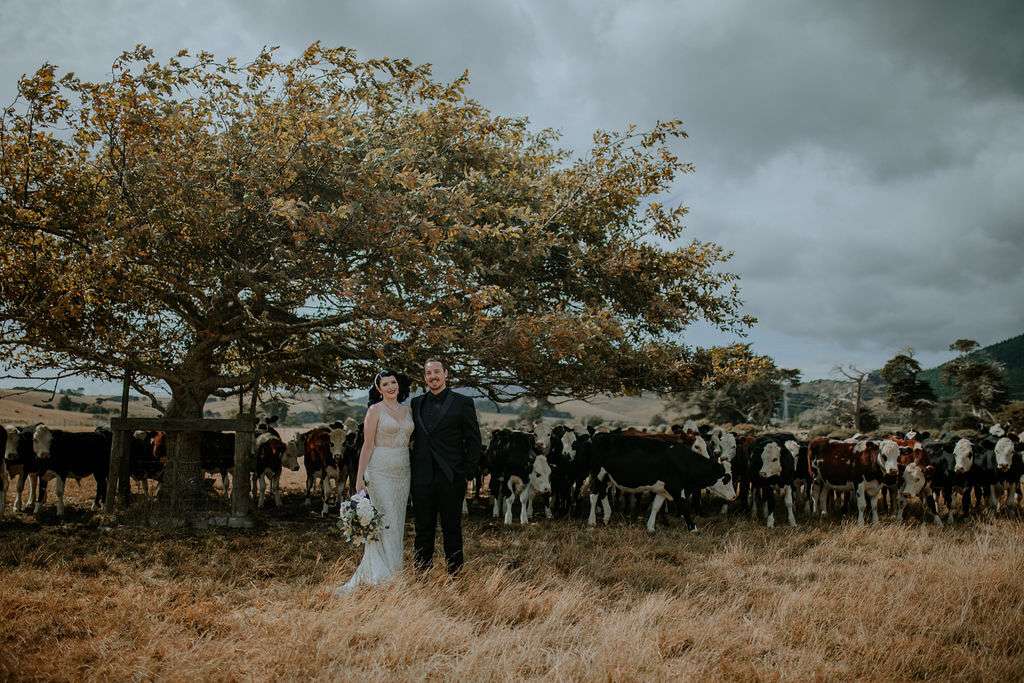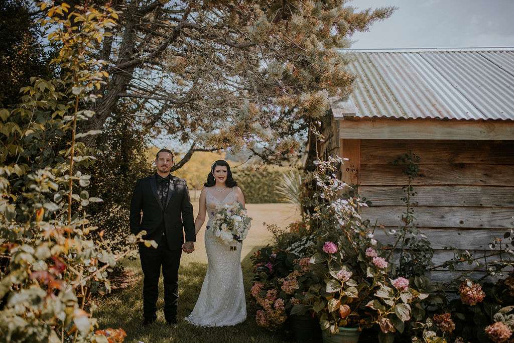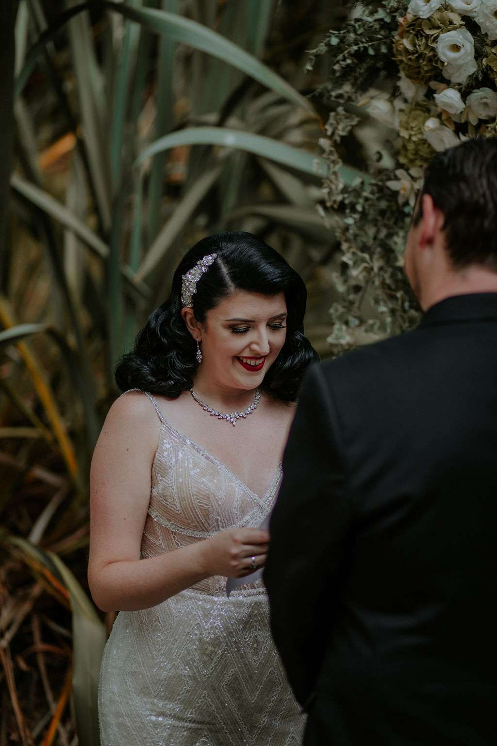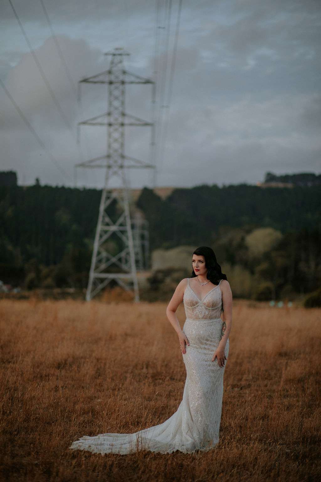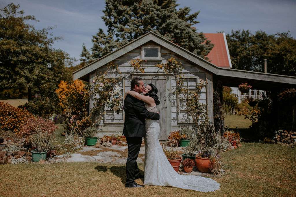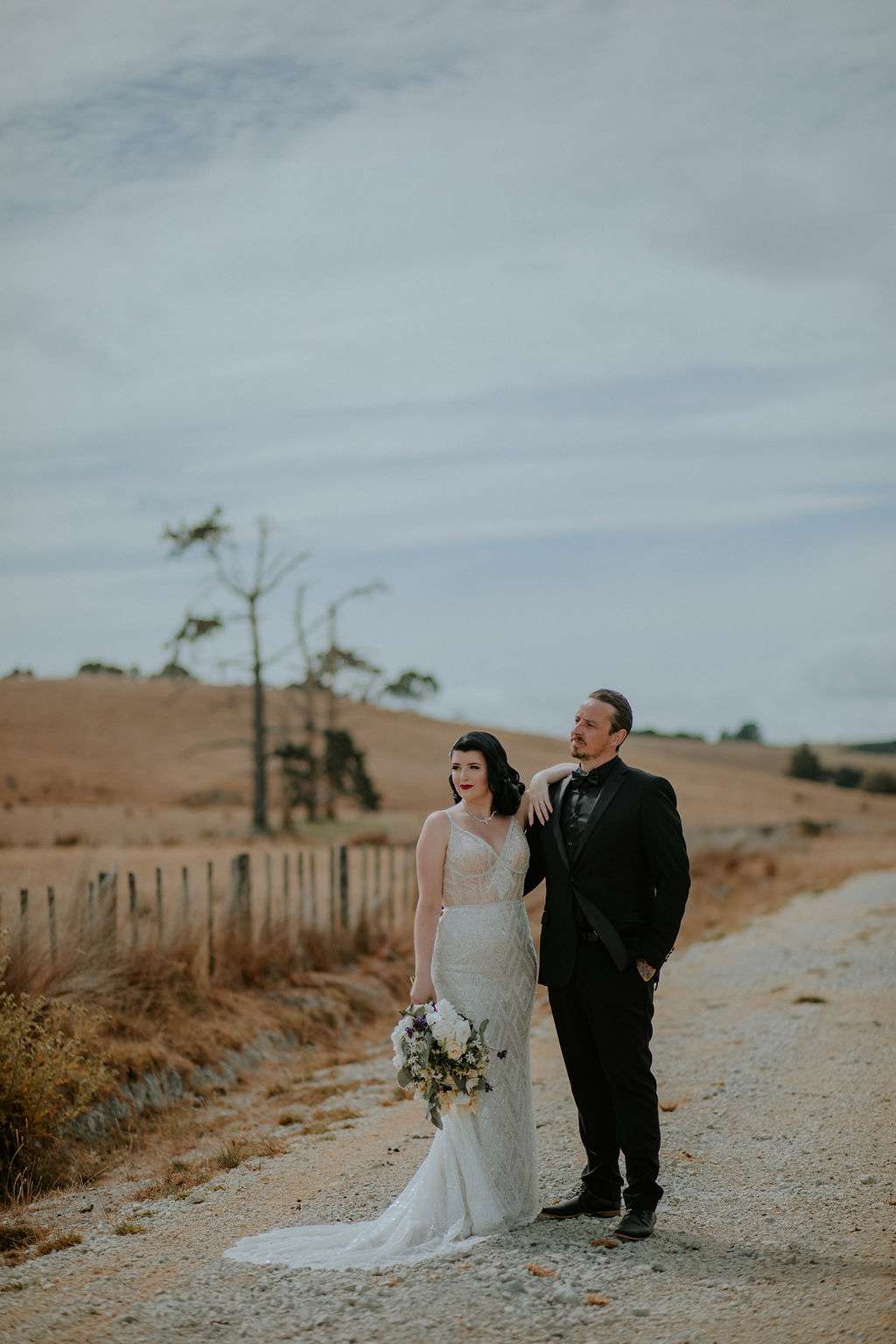 They began their planning by nailing their venue; after a few viewings, they settled on Waterfall Farm near Auckland, falling for it’s fairy-tale worthy ceremony area and the fact that the venue allowed food trucks. They hired a nearby homestead for the weekend as a base for the bridal party, and added bell tents to the grounds for those that wanted to stay over. They weren’t concerned about sticking to strict wedding traditions; seeing each other while getting ready and for a first look before the ceremony. “It was so nice to be together before the ceremony, it helped calm our nerves and made the whole day about us instead of being separated for part of the day. When it was time to put on my dress, we did a ‘first look’ out in the garden with no one else around which felt so special.”