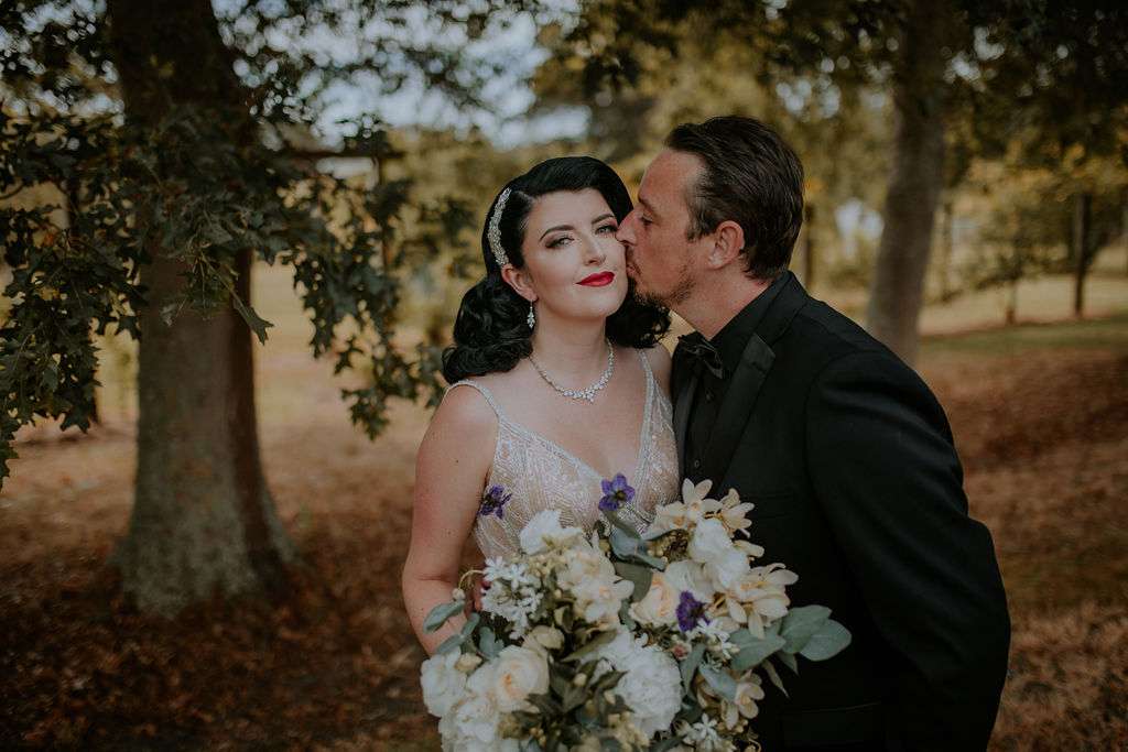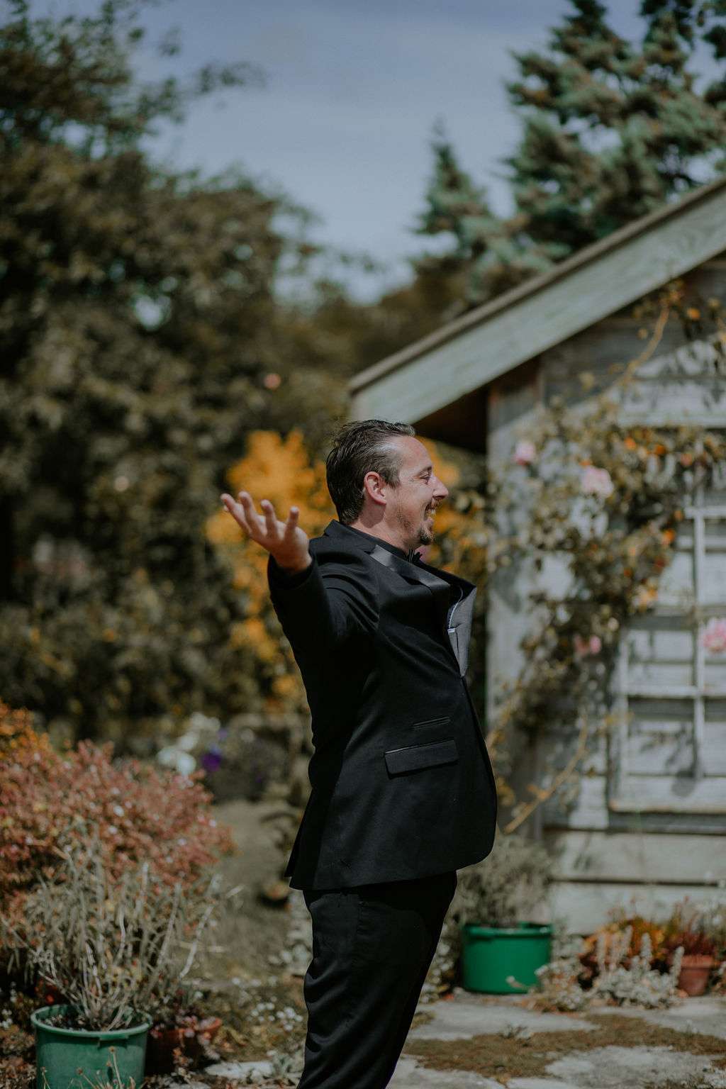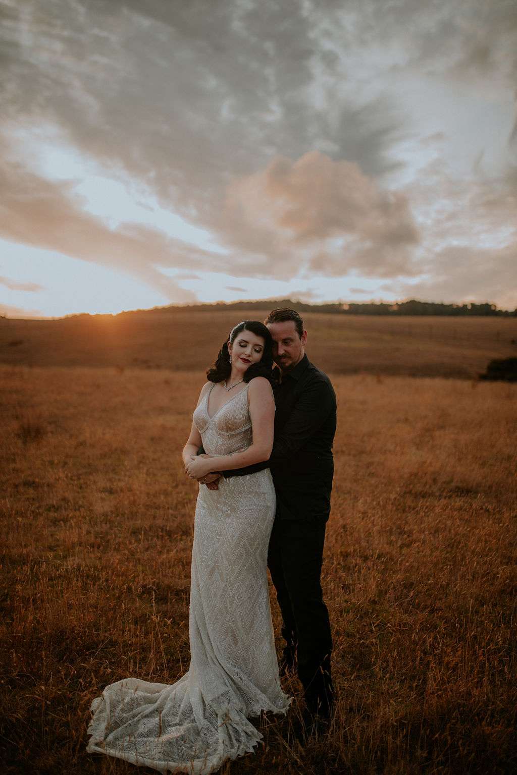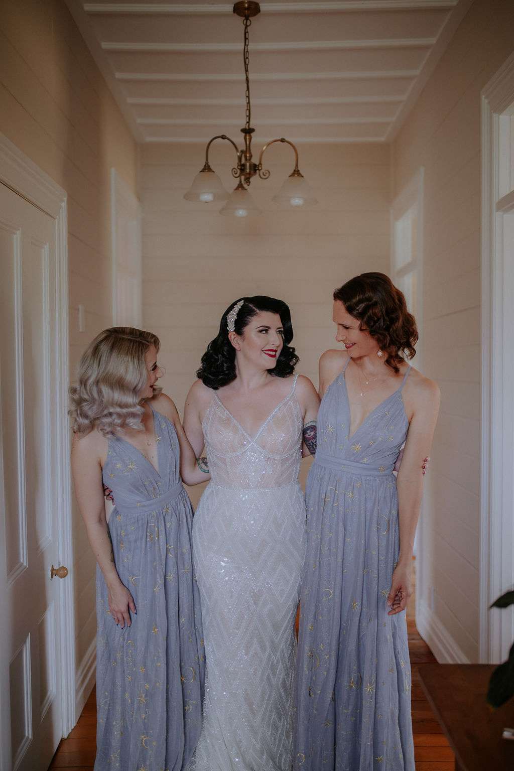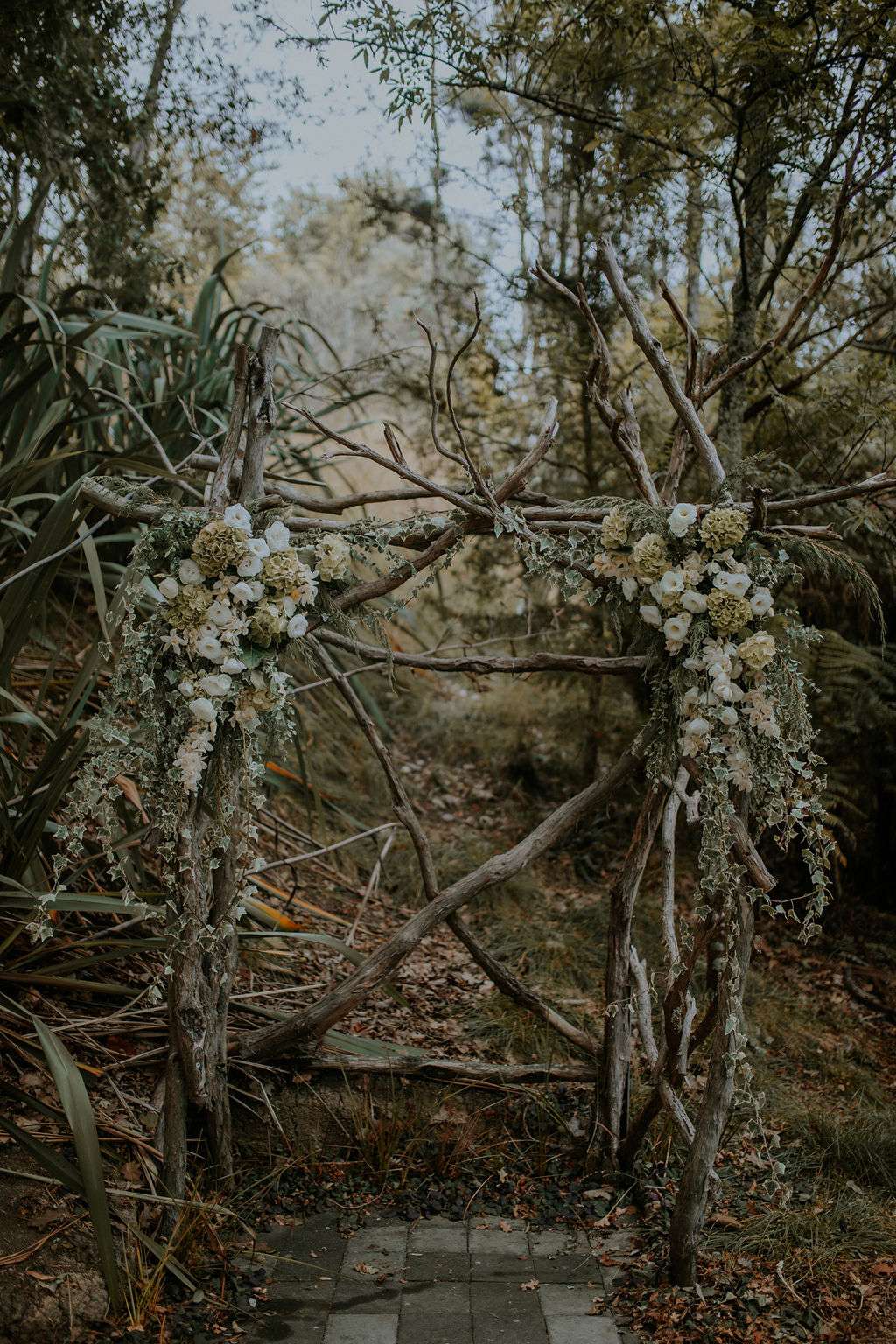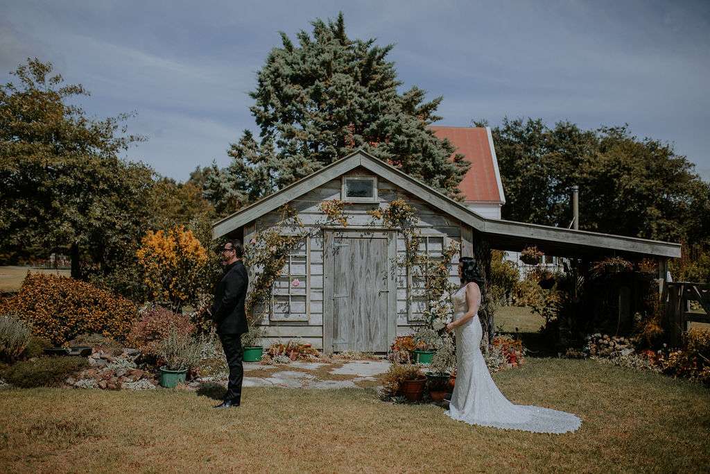 They began their planning by nailing their venue; after a few viewings, they settled on Waterfall Farm near Auckland, falling for it’s fairy-tale worthy ceremony area and the fact that the venue allowed food trucks. They hired a nearby homestead for the weekend as a base for the bridal party, and added bell tents to the grounds for those that wanted to stay over. They weren’t concerned about sticking to strict wedding traditions; seeing each other while getting ready and for a first look before the ceremony. “It was so nice to be together before the ceremony, it helped calm our nerves and made the whole day about us instead of being separated for part of the day. When it was time to put on my dress, we did a ‘first look’ out in the garden with no one else around which felt so special.”