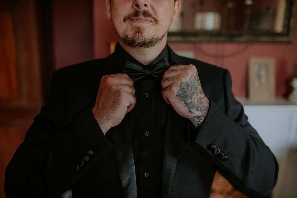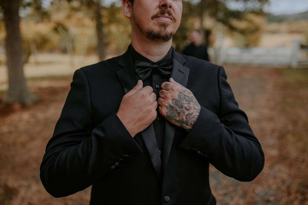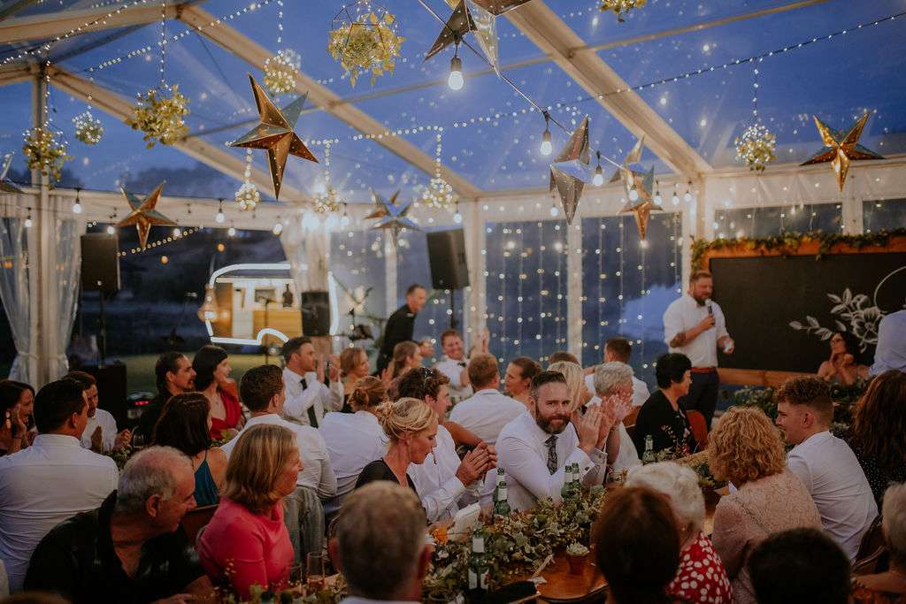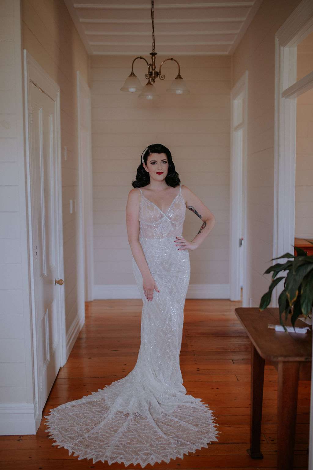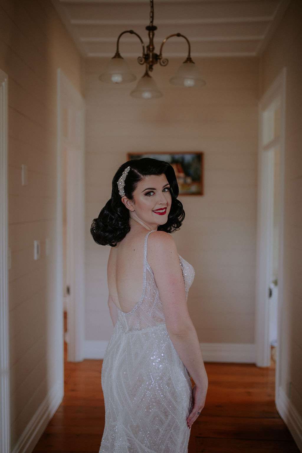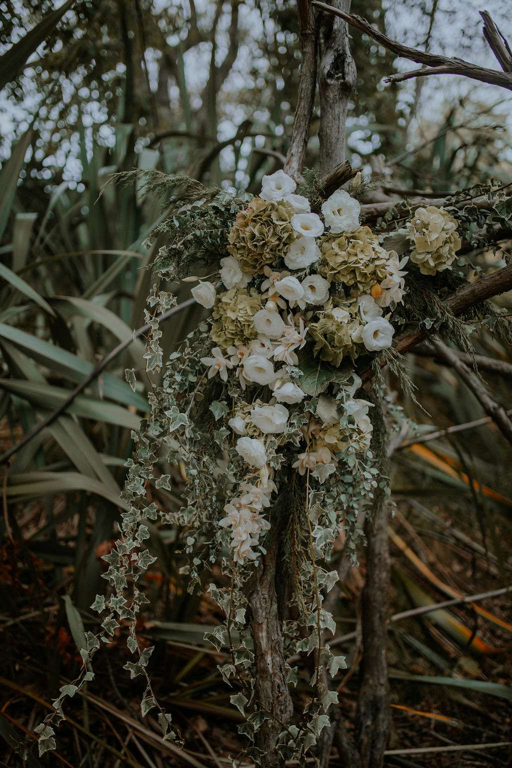 They began their planning by nailing their venue; after a few viewings, they settled on Waterfall Farm near Auckland, falling for it’s fairy-tale worthy ceremony area and the fact that the venue allowed food trucks. They hired a nearby homestead for the weekend as a base for the bridal party, and added bell tents to the grounds for those that wanted to stay over. They weren’t concerned about sticking to strict wedding traditions; seeing each other while getting ready and for a first look before the ceremony. “It was so nice to be together before the ceremony, it helped calm our nerves and made the whole day about us instead of being separated for part of the day. When it was time to put on my dress, we did a ‘first look’ out in the garden with no one else around which felt so special.”