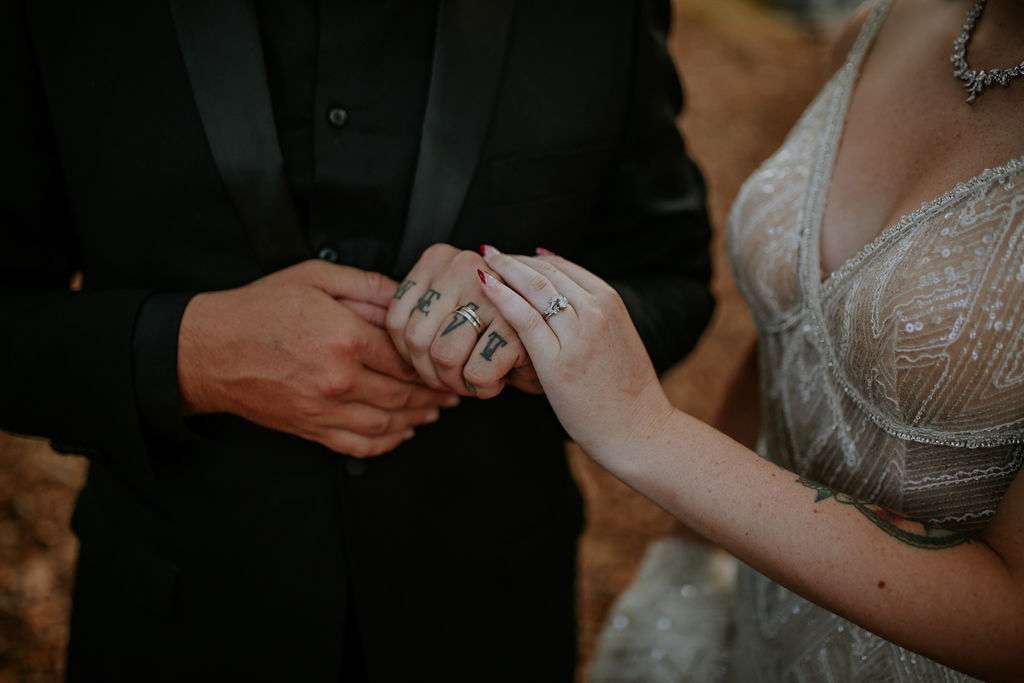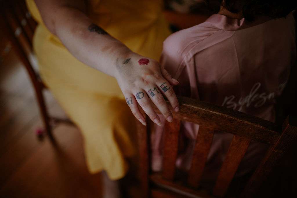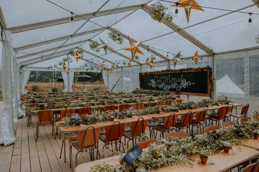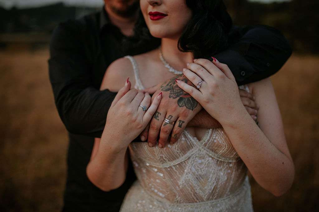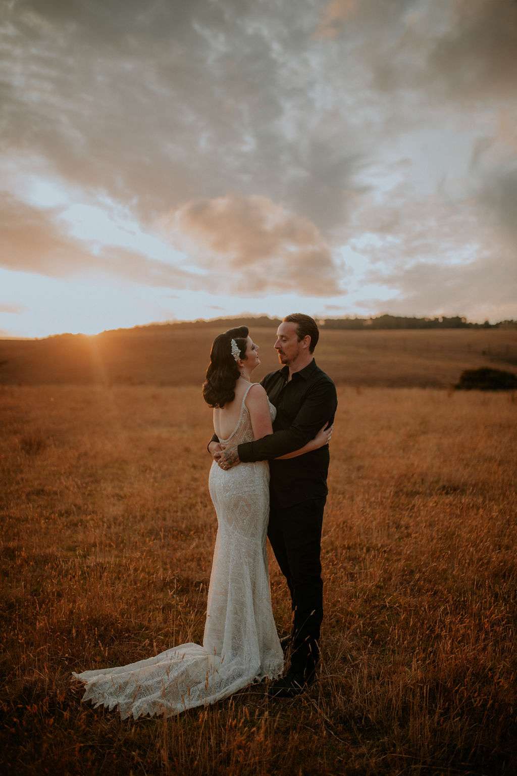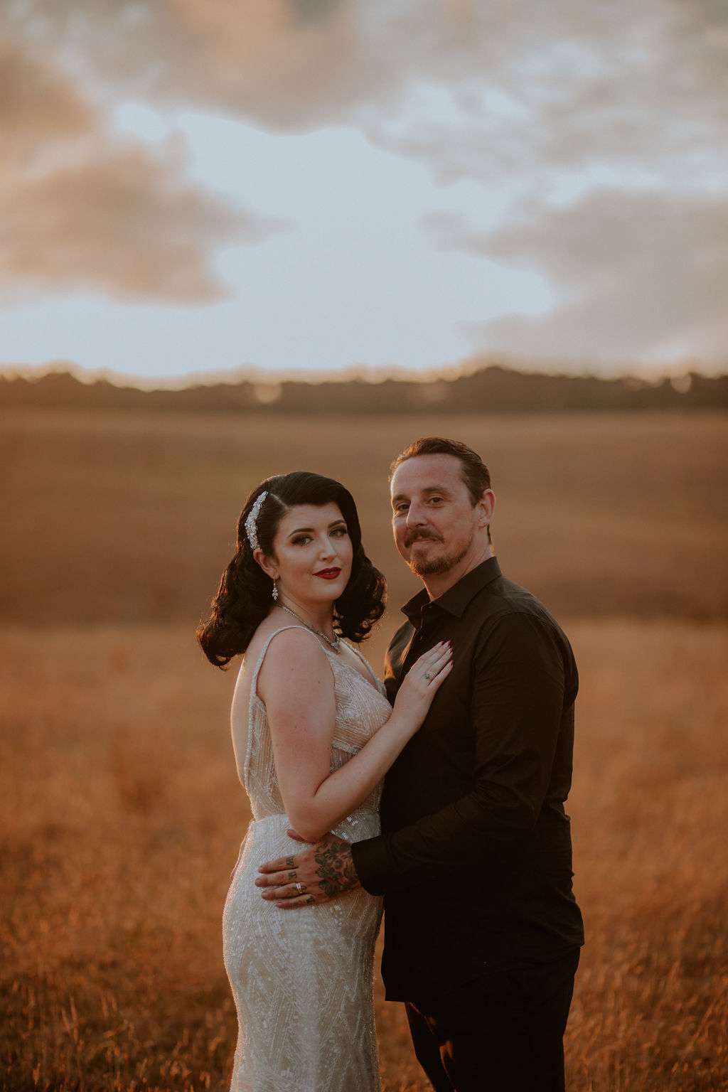 It was a very DIY-heavy wedding, and the couple organised everything from the food trucks, the band and the venue themselves. They made the venue, the groom’s mum decorated and did the florals, and the bit that no-one thinks about when it comes to a DIY-wedding; the takedown the next day. “We loved how many friends and family wanted to help us with their awesome, unique talents on the day. My friend got her celebrants license so she could officiate for us. Another did our hair and makeup, and sang and played guitar as my dad walked me down the aisle. We were very lucky that everyone pitched in to help, and it made it that bit more special.”