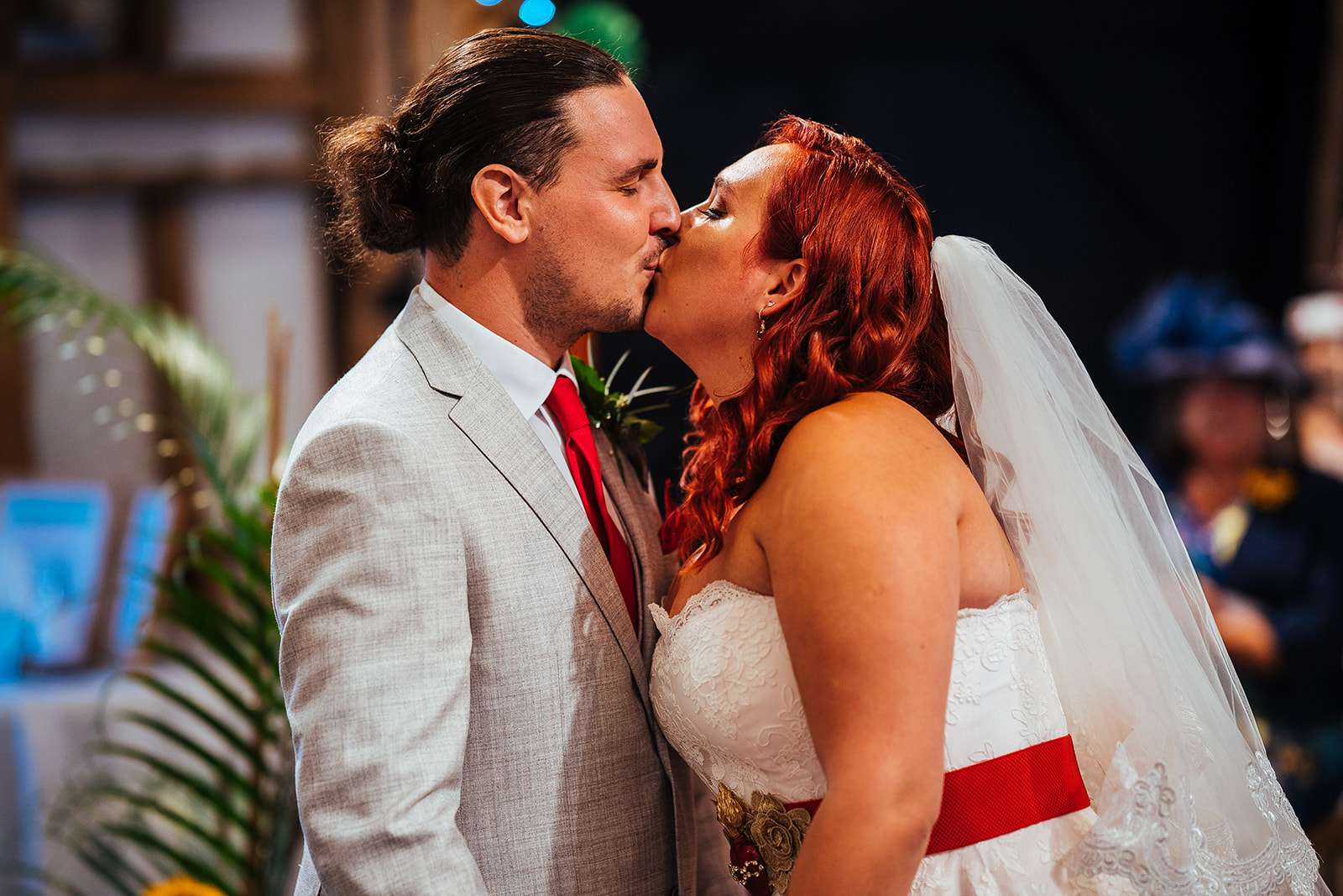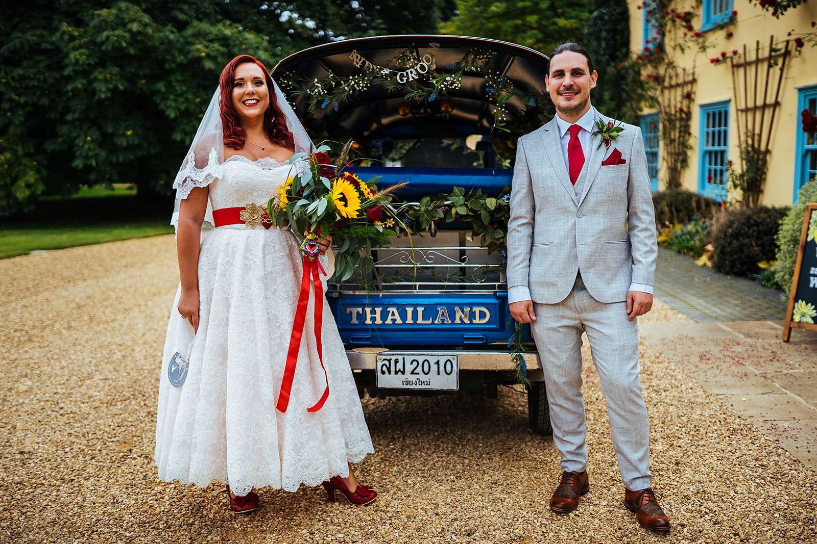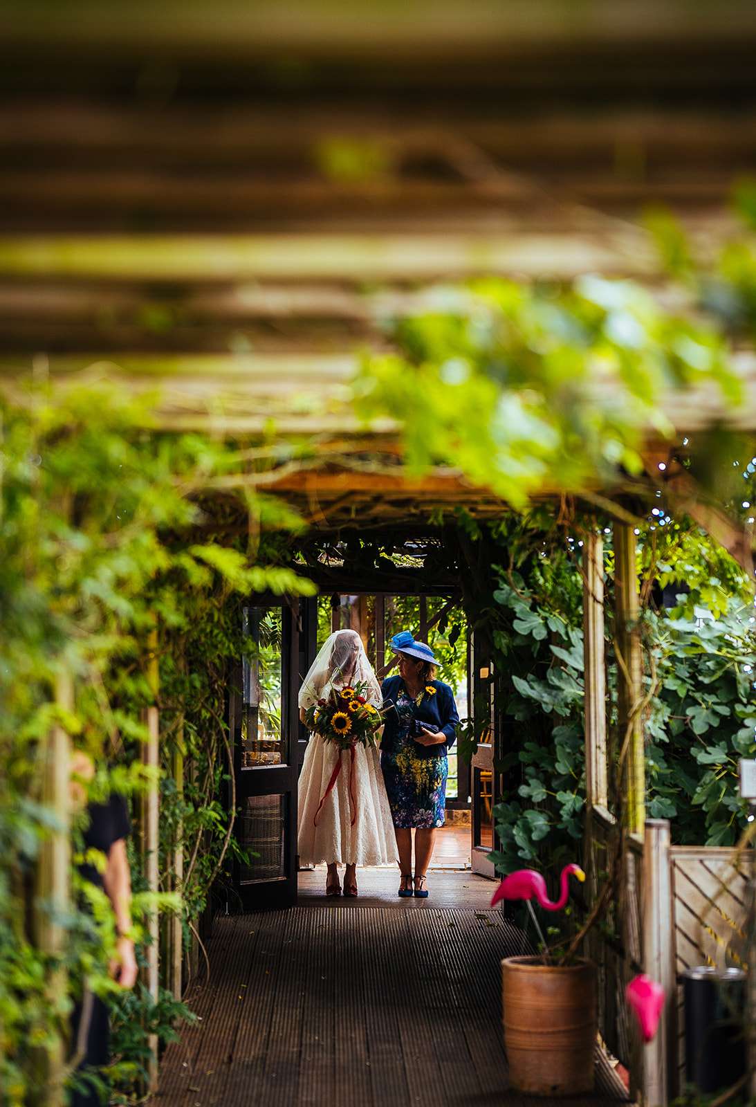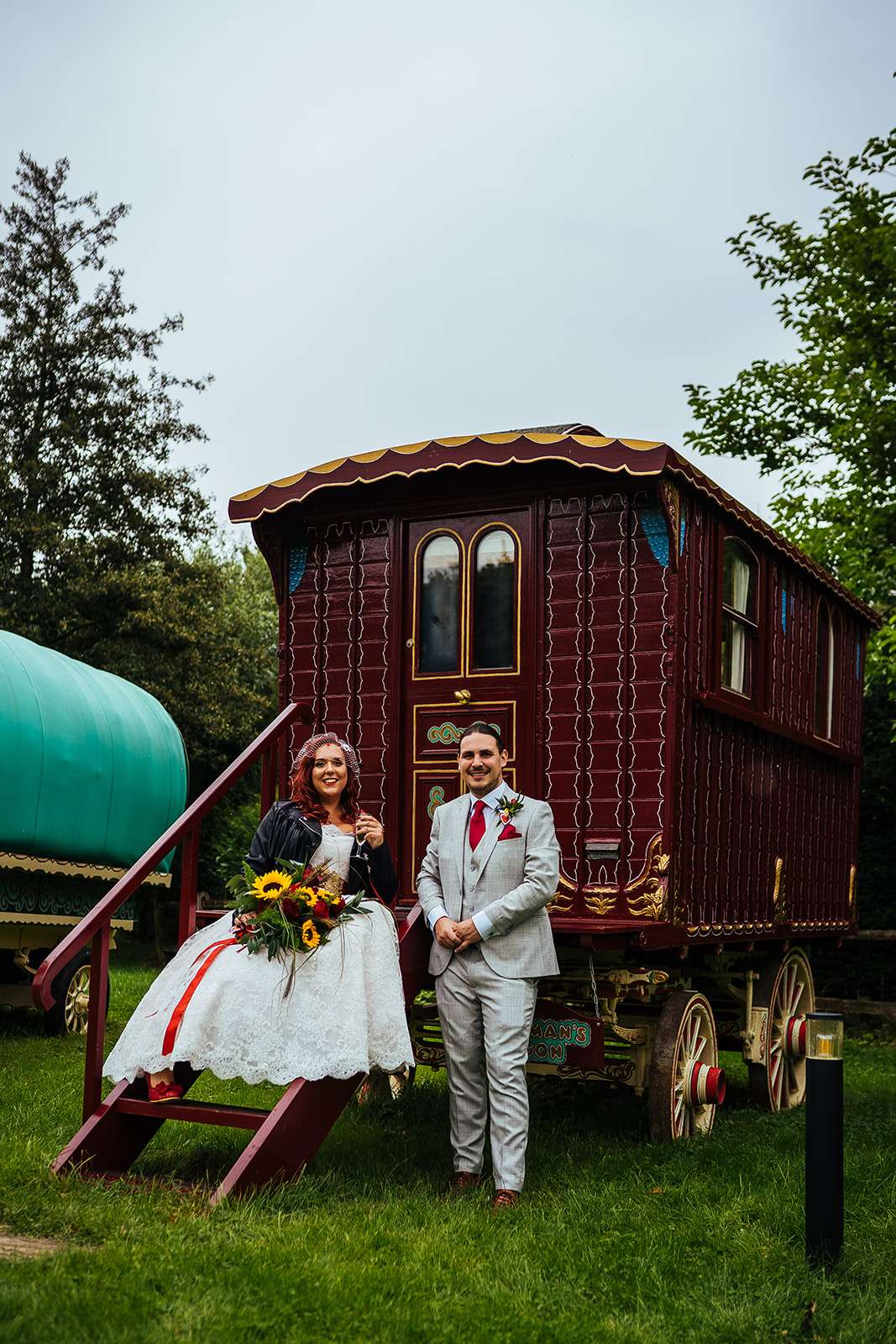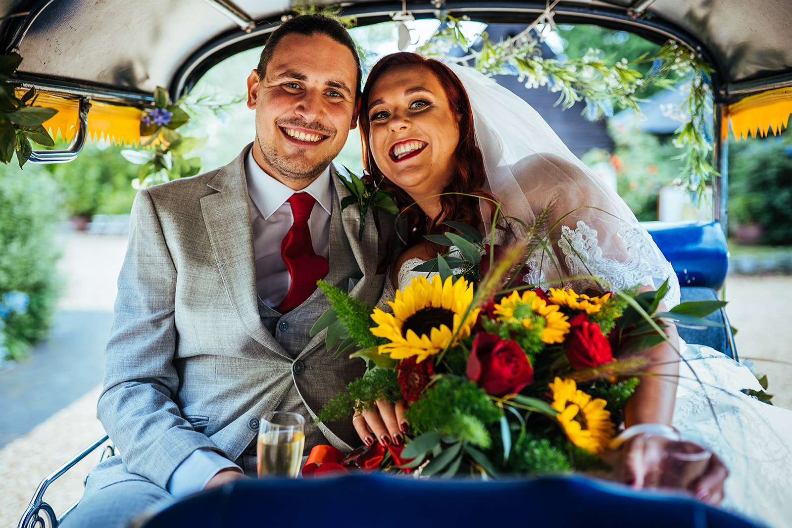 Even their new married name got the custom treatment – they combined their surnames to create a new, double-barrelled one, and then based their custom cocktails on it! ‘The Berry-Valentine’, which was a mix of Prosecco and Chambord and was garnished with a heart shaped strawberry and had a love heart pegged onto it. They had a ’Til Death Do Us Party’ tequila shot with plenty of tabasco and a vegan worm sweet in the bottom, all served in a skull shot glass, of course. The spice theme continued even down to Sarah’s bouquet, which as well as classic red roses and sunflowers as a reminder of her childhood, included chillis as an homage to Alex who grows chilli plants indoors!