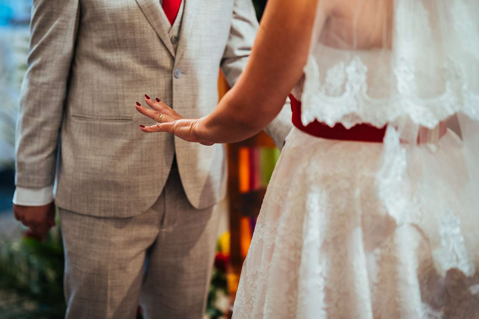 Due to restrictions, they weren’t allowed any personal readings or vows at their civil ceremony – it had to be kept as short as possible. “We exchanged rings and said our ‘i dos’, but the ceremony can’t have been any longer than 15 minutes! We exited together to Love You To Death by Type O Negative – the only personal touch we managed to sneak in!” Restrictions also meant they couldn’t have a band or DJ for their reception, so had to rely on a Spotify playlist of all their favourite songs.