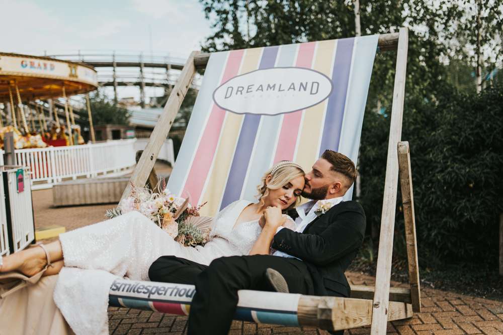 Shot by Pearce Wedding Photography, the team made the most of the amazing backdrops that Dreamland has to offer, showcasing their iconic rides and slide, and took the tablescape outside to feature the stunning Hollywood-style Dreamland sign to it’s fullest potential.