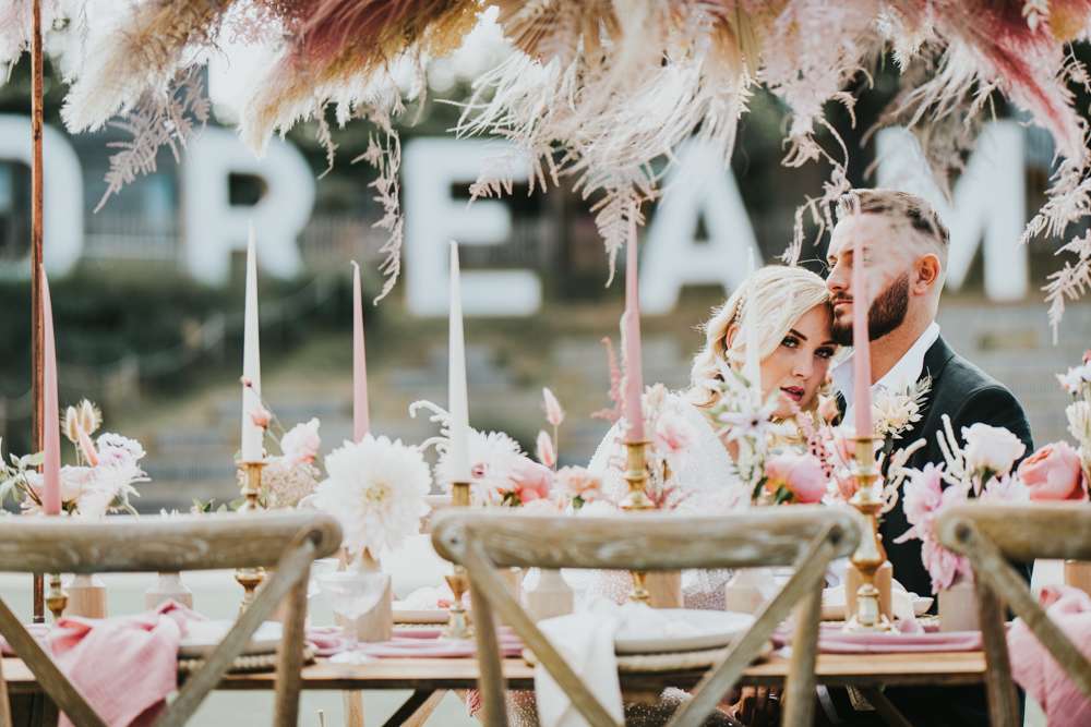 Wedding planner Illy Goodall of Illy Elizabeth Weddings dreamed up a summer pastel meets floral bohemian theme, combining popping pastel vibes with dried floral clouds by Star + The Moon to compliment the venue itself for a modern take on the amusement park theme.