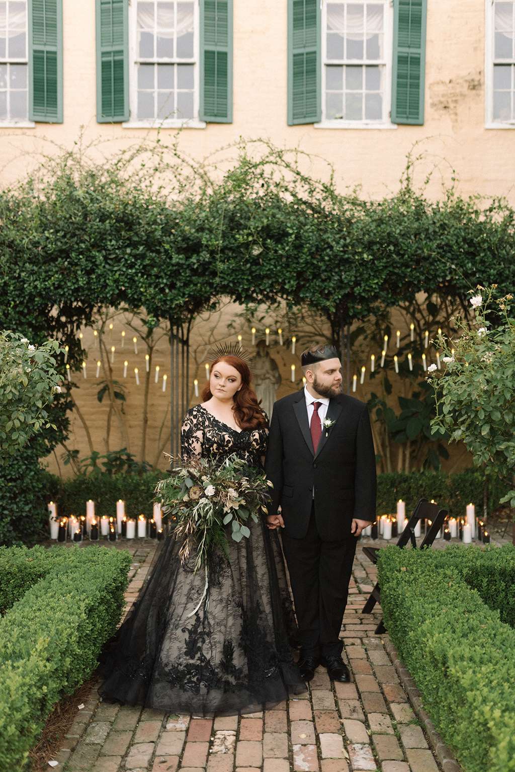 Chase and Ellen met while performing together in a production of The Addams Family Musical at Theatre Memphis, so it’s no surprise that their wedding had a dark and moody theme! “Our mutual love of theatre meets a gothic horror aesthetic inspired our October wedding day,” the bride told us. “Think Interview With a Vampire meets American Horror Story: Coven and you’re halfway there!”