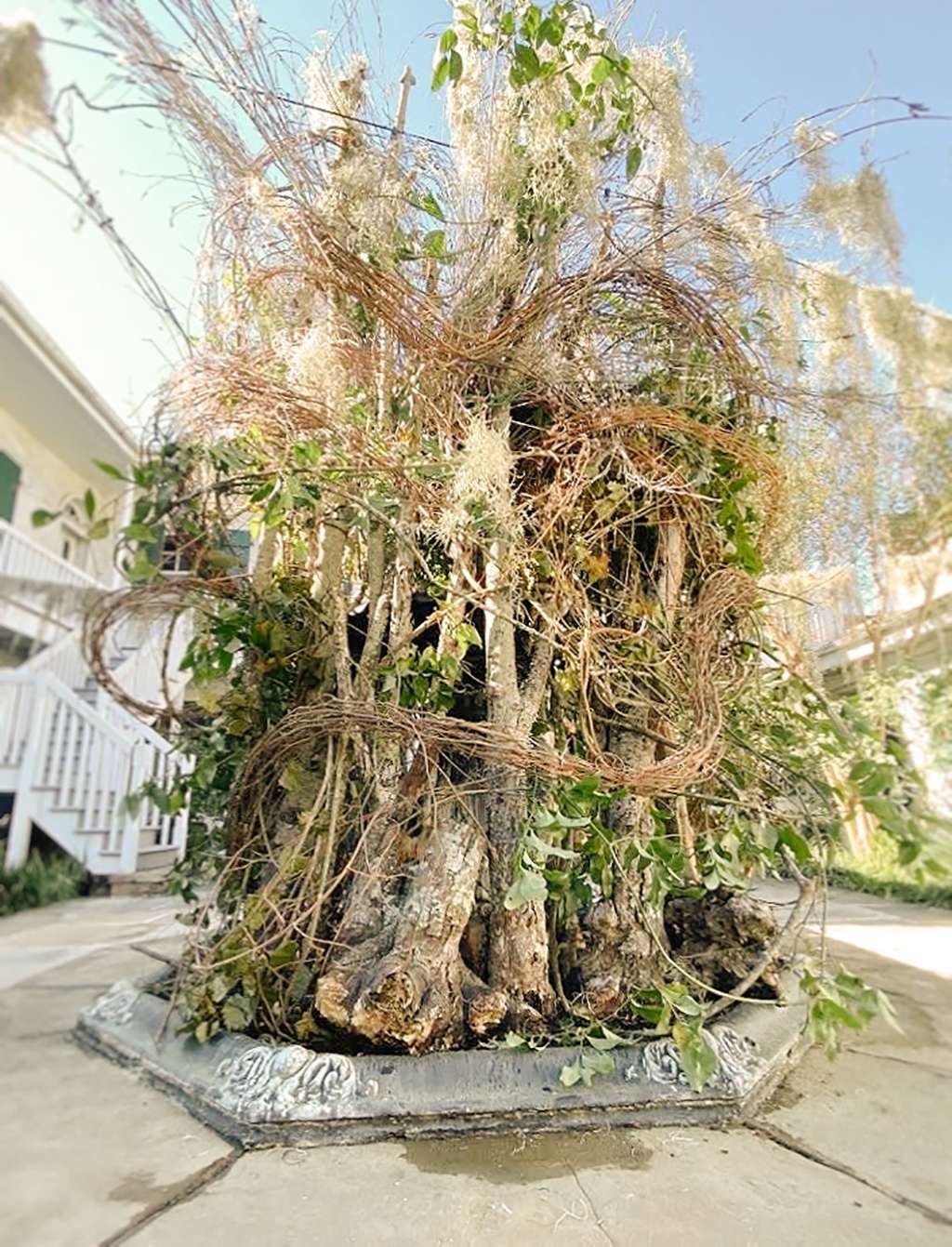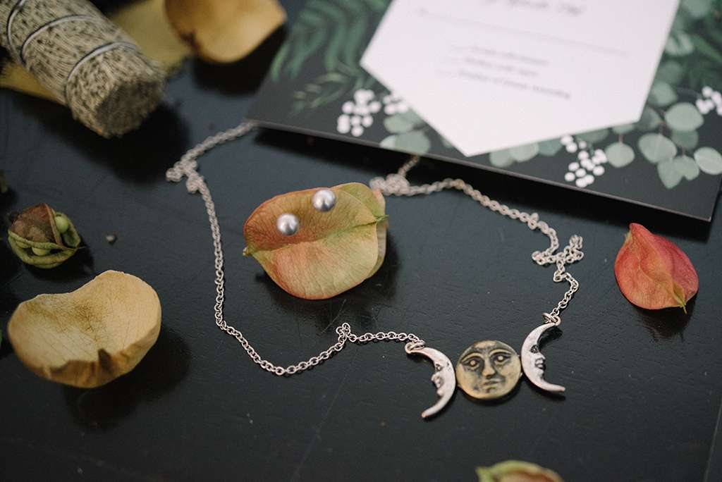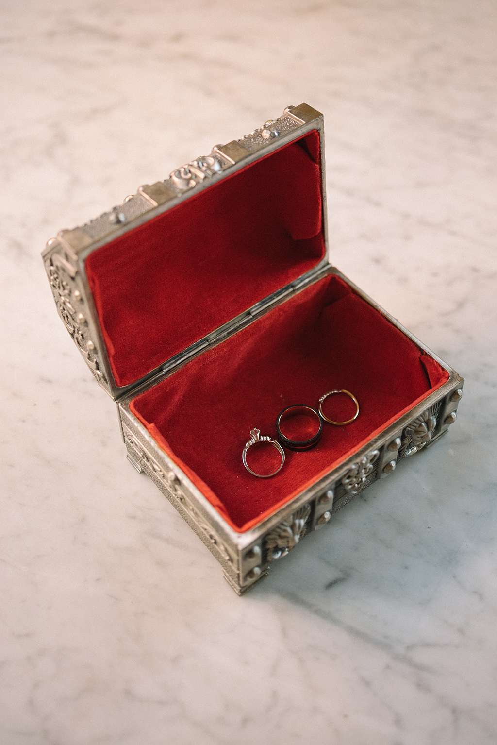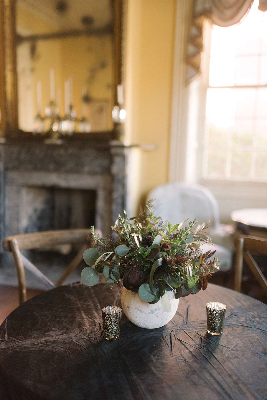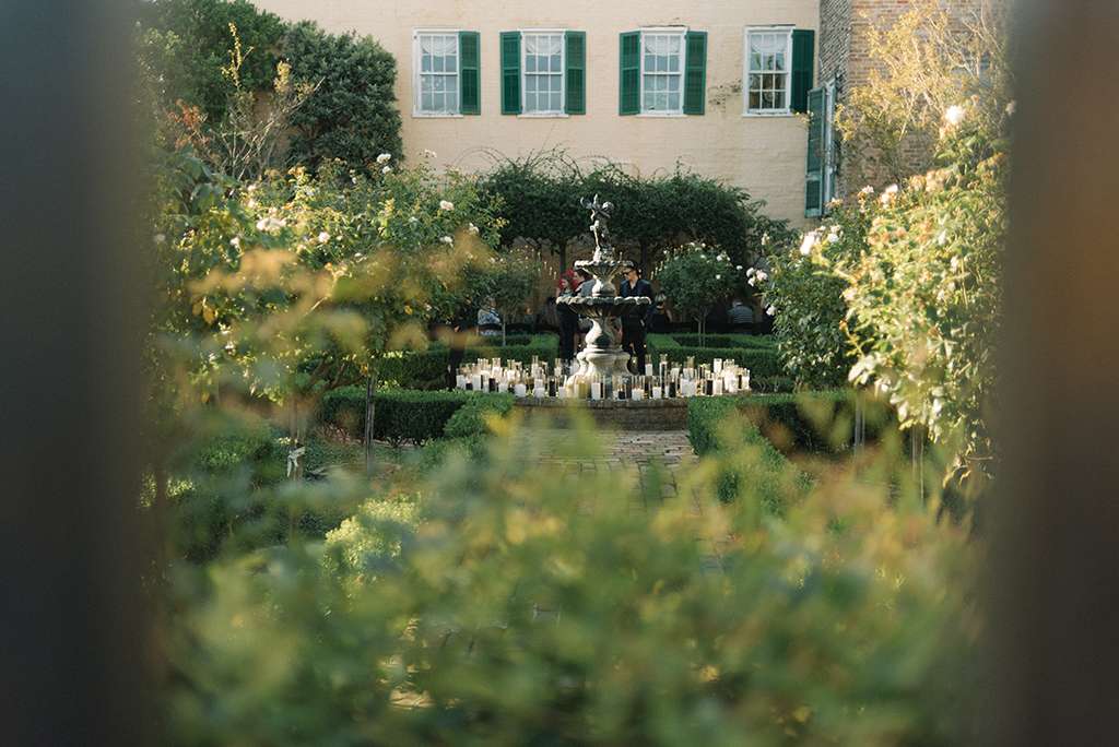 In terms of decor, the couple employed Lonney Jane Productions to design their day. They adorned every surface with candles for a spooky feel. From floating candles in a fountain to a candlelight cobblestone pathway for an aisle, every surface was adorned. For foliage, they went heavy on the ivy, and dressed up their reception with spooky paraphernalia like voodoo dolls, ouija board candles and an apothecary table that housed photographs of loved ones no longer with them. The rest of the decor was left to the ornate and antique surroundings of the venue.