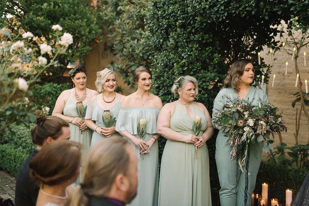 Their ceremony was held in the garden courtyard of the property, next to the fountain. Surrounded by floating candles, it had an atmosphere of magic and mystery.. Like most Rock n Roll Brides, the couple wanted a brief ceremony in favour of a longer after party, so they exchanged vows longingly borrowed from The Corpse Bride, some friends read beautiful poems, and they were married.