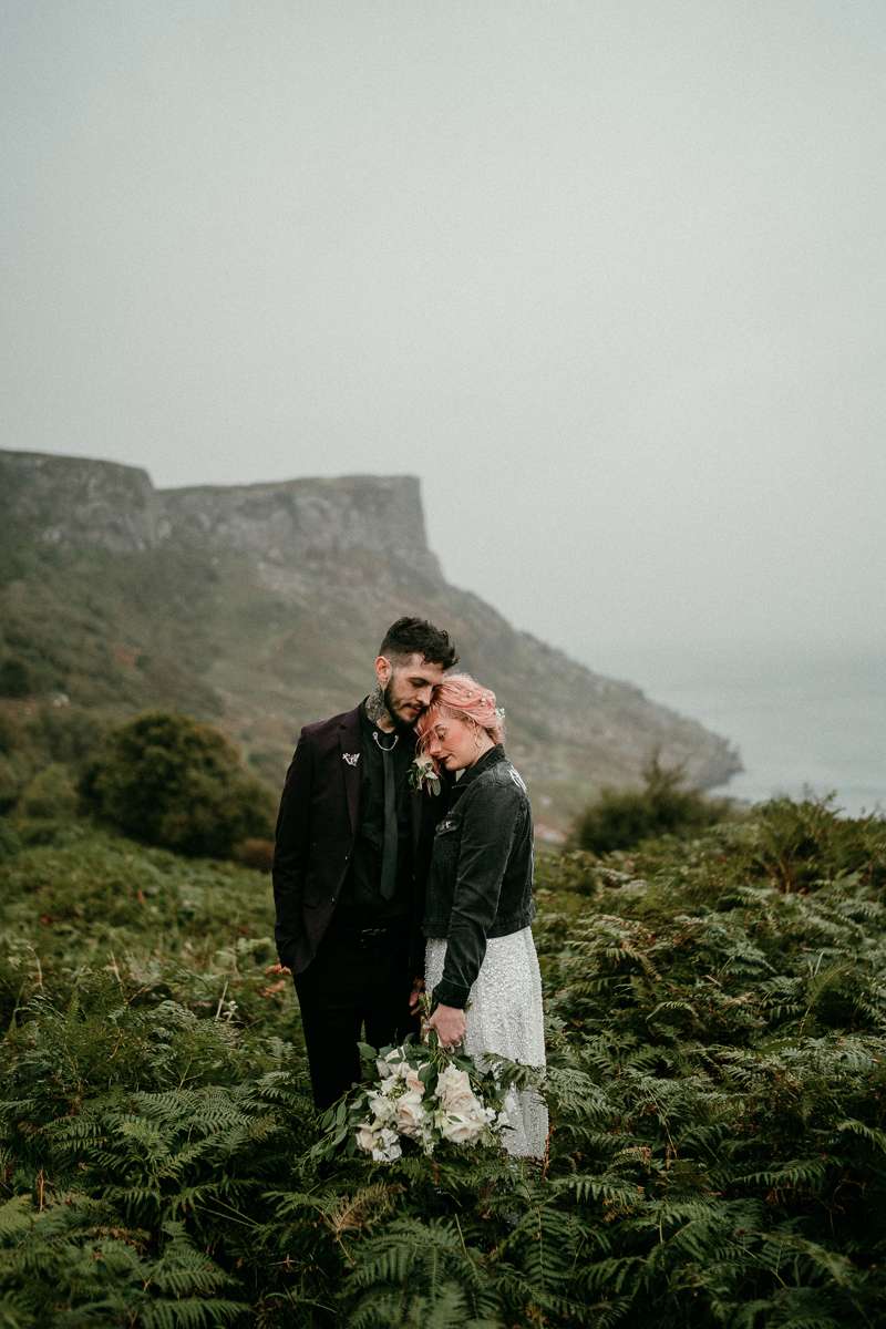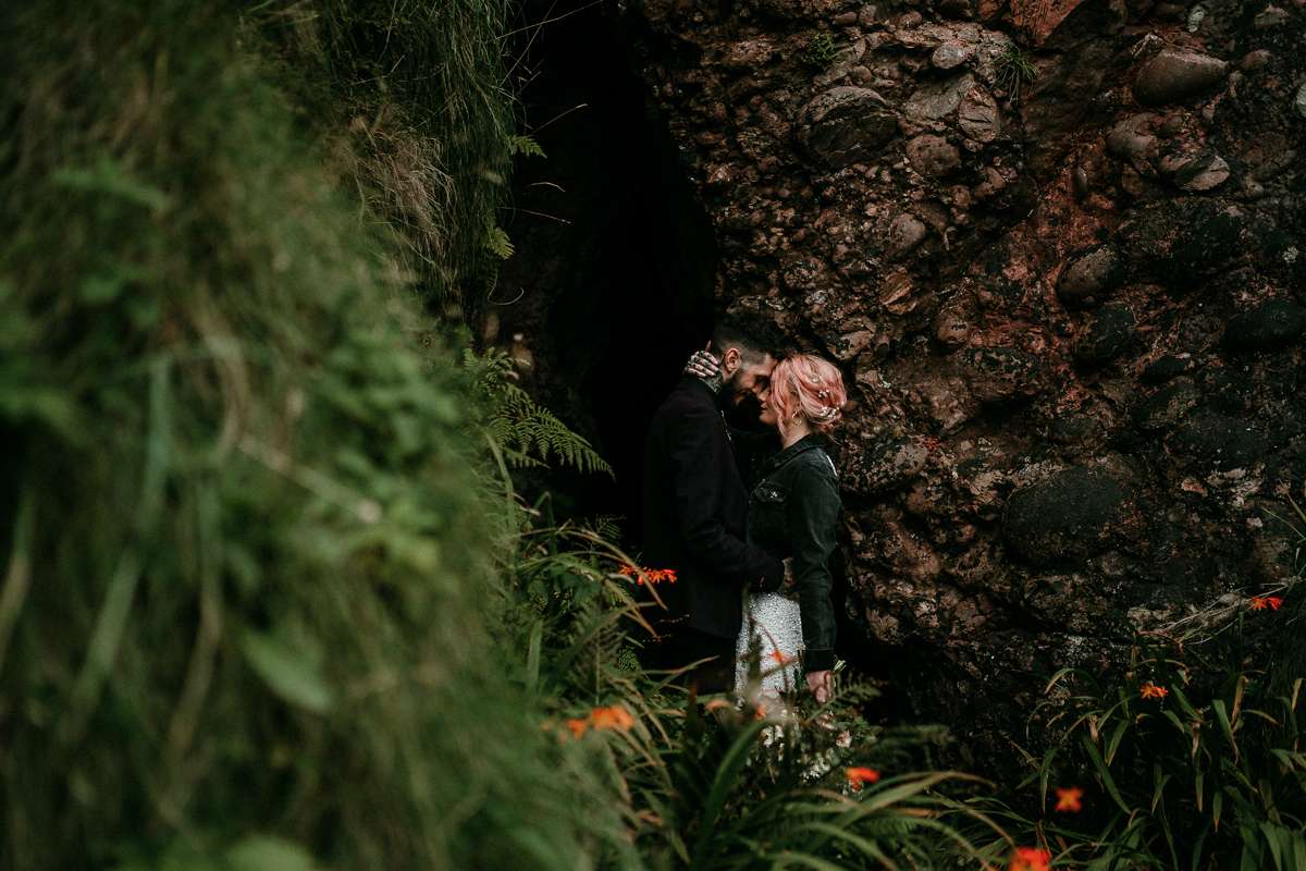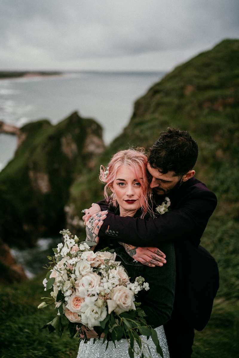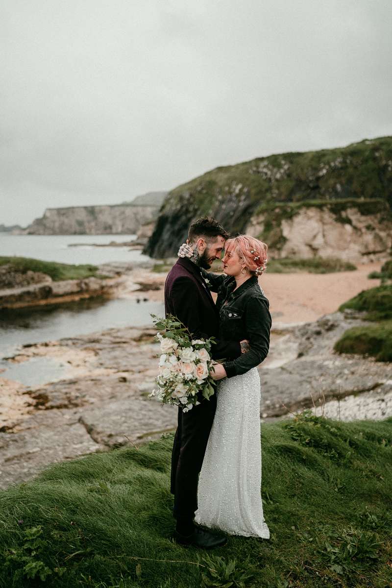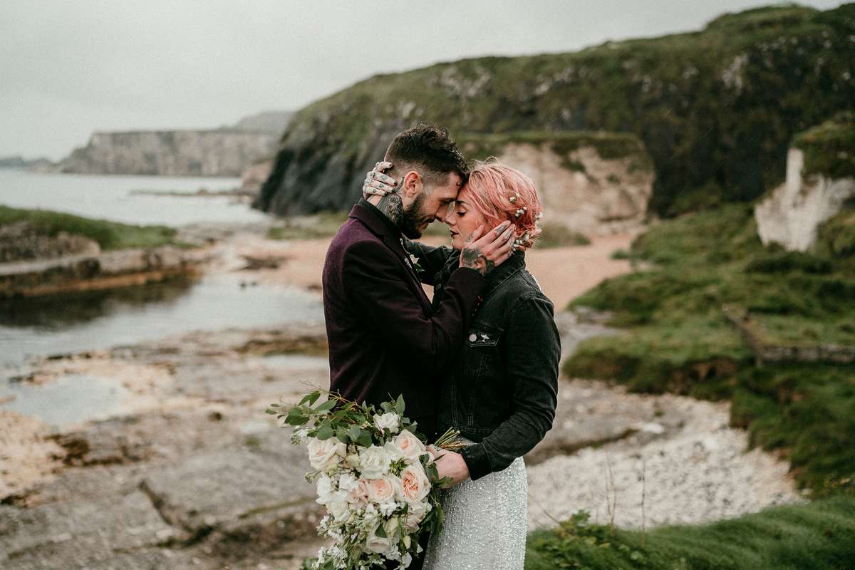 Tattoo artists Dom and Char flew to Ireland to have their September elopement it Cushendun Cave in Northern Ireland. They didn’t have a theme or anything in terms of props or styling other than their outfits and the bride’s bouquet.