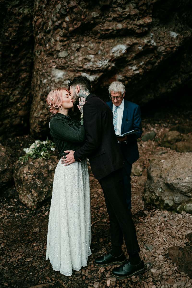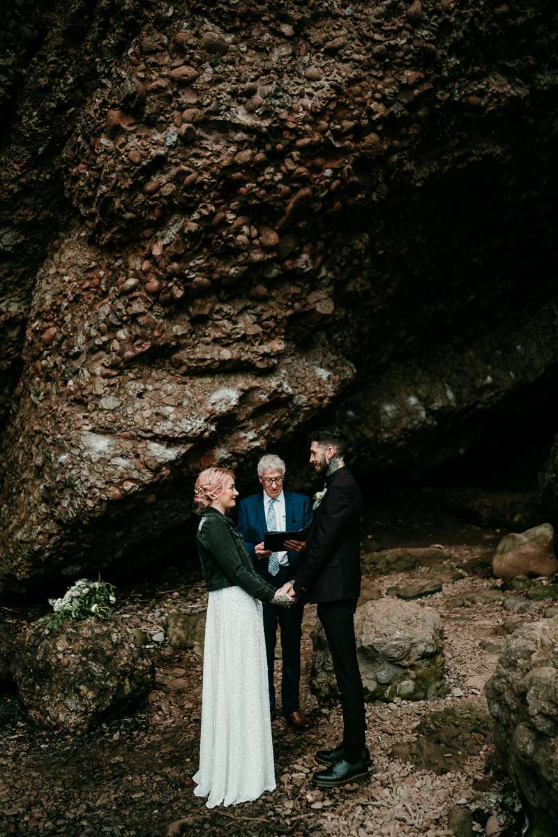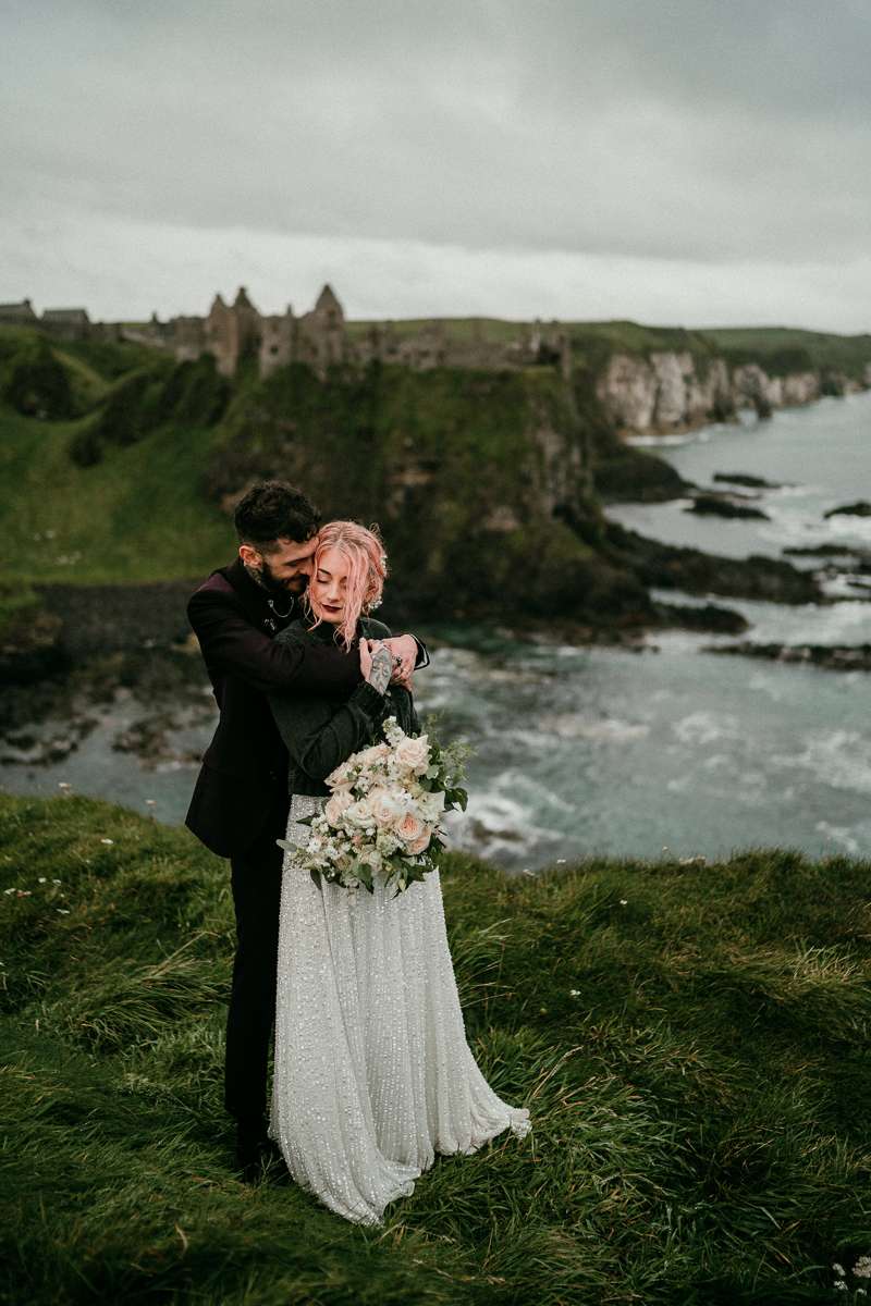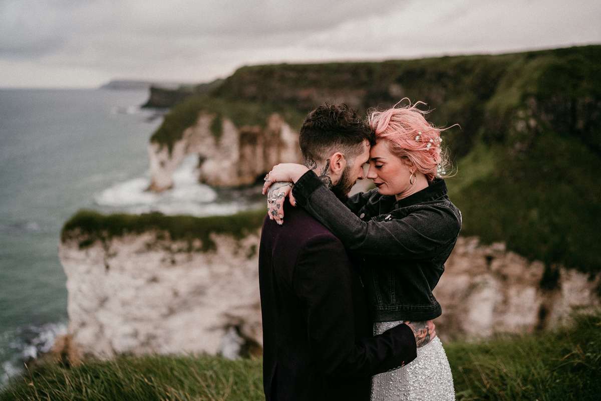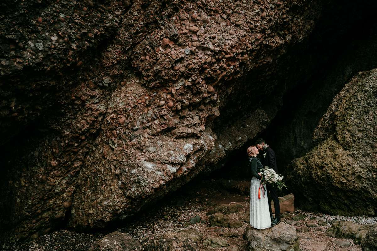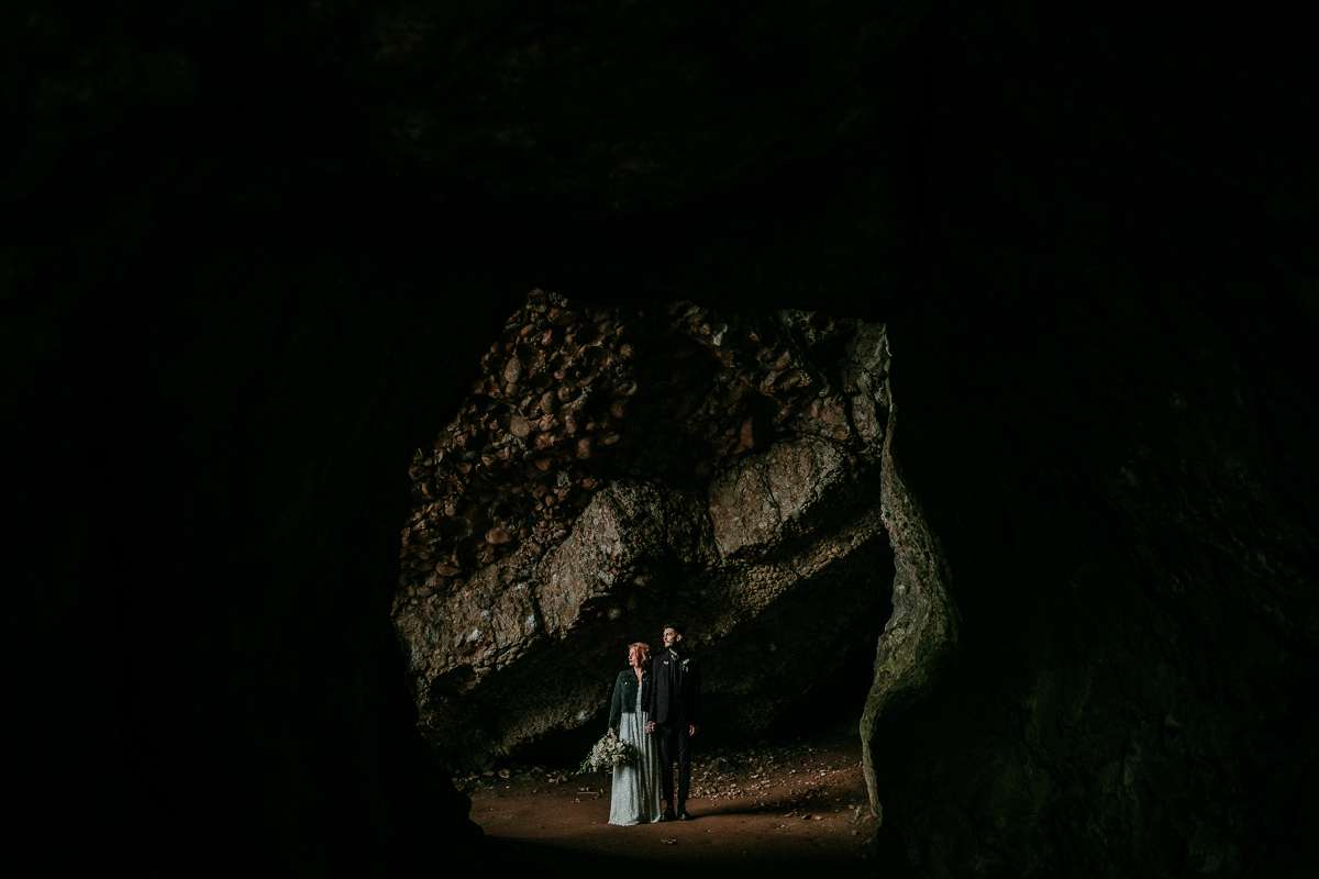 Tattoo artists Dom and Char flew to Ireland to have their September elopement it Cushendun Cave in Northern Ireland. They didn’t have a theme or anything in terms of props or styling other than their outfits and the bride’s bouquet.