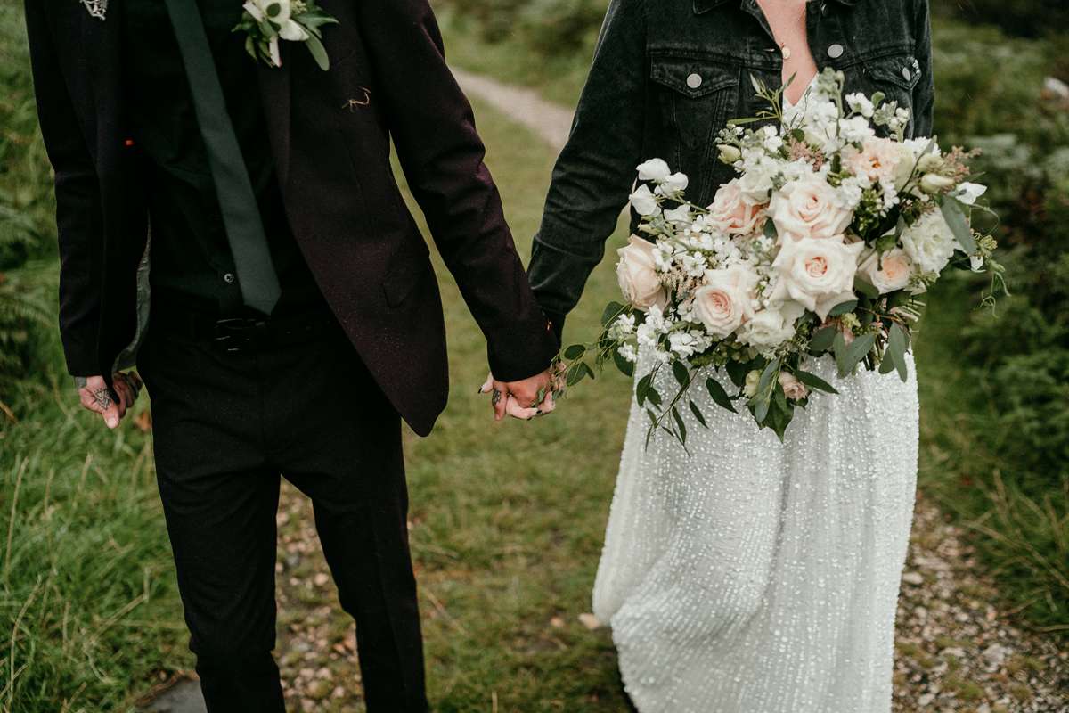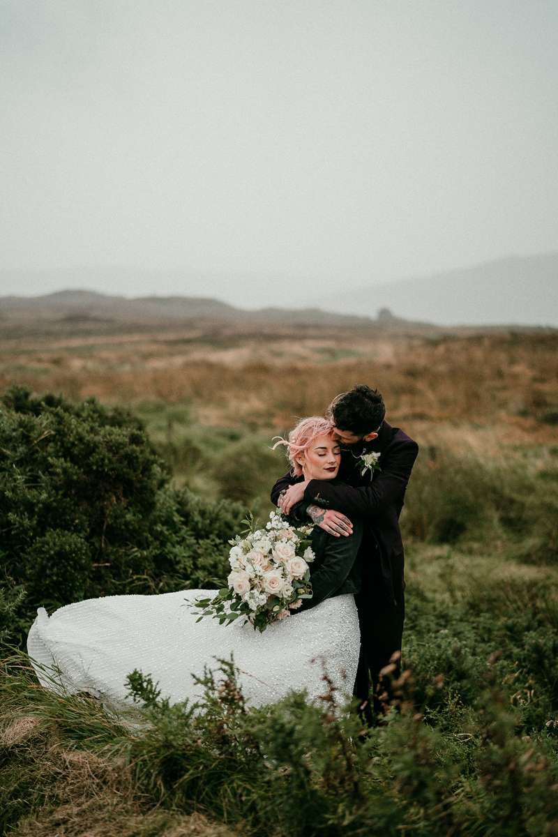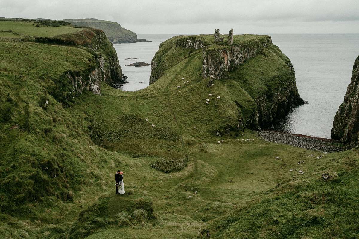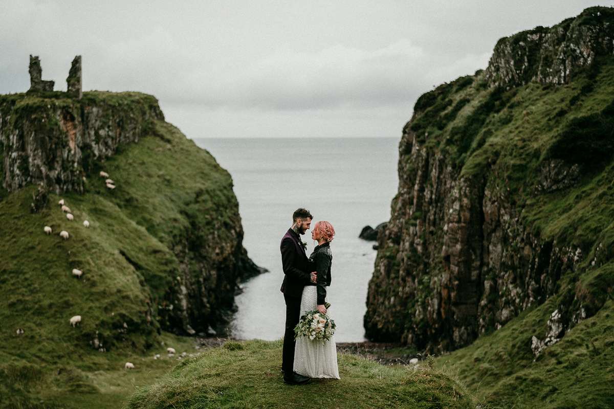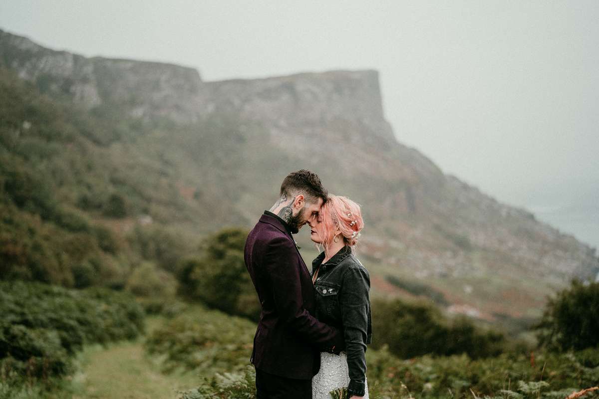 Tattoo artists Dom and Char flew to Ireland to have their September elopement it Cushendun Cave in Northern Ireland. They didn’t have a theme or anything in terms of props or styling other than their outfits and the bride’s bouquet.
