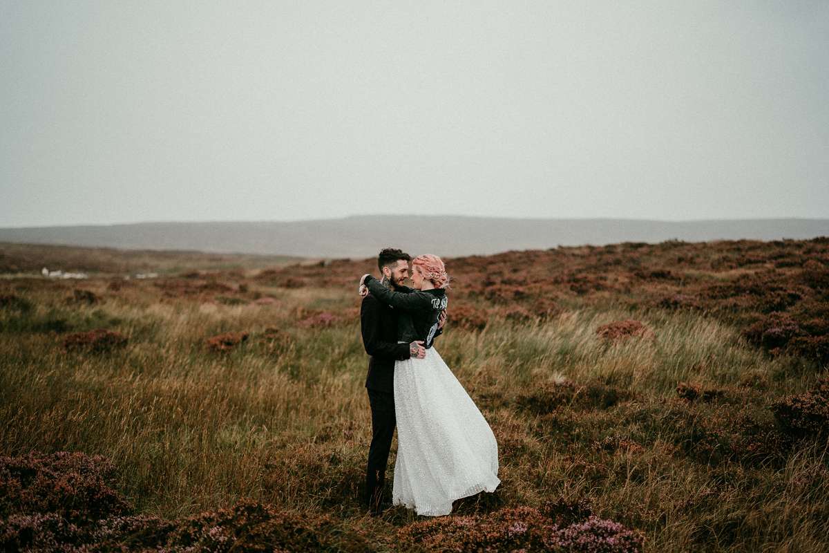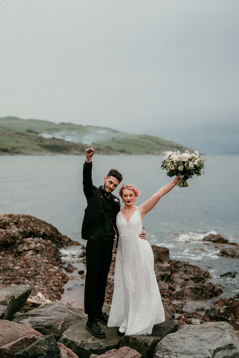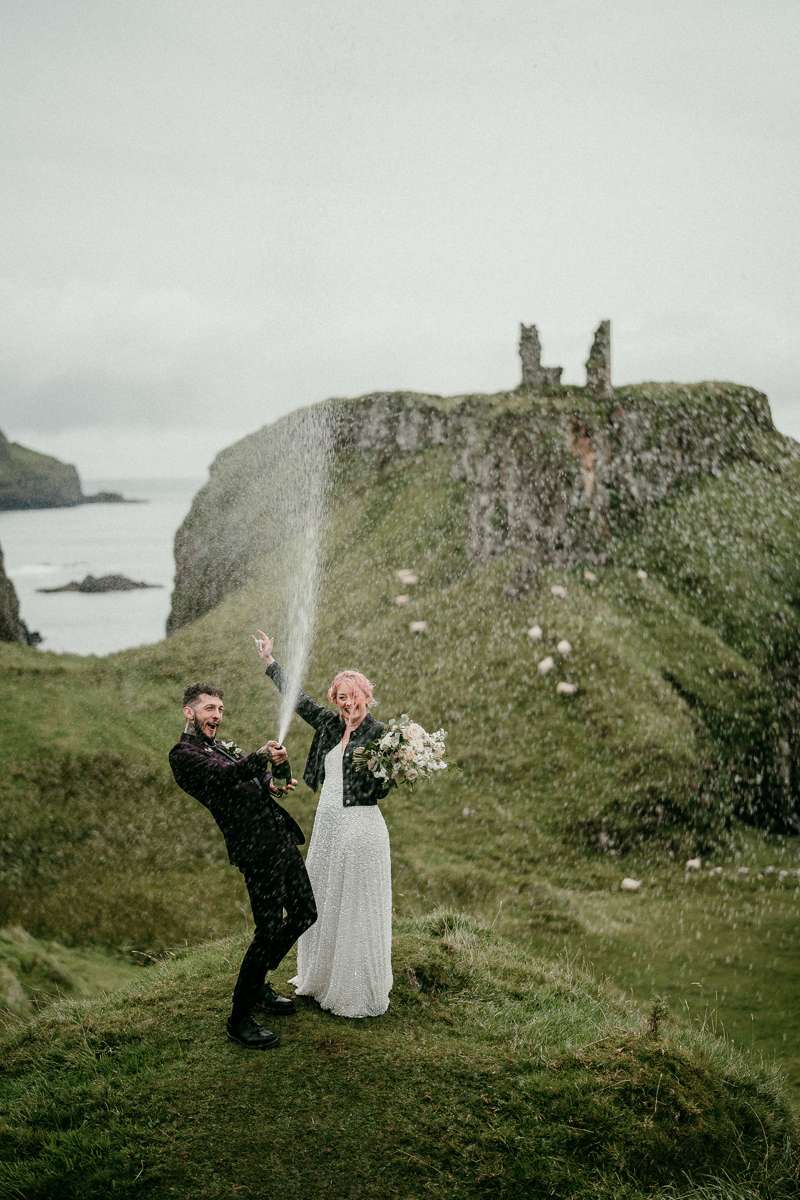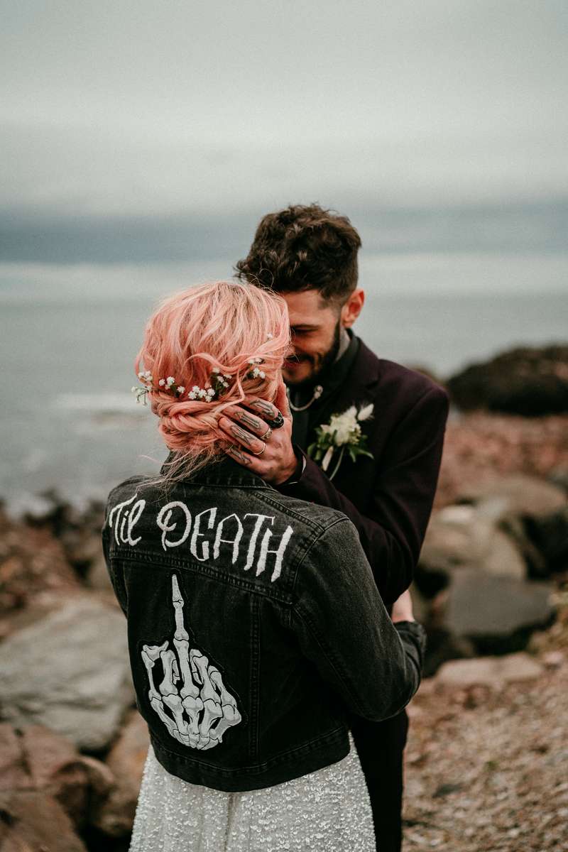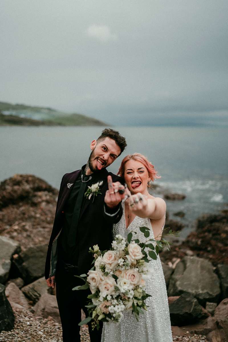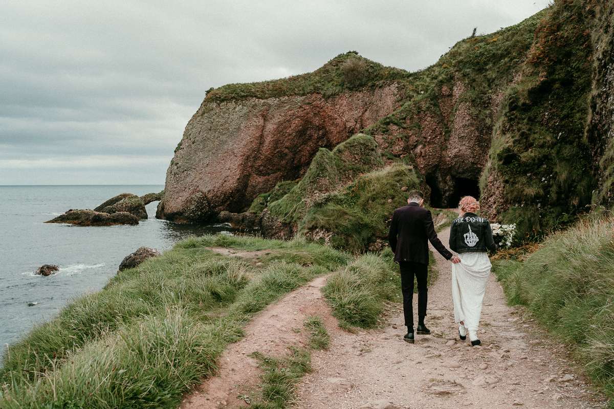 Tattoo artists Dom and Char flew to Ireland to have their September elopement it Cushendun Cave in Northern Ireland. They didn’t have a theme or anything in terms of props or styling other than their outfits and the bride’s bouquet.
