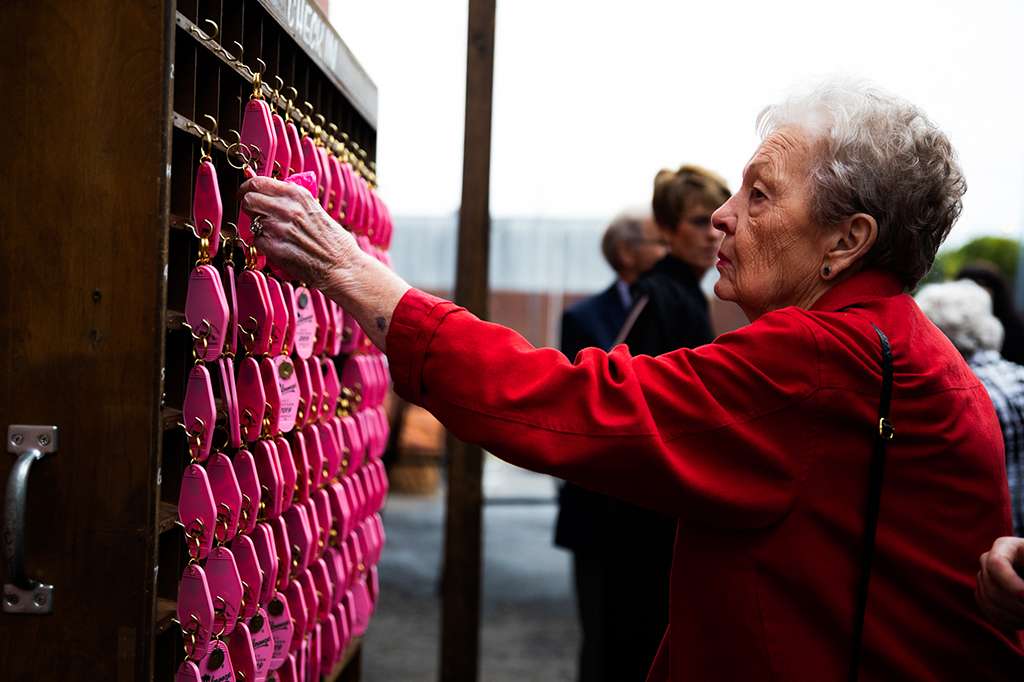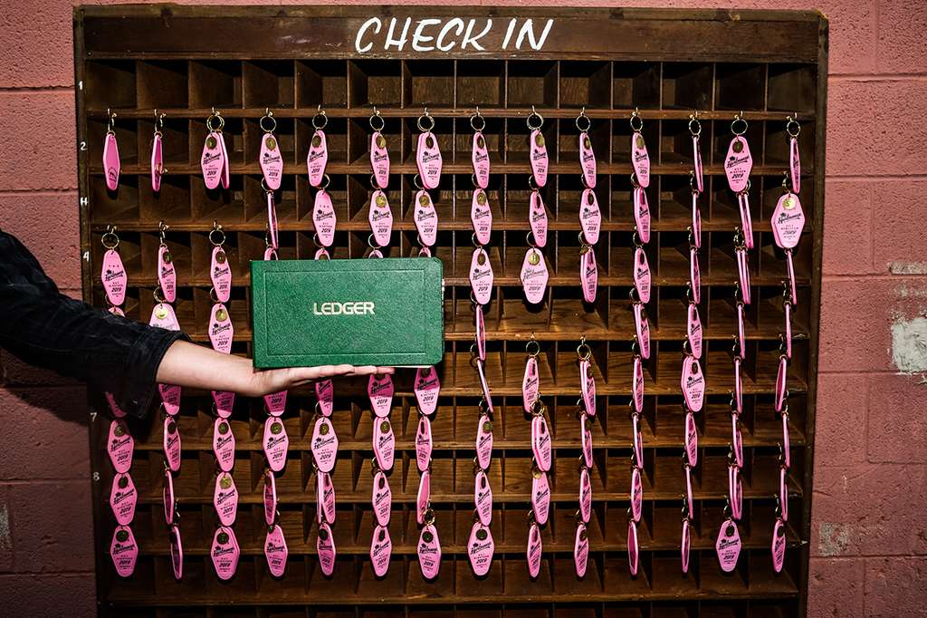 As a graphic designer, Mackenzie designed the invitation suites, menus and keepsake motel keychains and matchbooks to save some money. “I also would’ve been an awful client,” she laughed. “I also made a cloud that hung over us during the ceremony out of wire, papier-mâché and blanket filler. We managed to light it from the inside, but apparently it had a short so it was flickering a bit during the ceremony. People thought it was intentionally meant to look like a moody storm though so… win?”