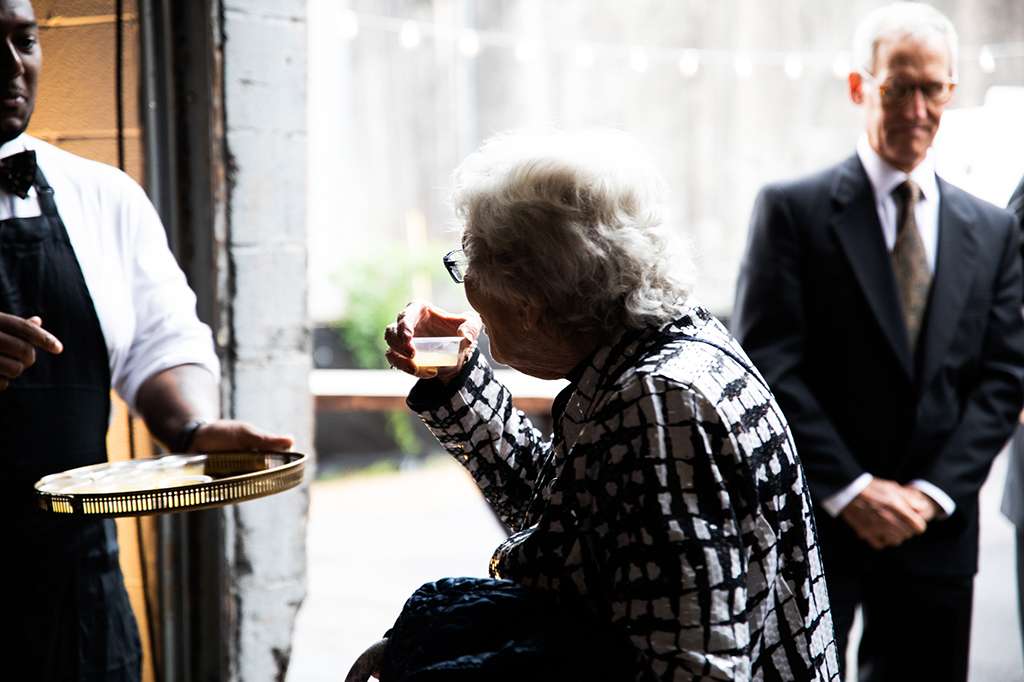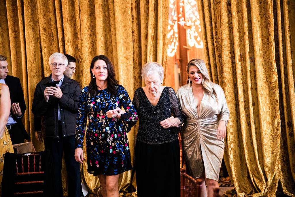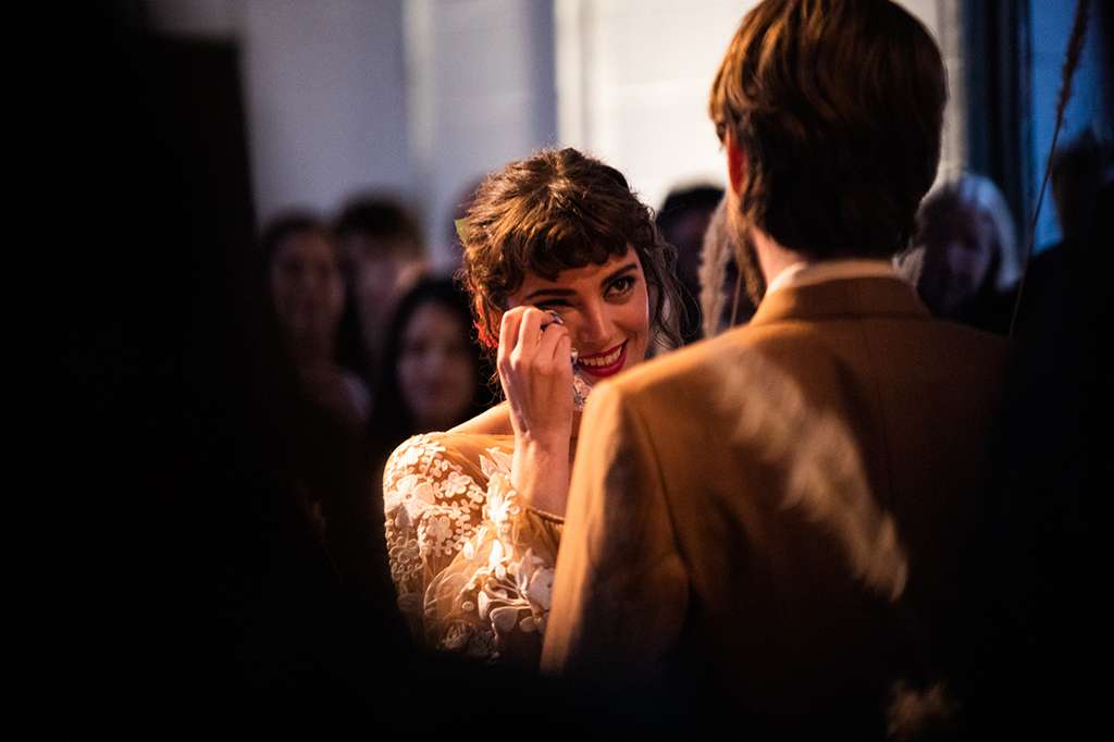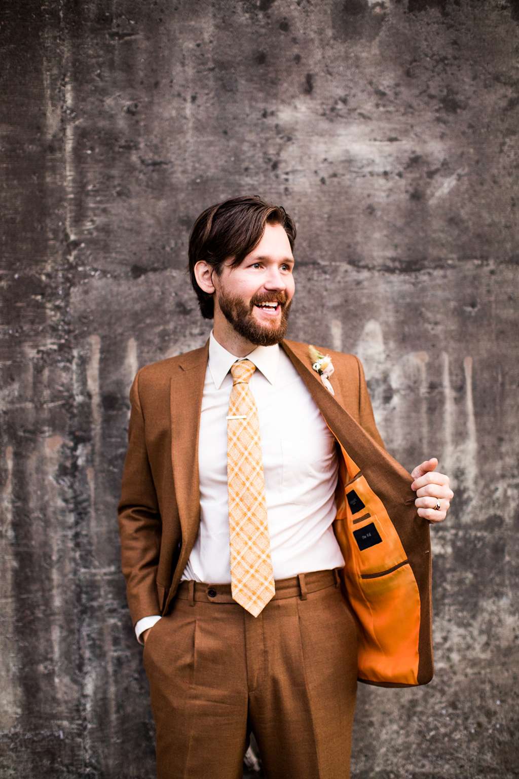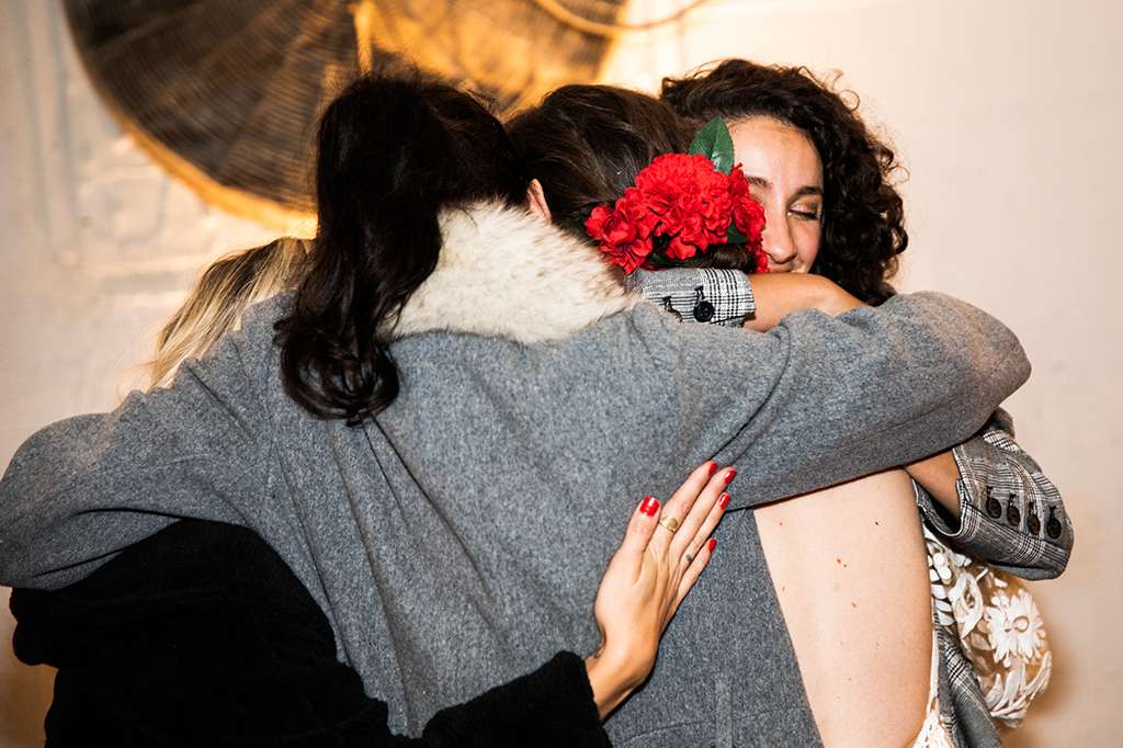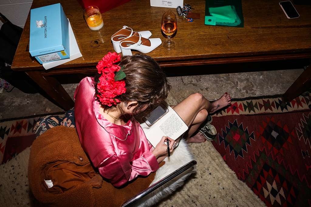 Their ceremony was officiated by the friend who hosted the party that the couple met at, and it ended as their relationship started – with everyone in the room taking a shot of tequila. “My dad had his suit specially made for the day and he had them embroider a private joke of ours on the inner lapel. He showed it to me in the moments before he walked me down the aisle. It made me laugh and calmed my VERY pronounced nerves. I also heard later that Kyle was still scribbling down his vows as people were arriving – no judgement, inspiration strikes when it strikes!”