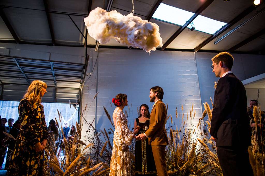 “Without a doubt, working with Modern Vintage Events was our favourite thing about planning our wedding. They never batted an eye at some of our wilder requests…. ‘You want to find a venue that nobody has been married in before? We just met someone with a pink warehouse full of vintage furniture that says she’s in!’ ‘You want to build a prairie inside the warehouse? Sure, and our favourite florist will grow the grasses from seed!’ They found an aura reader, a DJ who spins vinyl and a mixologist to build a custom drink menu. No idea was too weird…they were incredible and without them (no shade) we probably would’ve ended up at City Hall.”