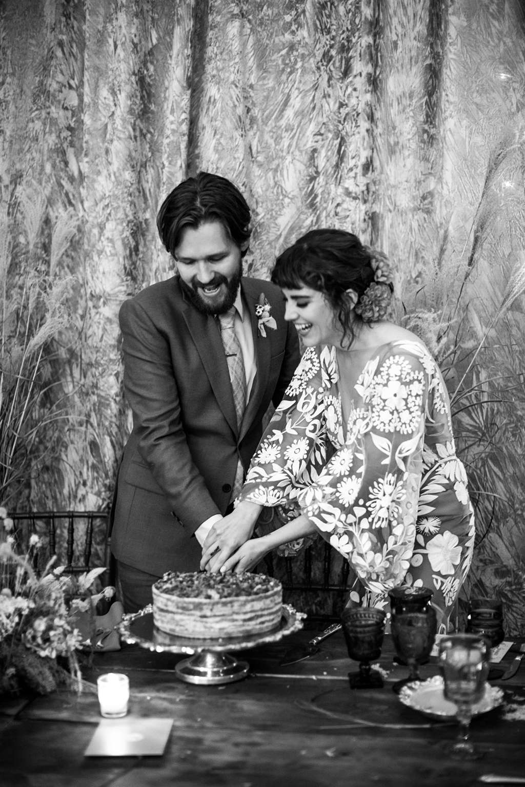 Mackenzie and Kyle are artists with different mediums, so their wedding was always going to be creative and fun. They approached planners Modern Vintage Events with an inspiration drawing from Mackenzie and a description of their wedding – ‘like Stanley Kubrick and The Great Gatsby hosted a cocktail hour. Unique, cinematic, intentional and intimate.’ “Doodling during our planning meetings was a common occurrence and every detail and every angle was taken into consideration,” designer Becca told us.