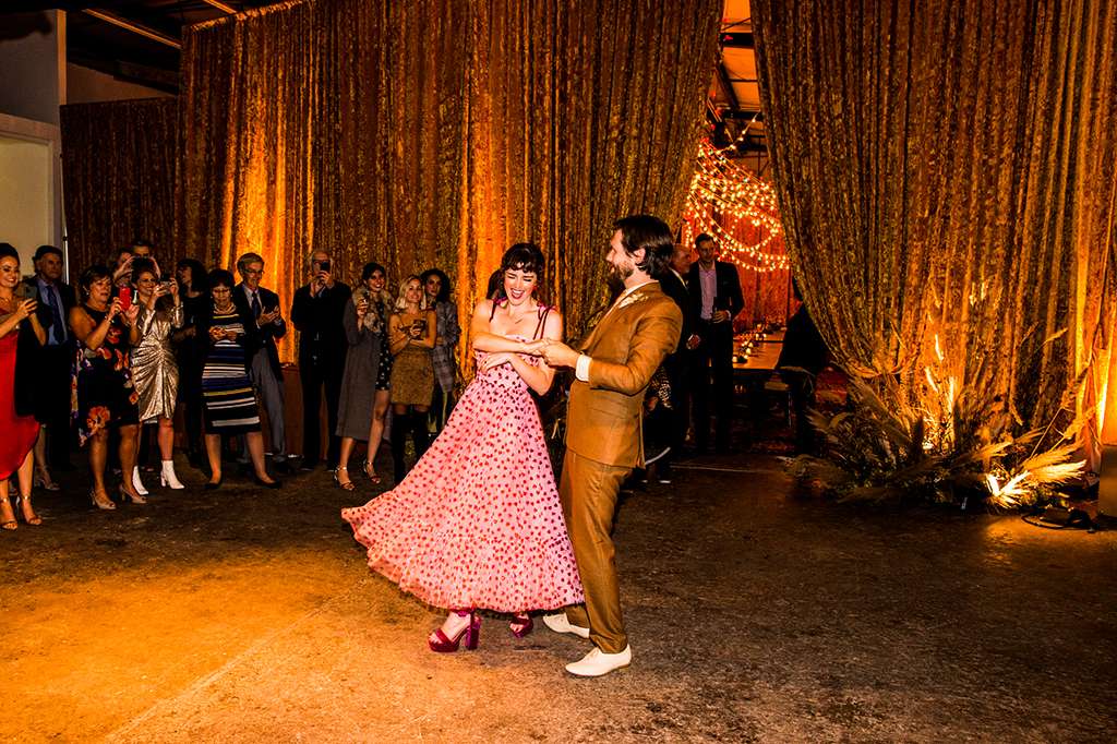 “My advice to any future couples would be to not get too caught up in what people are going to think. I fretted for ages about my dresses, and the food, and the vibe. When in reality everyone who was there had shown up to love and support us, not sit in quiet judgement. They didn’t give a shit about which chairs we rented or the warmth of the lighting around the perimeter of the room, they just wanted to celebrate us…and party their faces off. Also, If you are able, hire a planner. It allowed my husband and I to stay in the fun creative headspace and not be bogged down with the minutiae of how to actually make it all happen.”