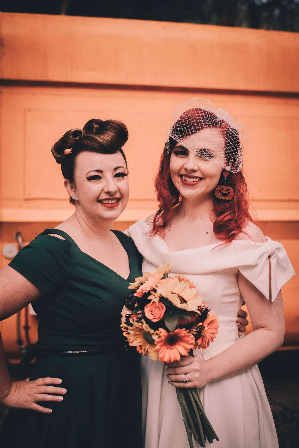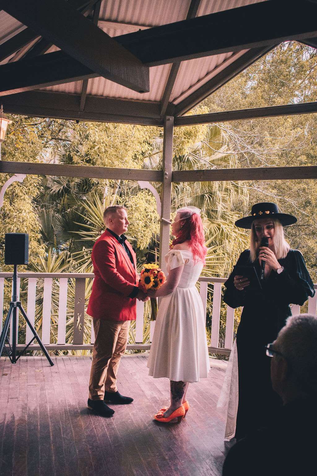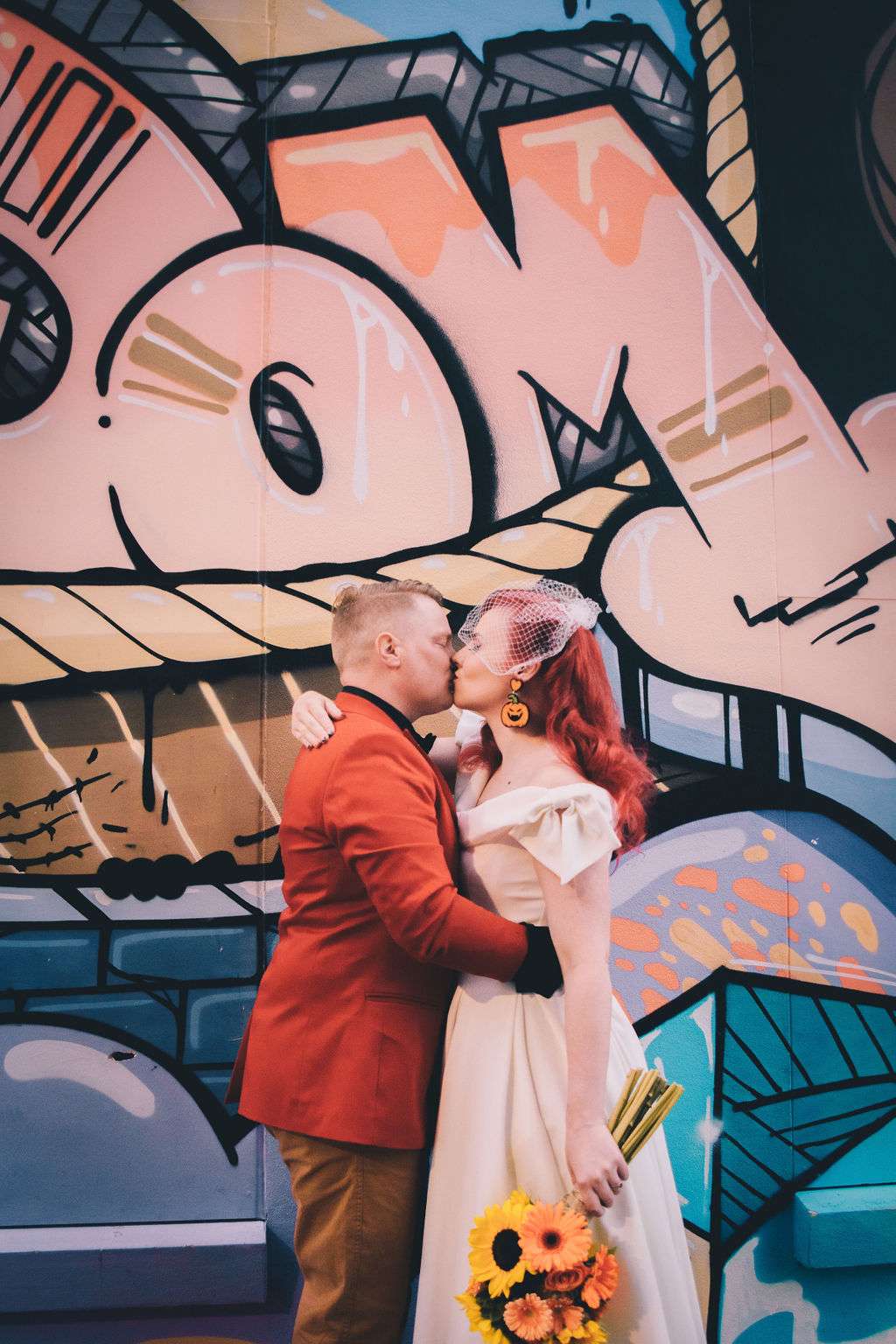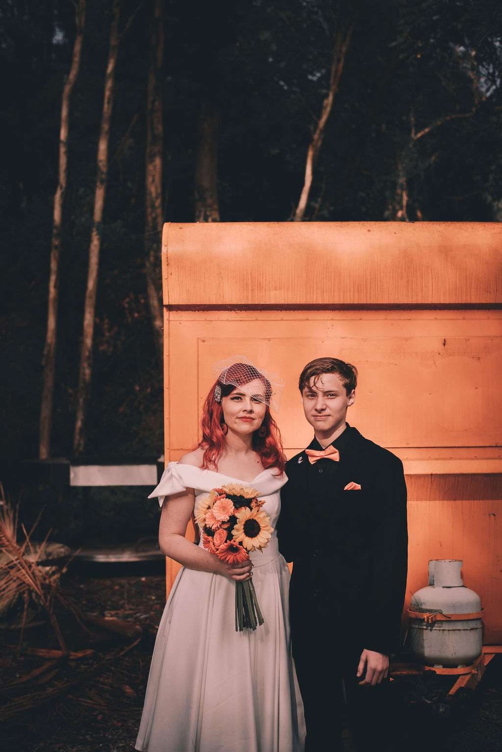 The chose Eco Studio Village in Mudgeeraba, Queensland as their venue and did all the decorating themselves. They bought flowers from the supermarket where Matt works and his cousin made the cake. The stationery was all homemade by the bride using her iPad and Procreate and the music was provided by the bride and her son, who spent hours and hours perfecting playlists! It was the perfect mix of emo love songs, 90s pop bangers and songs from their youth. And, of course, Matt carved A LOT of pumpkins!