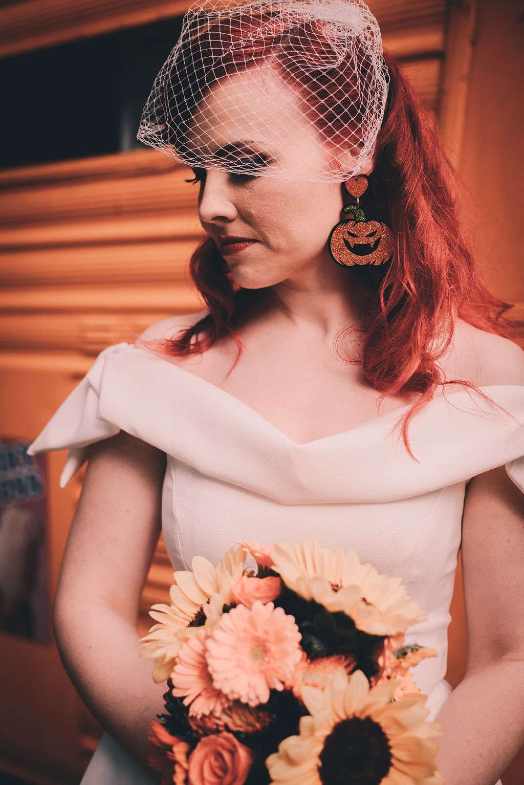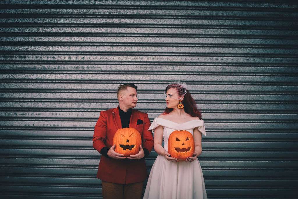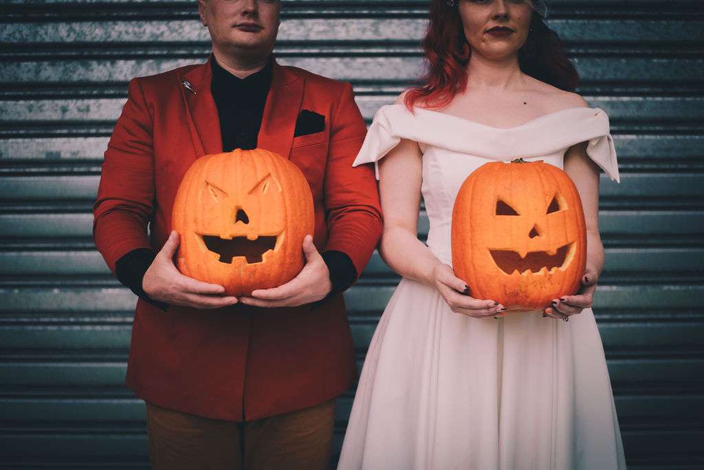 Pumpkins are Courtney’s favourite thing so, not only did Matt propose with “Will You Marry Me?’ carved into one, but they chose October 31st as their wedding date and went for an autumnal theme with lots of pumpkins everywhere! From the décor to the invites and even the bride’s earrings!