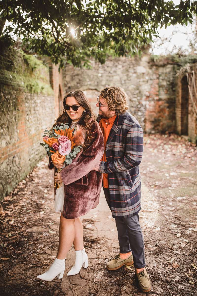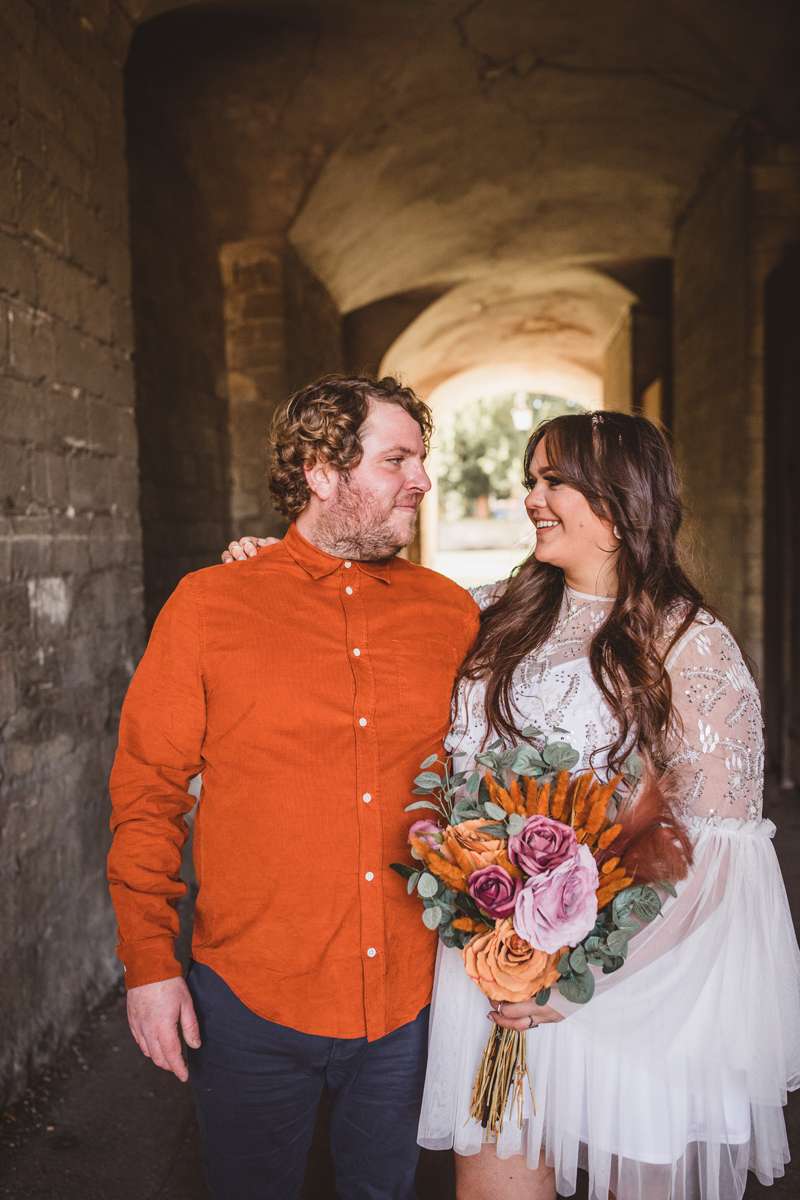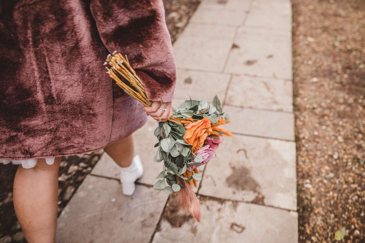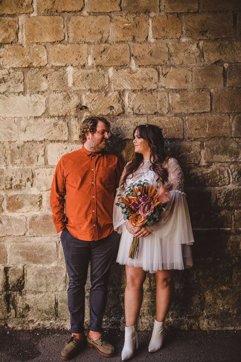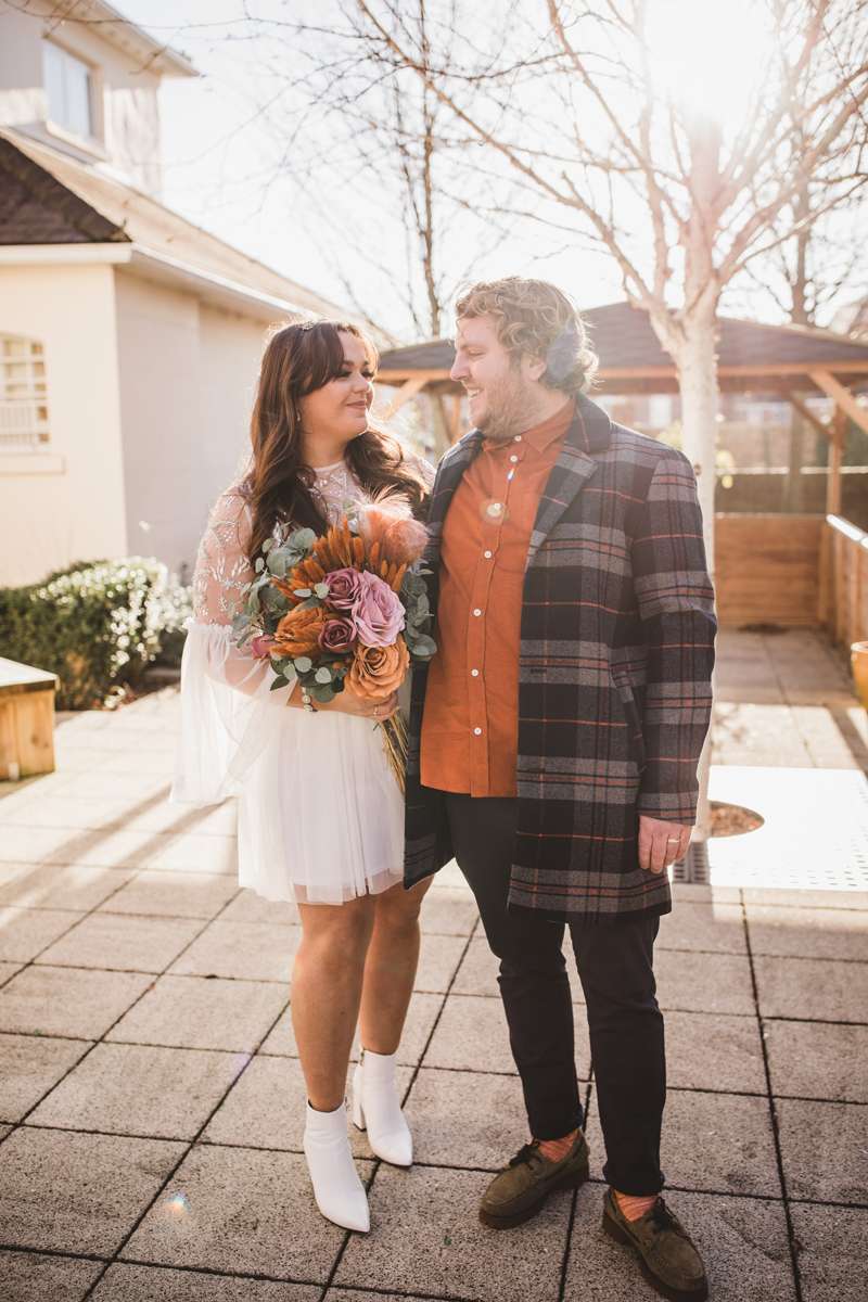 The bride wore an ASOS dress which she’d originally bought for her (also postponed) hen do and made her bouquet from faux flowers herself. “We had spent 18 months planning a large forest wedding that was postponed until next July”, Millie told us. “With how the world was looking we one night had a chat and decided that actually we just wanted to be married and could have the big party when everything was safe again. We quickly called my auntie, who is a registrar, who had us booked in and sorted straight away.”