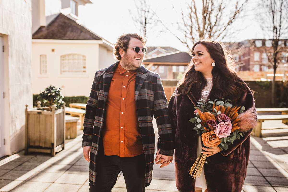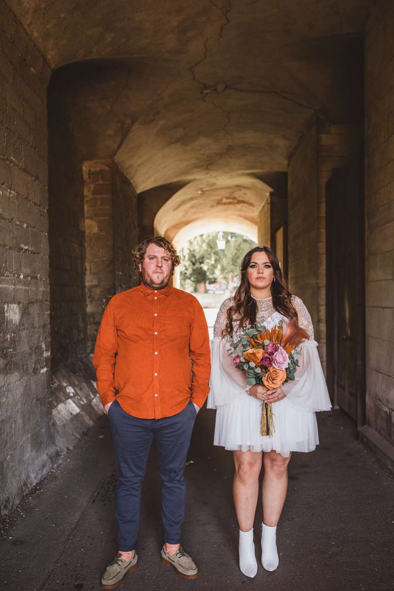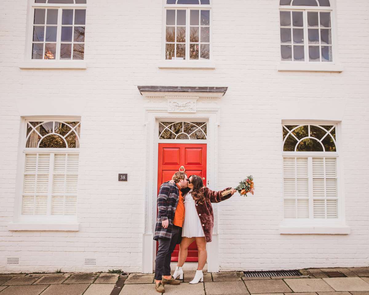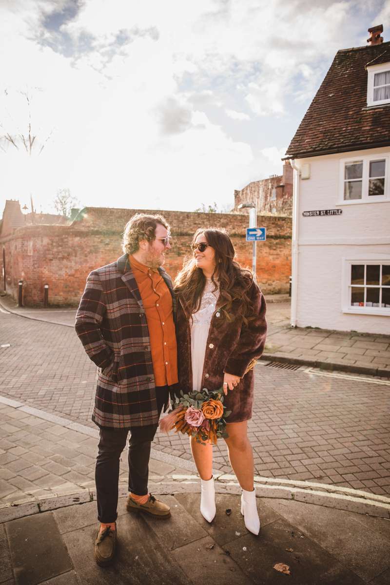 The bride wore an ASOS dress which she’d originally bought for her (also postponed) hen do and made her bouquet from faux flowers herself. “We had spent 18 months planning a large forest wedding that was postponed until next July”, Millie told us. “With how the world was looking we one night had a chat and decided that actually we just wanted to be married and could have the big party when everything was safe again. We quickly called my auntie, who is a registrar, who had us booked in and sorted straight away.”