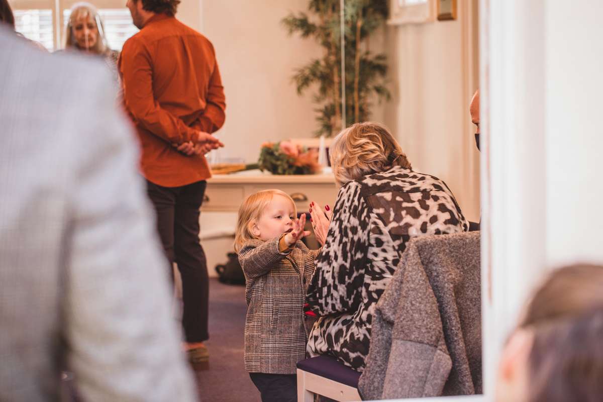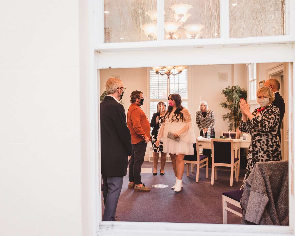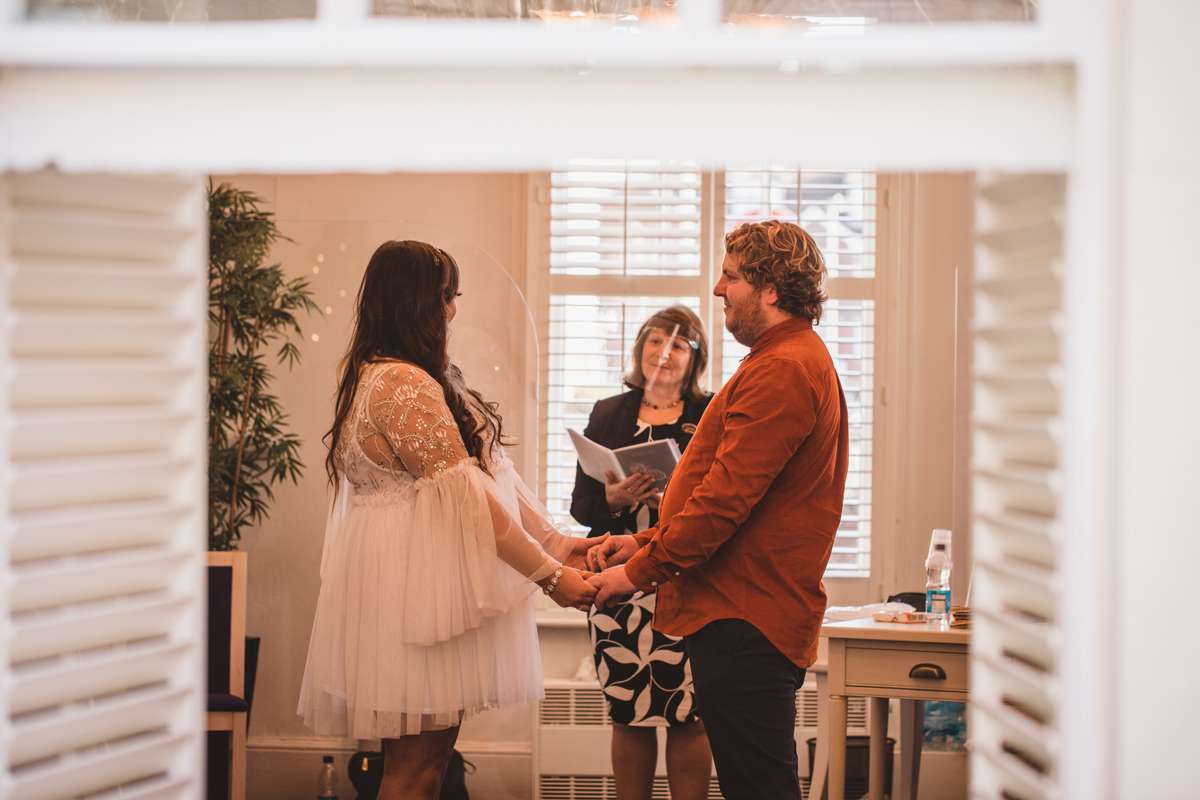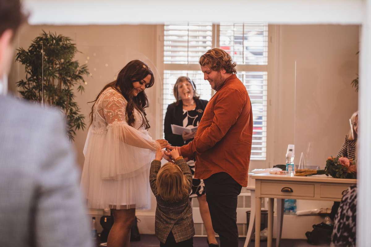 “My mum walked me down the aisle which meant the world to me, she is the most amazing woman and has supported us through all of this. My brother and Ian’s sister weren’t officially allowed in the room as it was too small for social distancing so they opened up the large window at the back and they stood and watched us through there. This was also the perfect opportunity for our two-year-old to be passed back and through the window with sheer delight during the ceremony!”