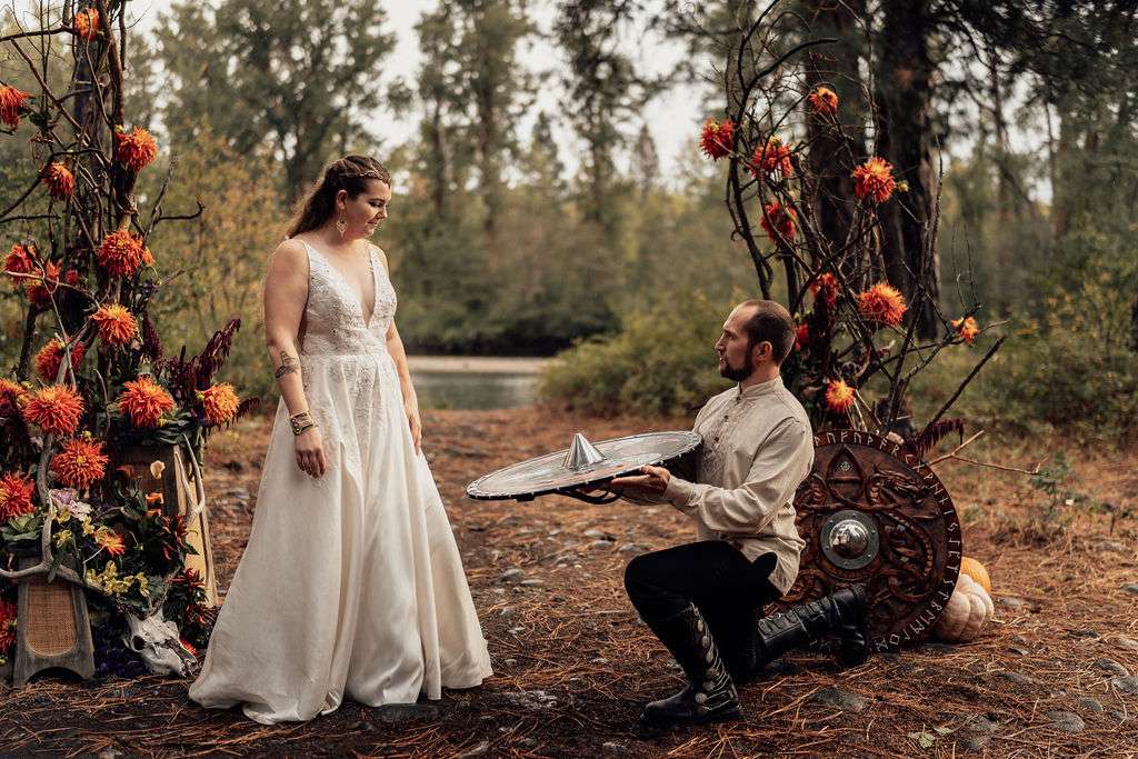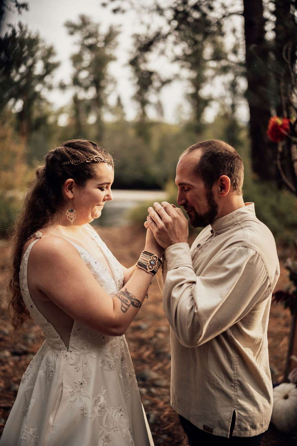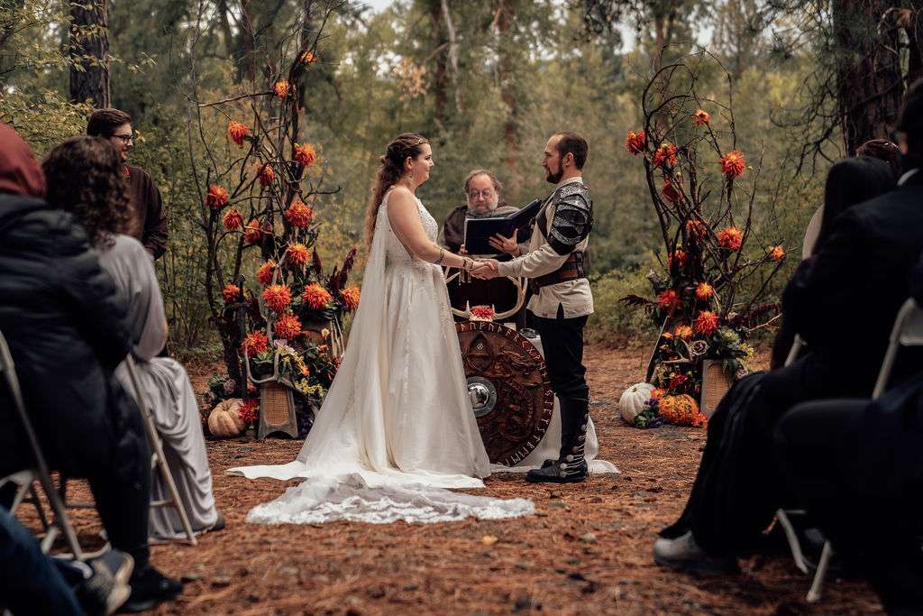 Fae and Ryan don’t consider themselves religious people. however they are spiritual in the sense that they connect with many of the doctrines found in Paganism, particular Nordic paganism. Alongside Fae’s Nordic heritage, Ryan’s British background and stepping away from the ‘norm’ that most American weddings have, they put together a celebration that felt more in keeping with them.